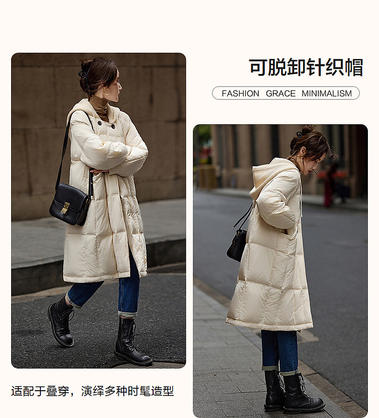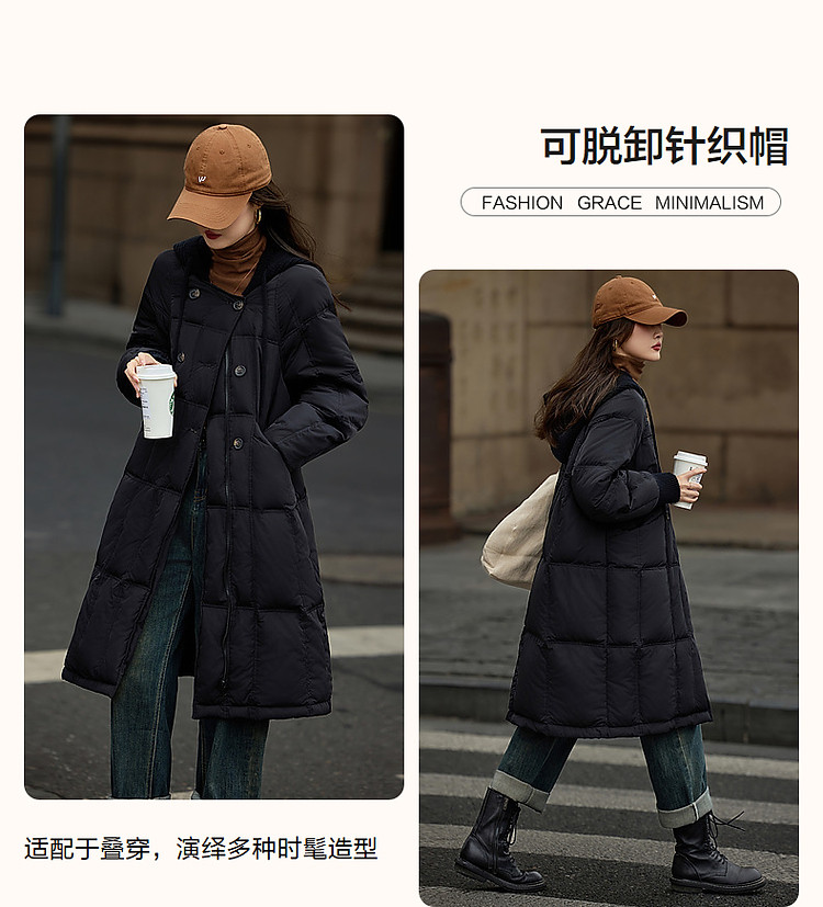 【50D棉感仿记忆】冬季轻量感90鸭绒可脱卸针织帽茧型羽绒服