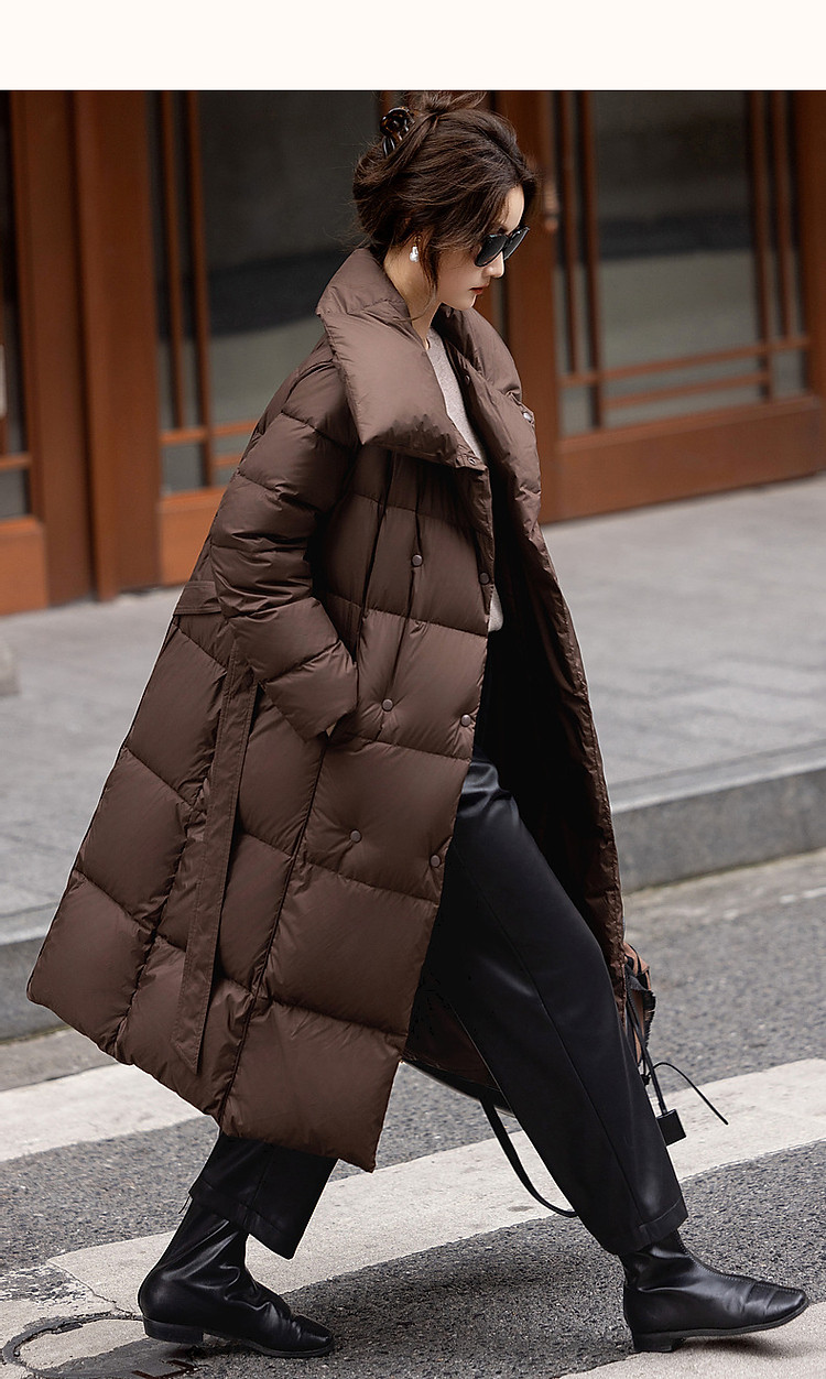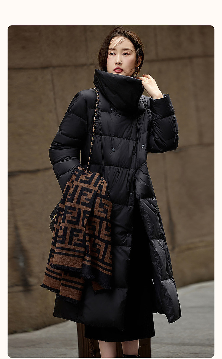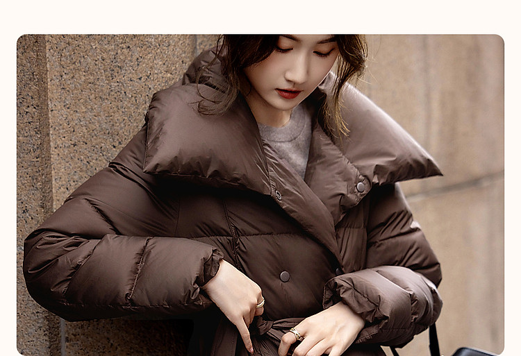 【城市轻户外】冬400T春亚纺压胶蓬松90鸭绒大翻领羽绒服女