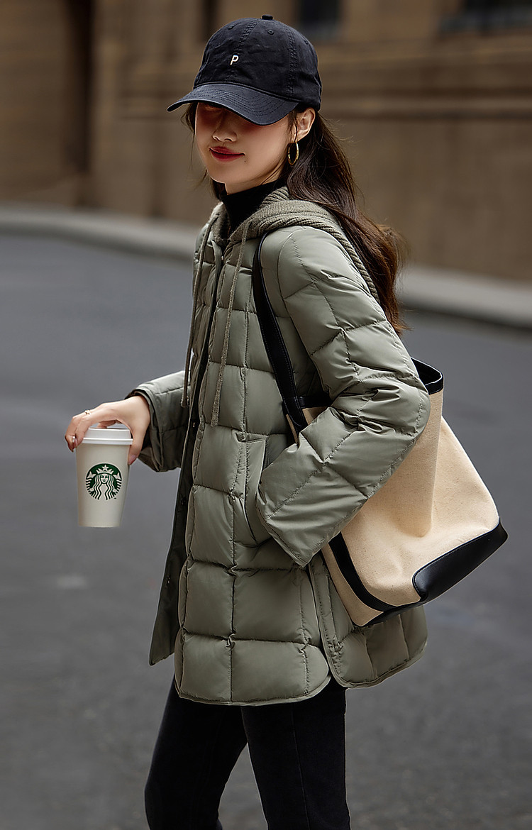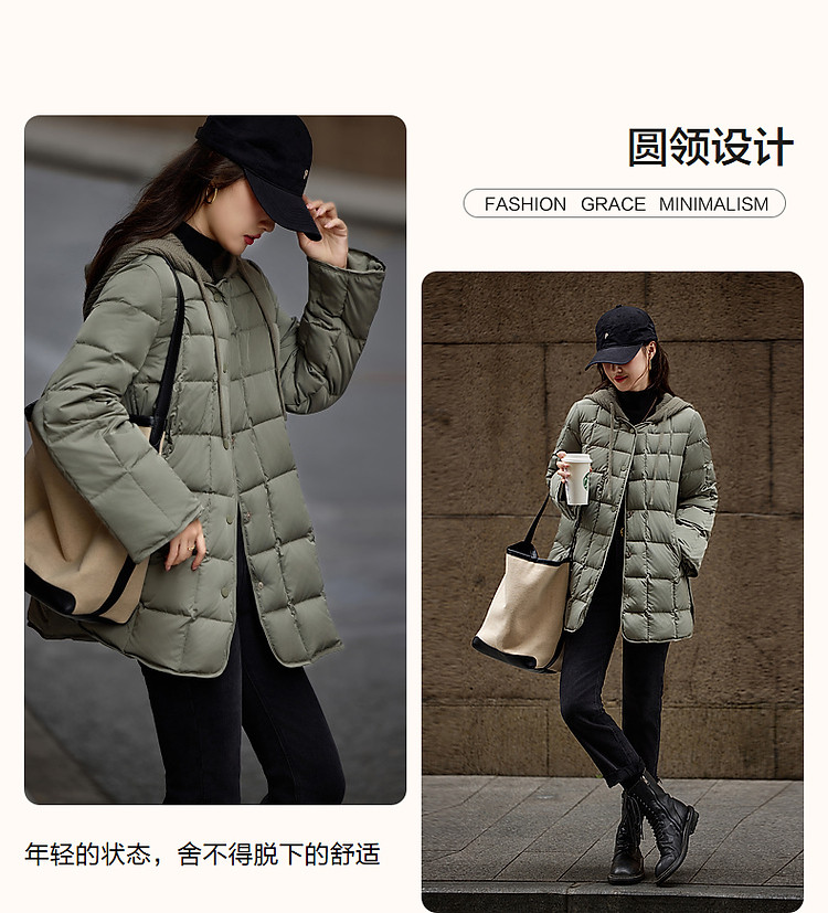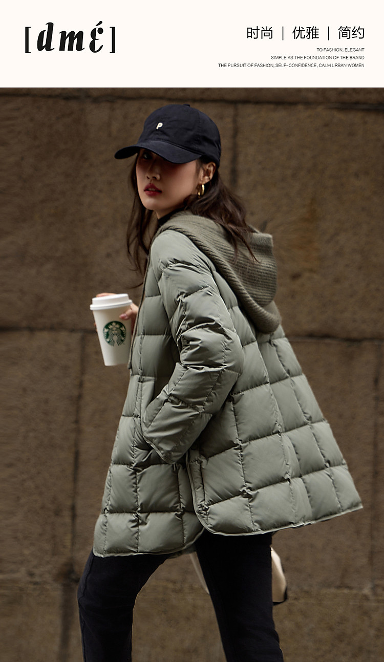 【50D棉感仿记忆】冬季轻奢磨砂绒感90鸭绒渐变格纹羽绒服女