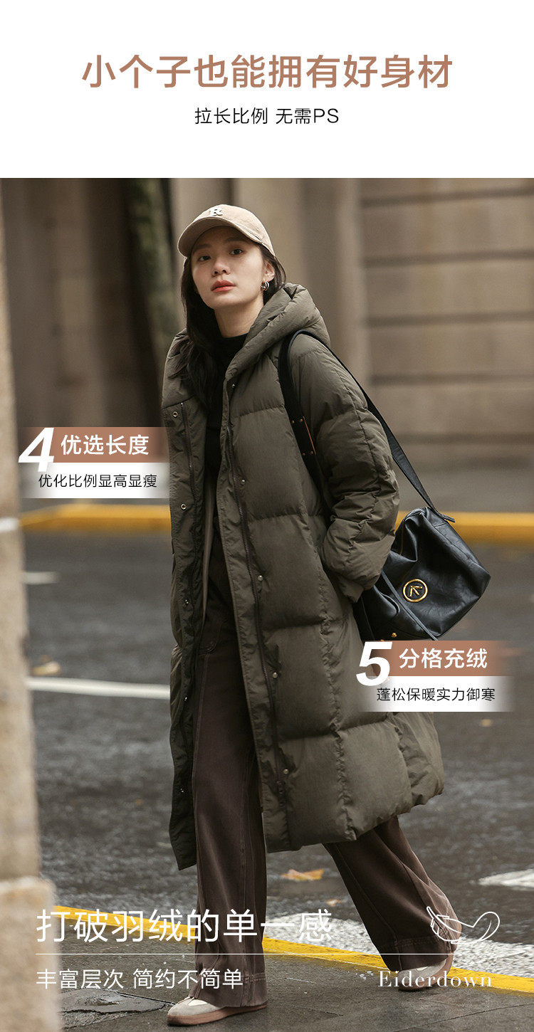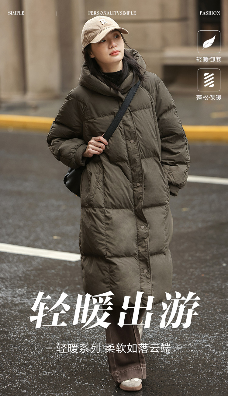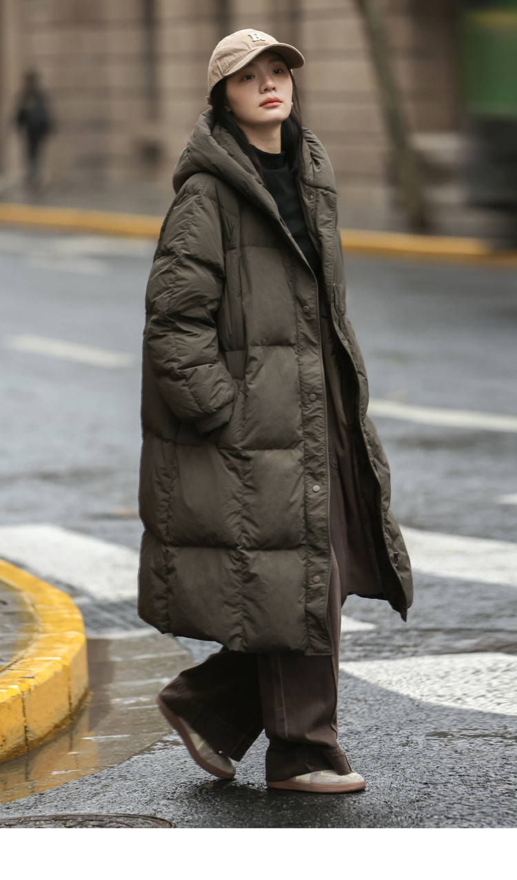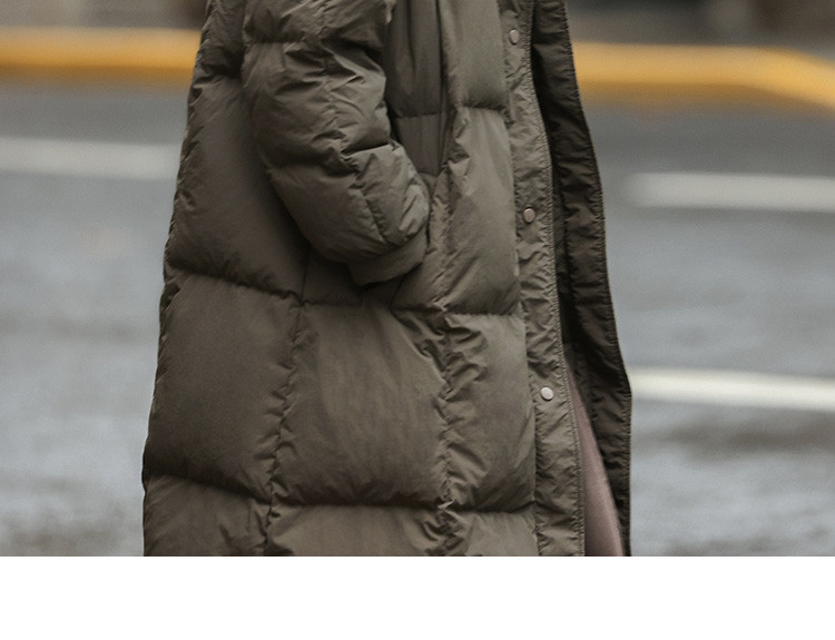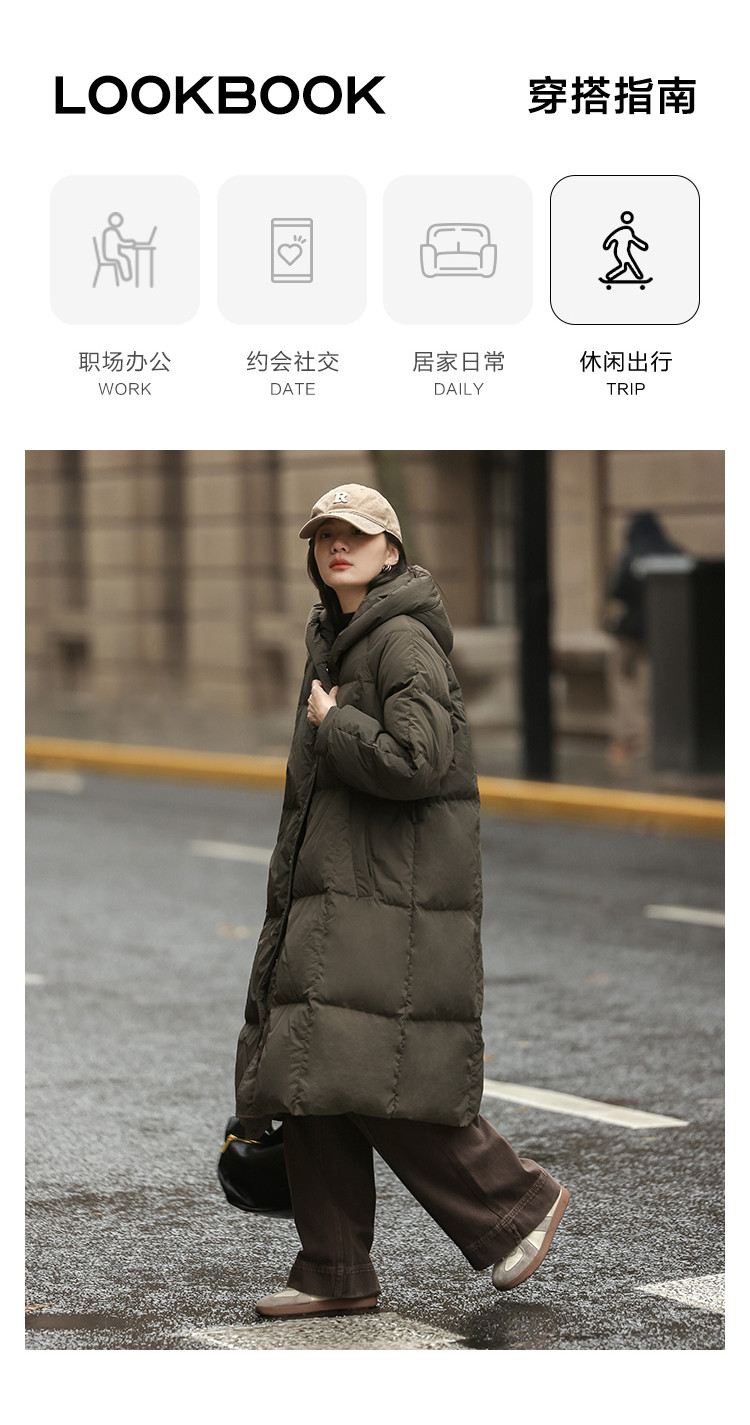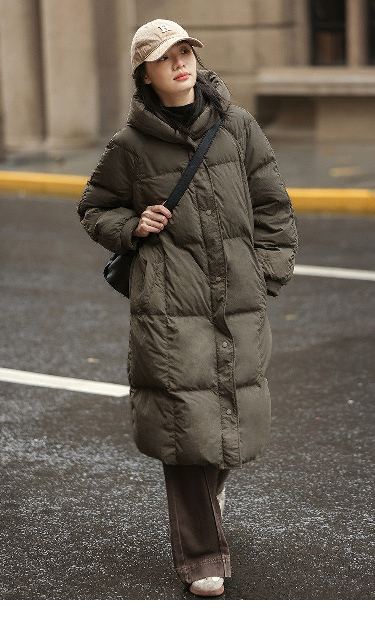【复古长款连帽羽绒服】冬款斜插袋加腰带长款羽绒服女