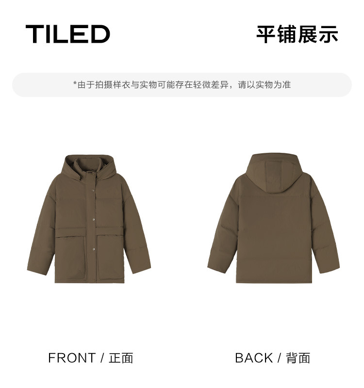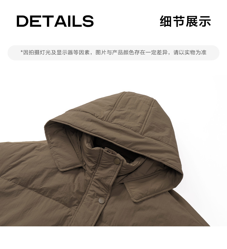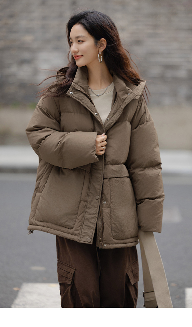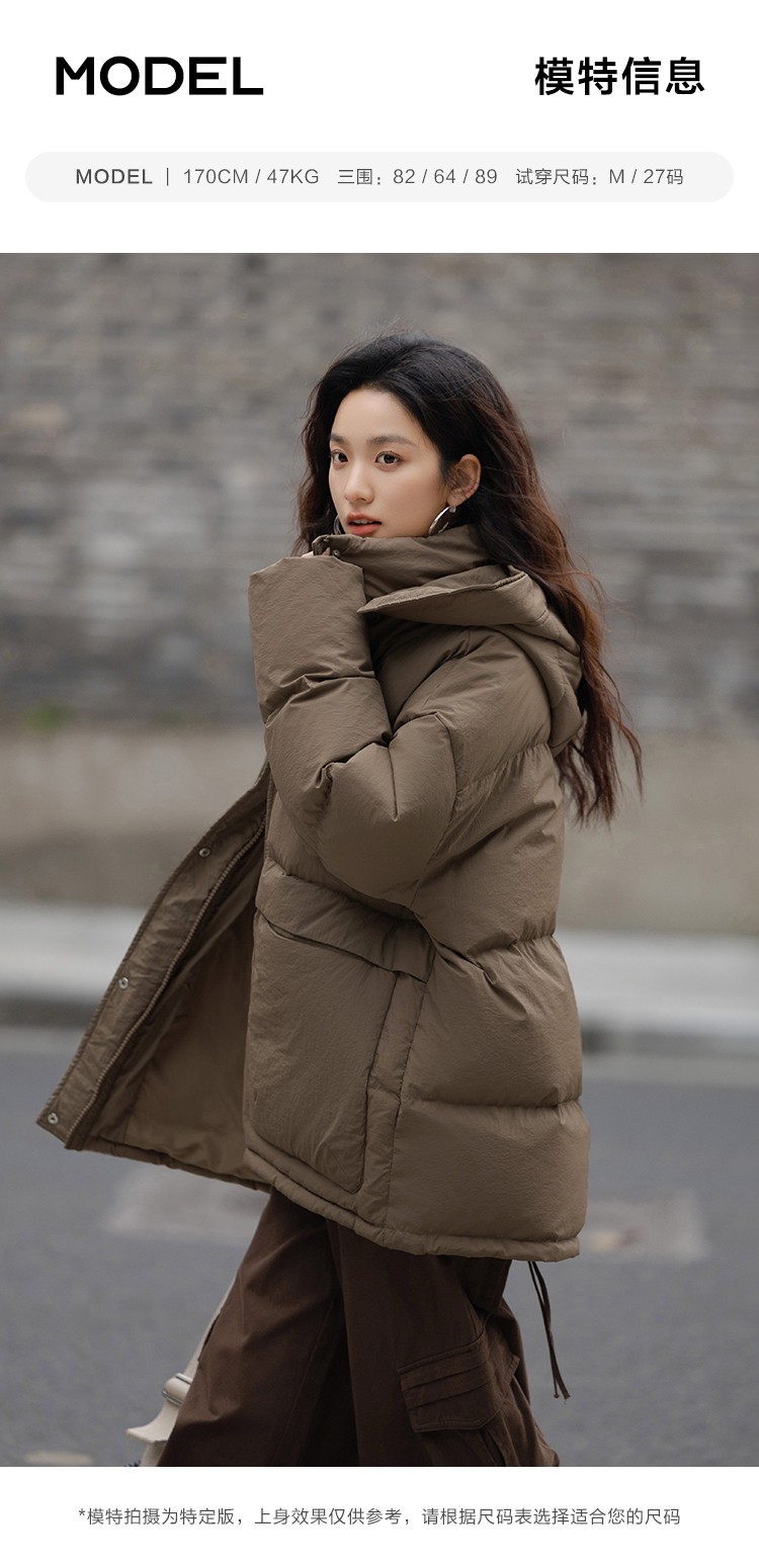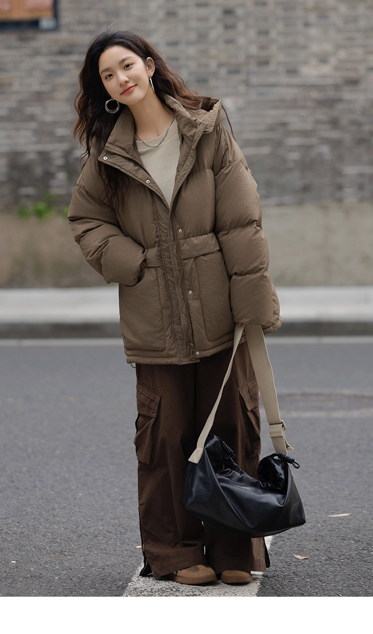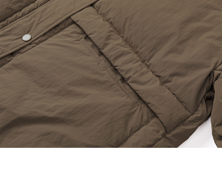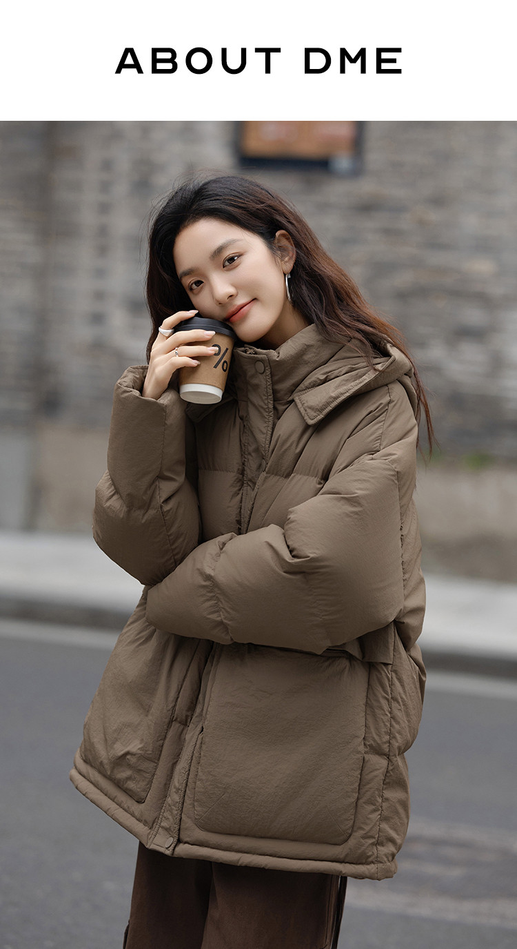 【复古浅咖羽绒服】2024冬款连帽大贴袋装饰一手长羽绒外套女