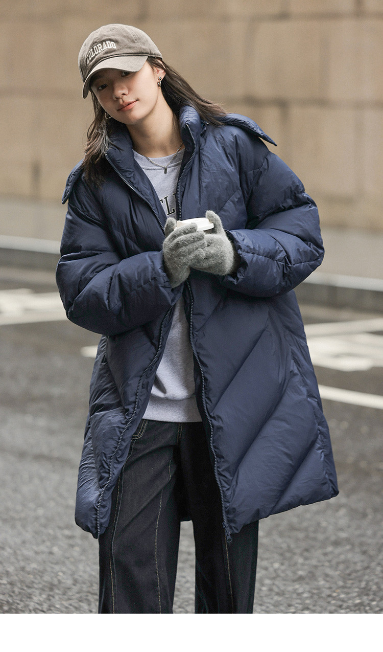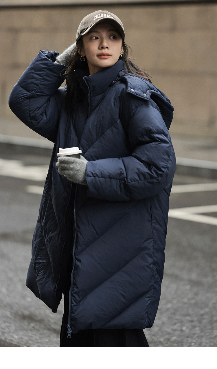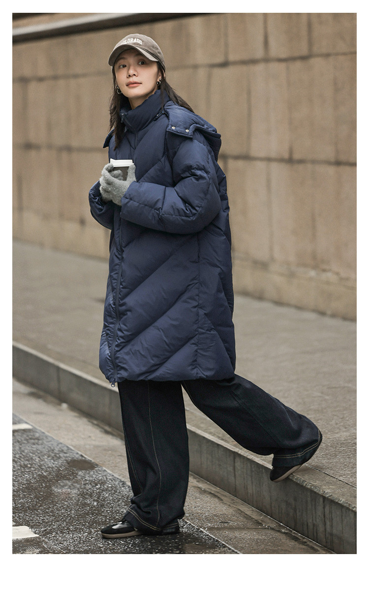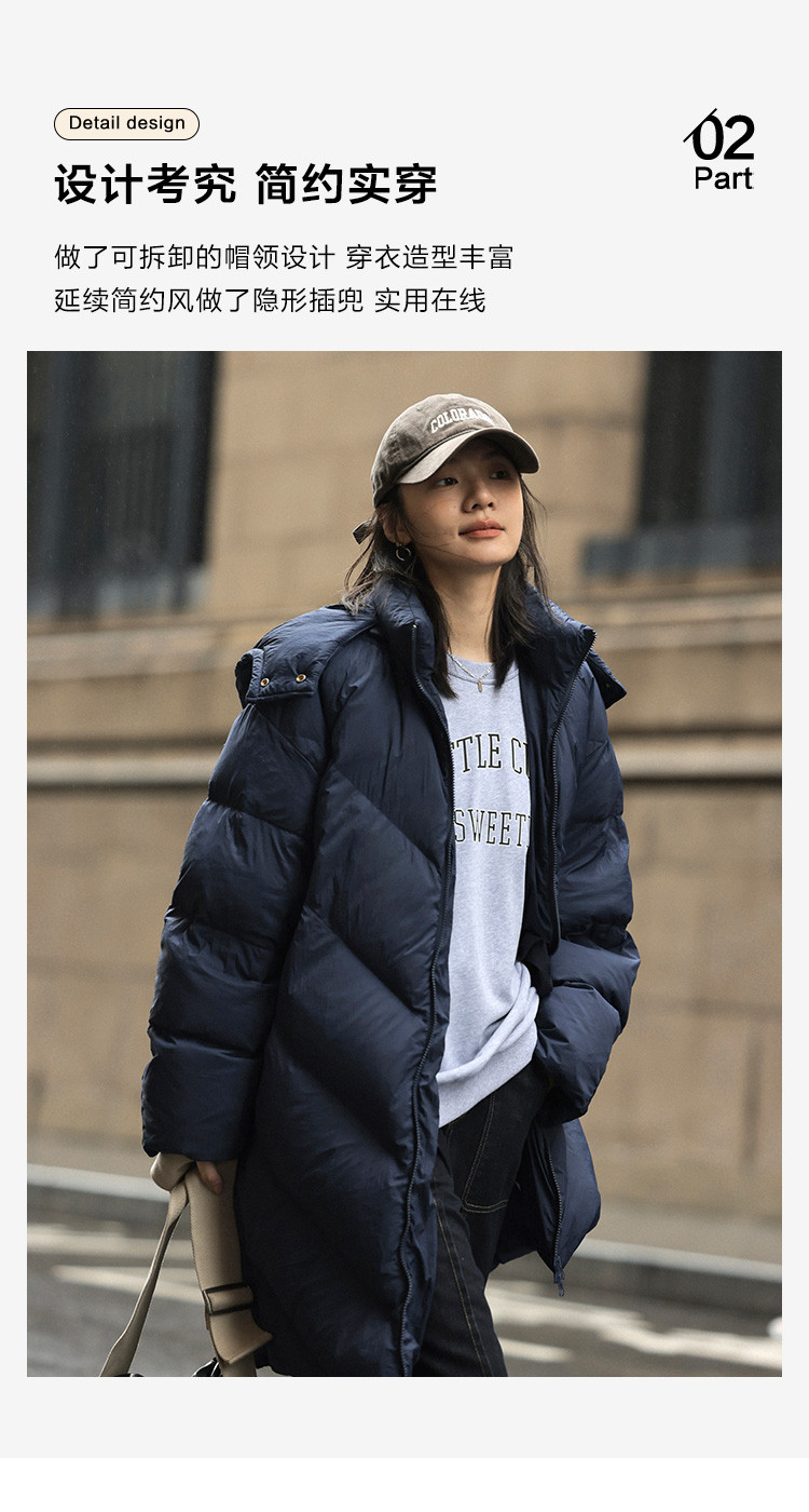 【米白经典款】2024冬款连帽可拆卸长款经典简约羽绒服外套女