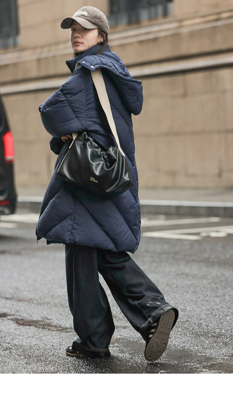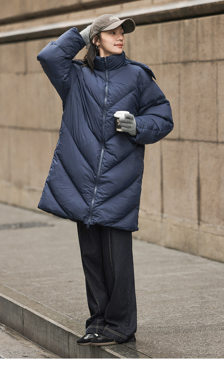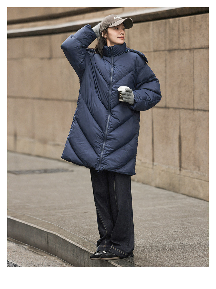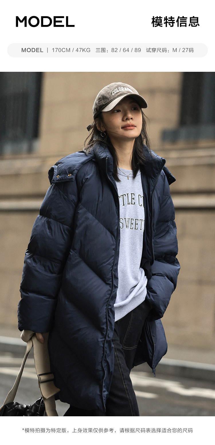 【米白经典款】2024冬款连帽可拆卸长款经典简约羽绒服外套女