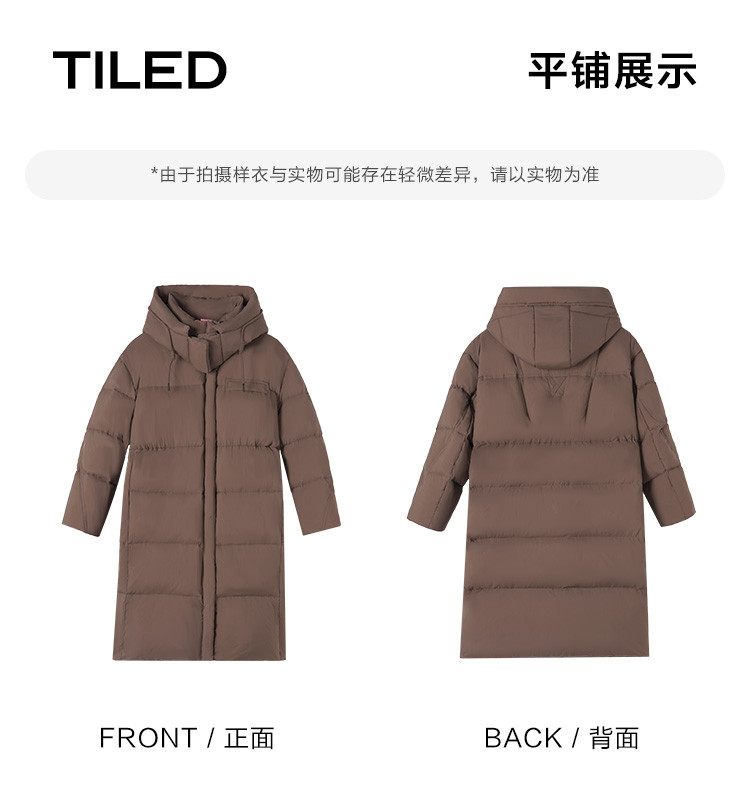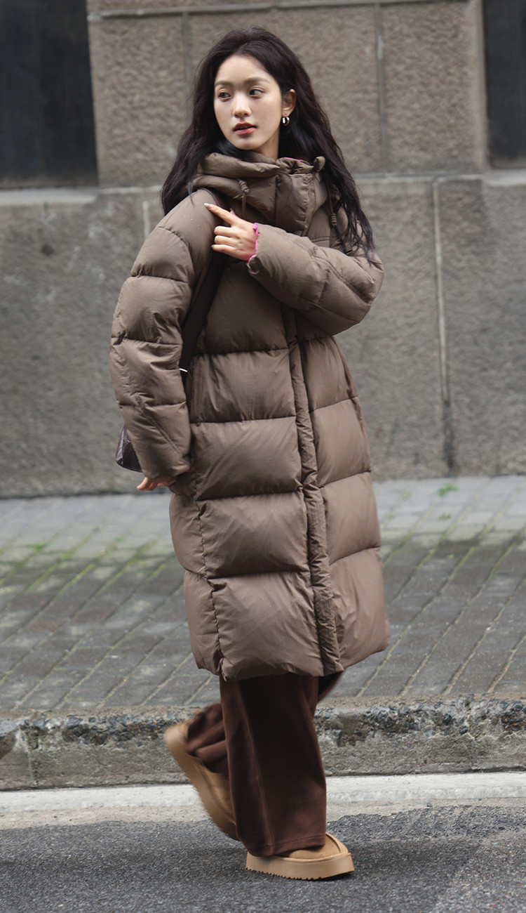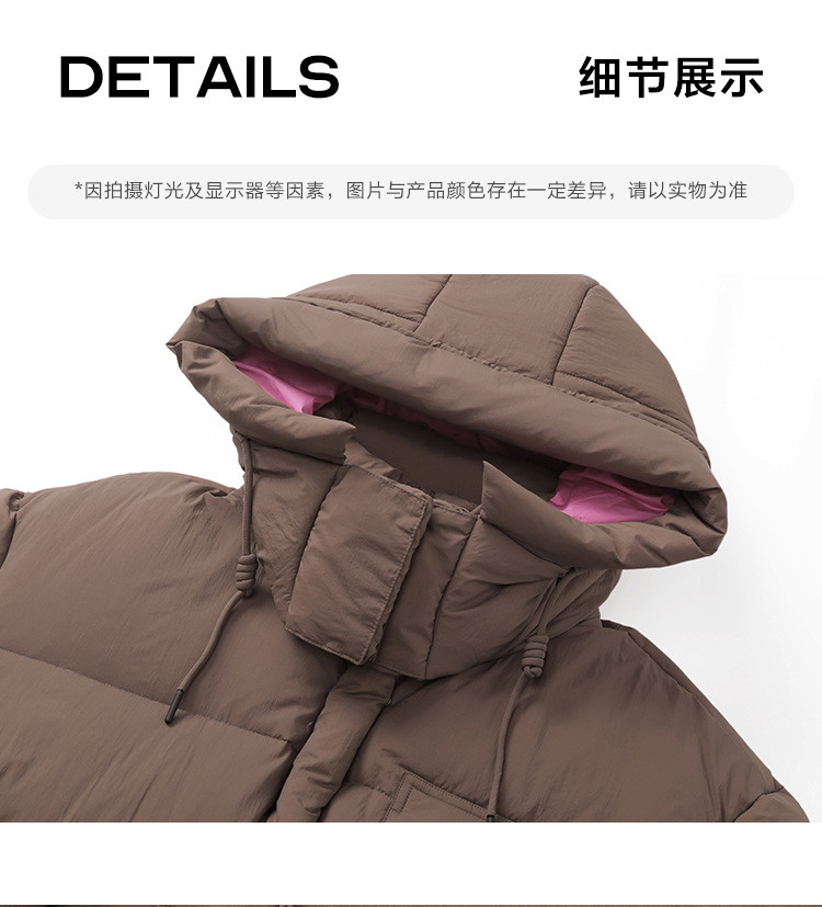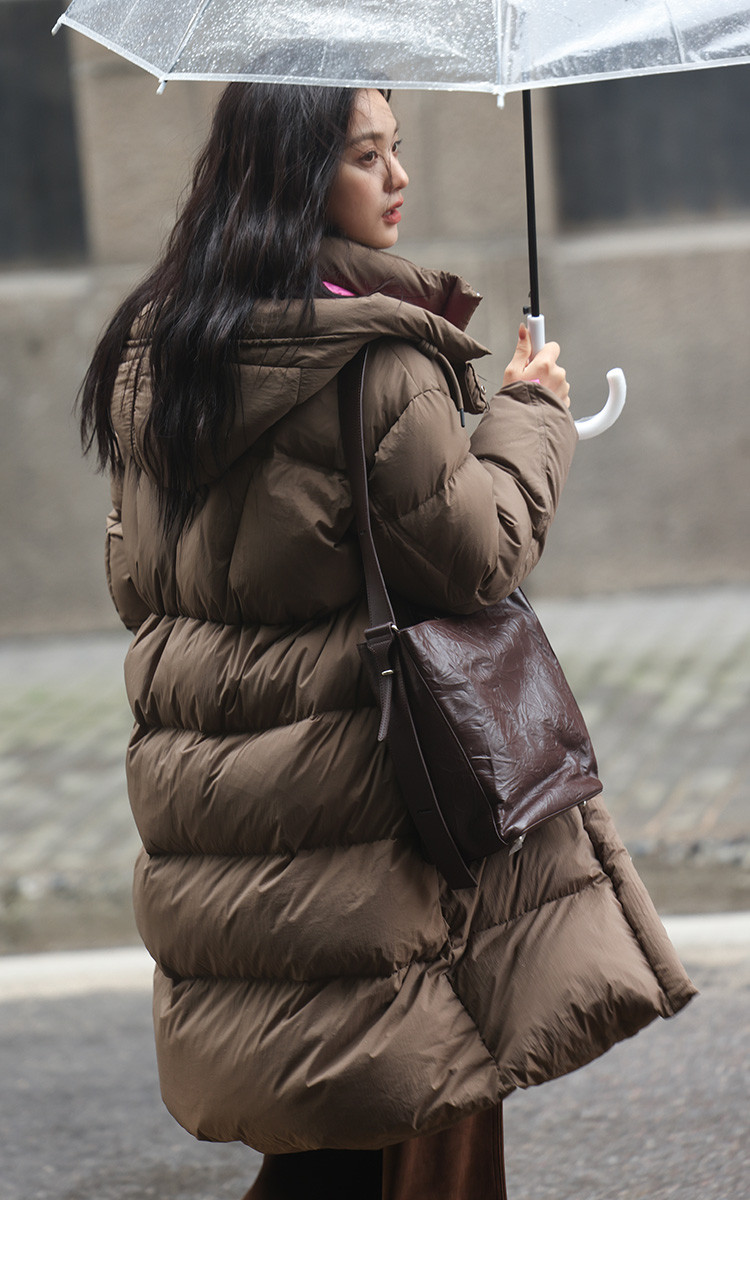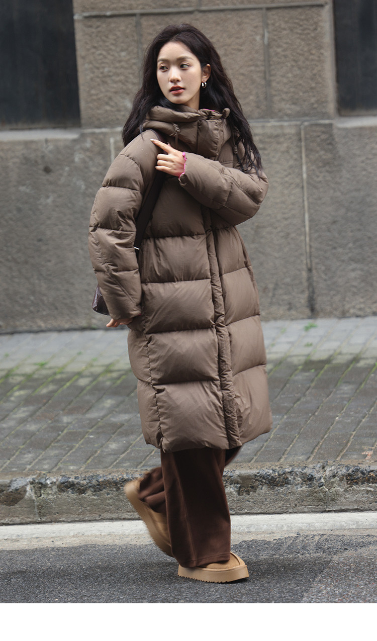 【个性撞色】2024冬款连帽抽绳系带袖子分割线装饰长款羽绒女