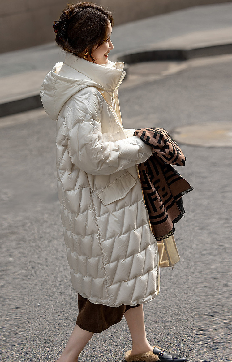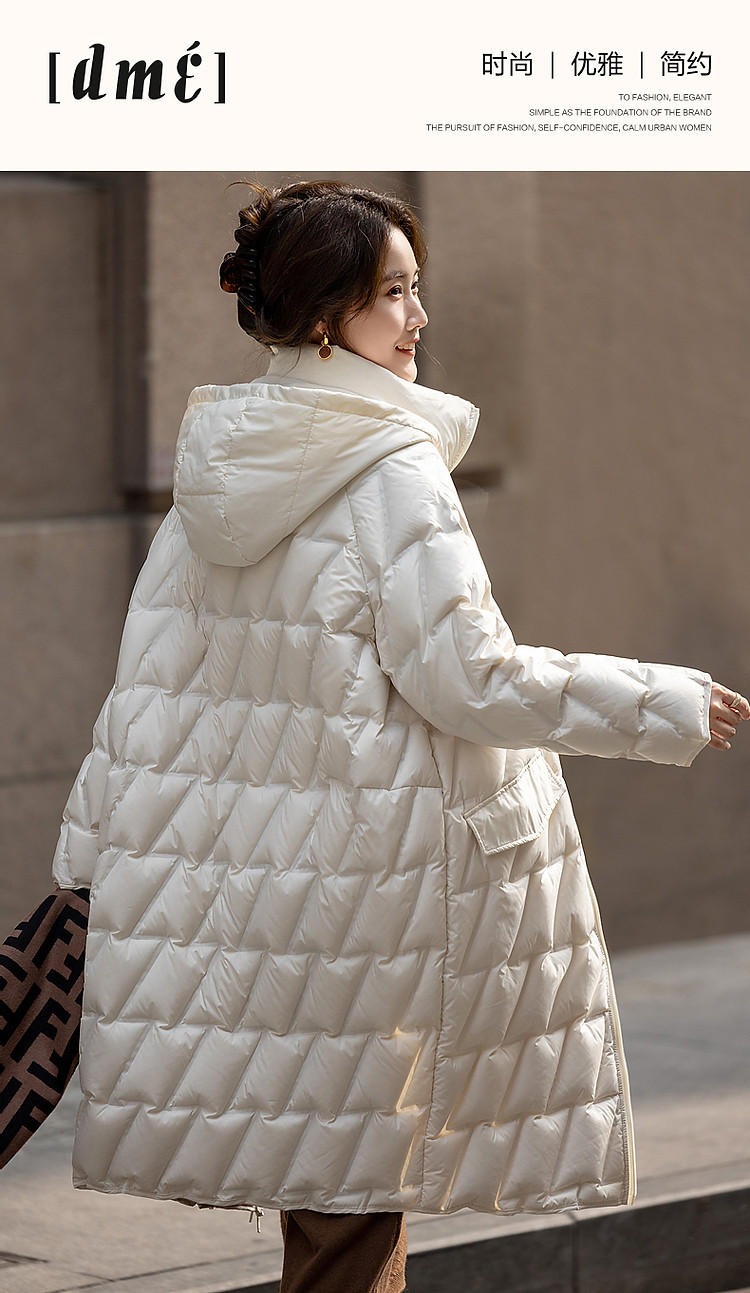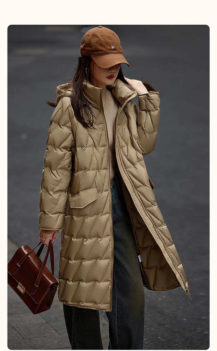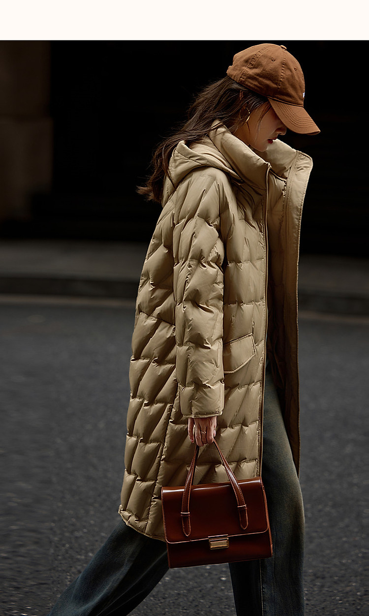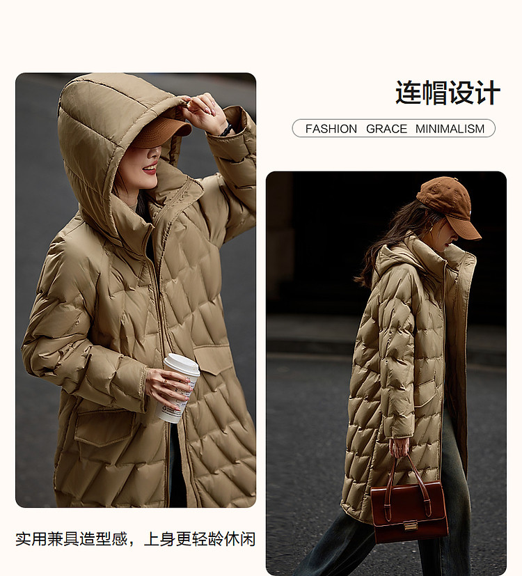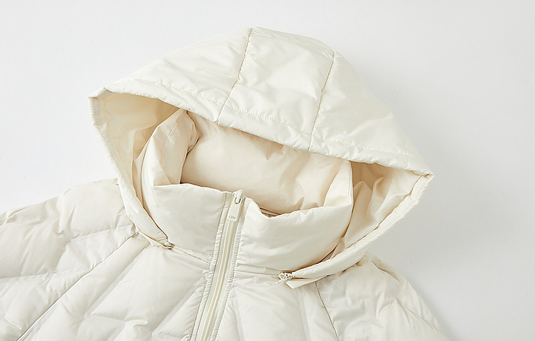 【迎风溯雪】冬400T春亚纺几何压胶90鸭绒连帽锁暖羽绒服女