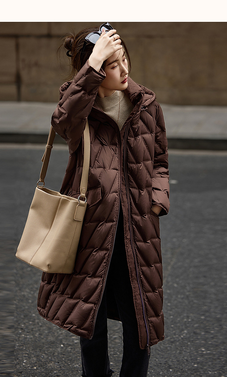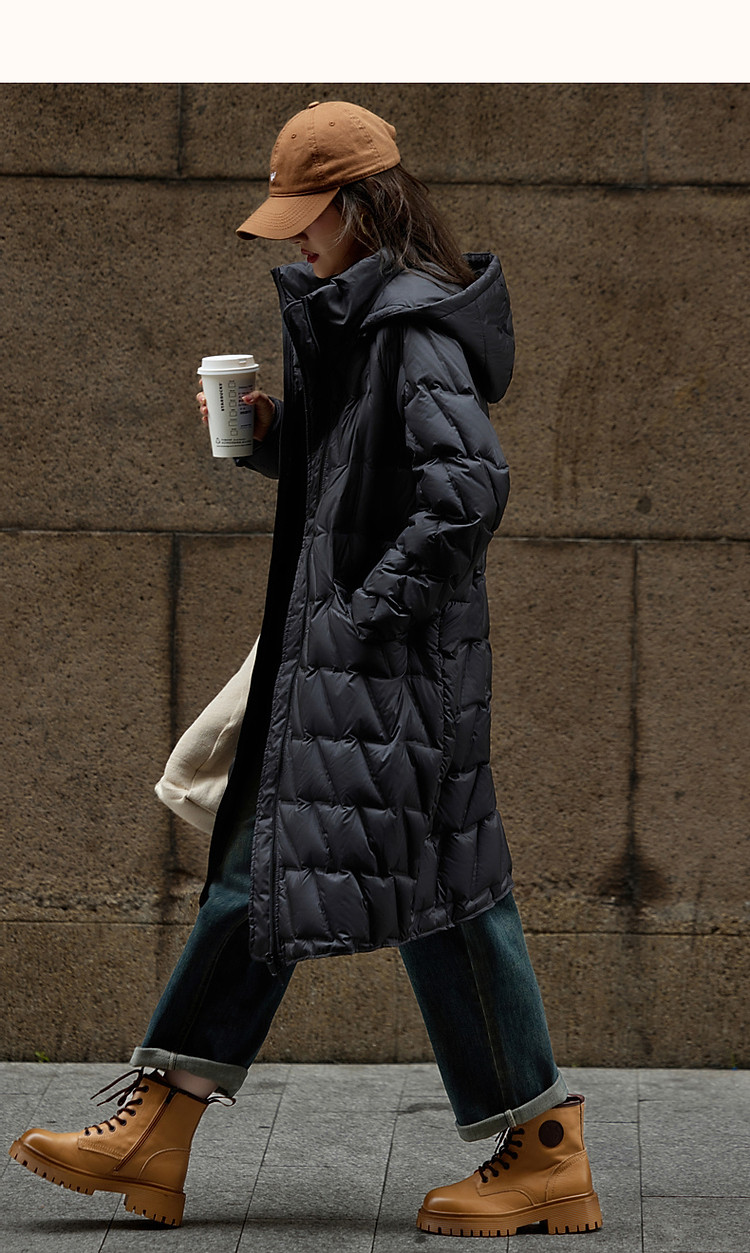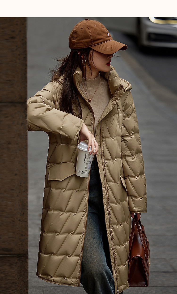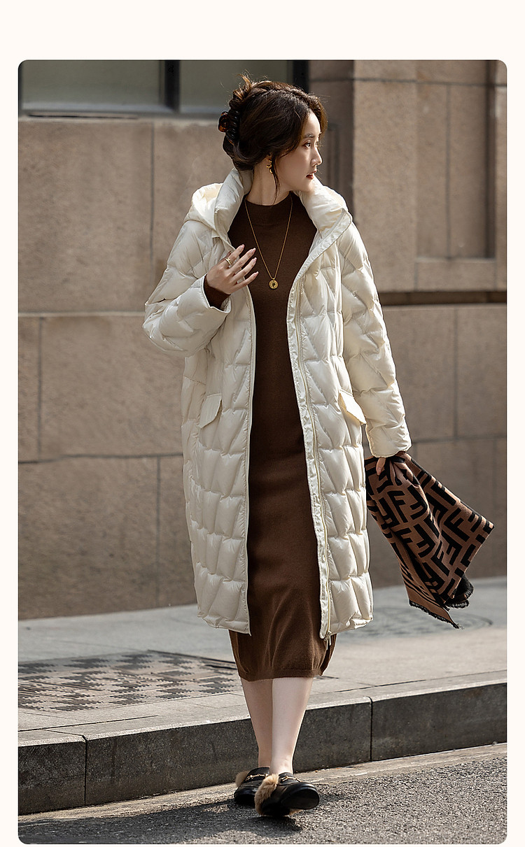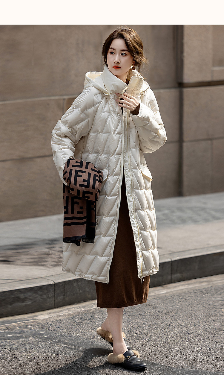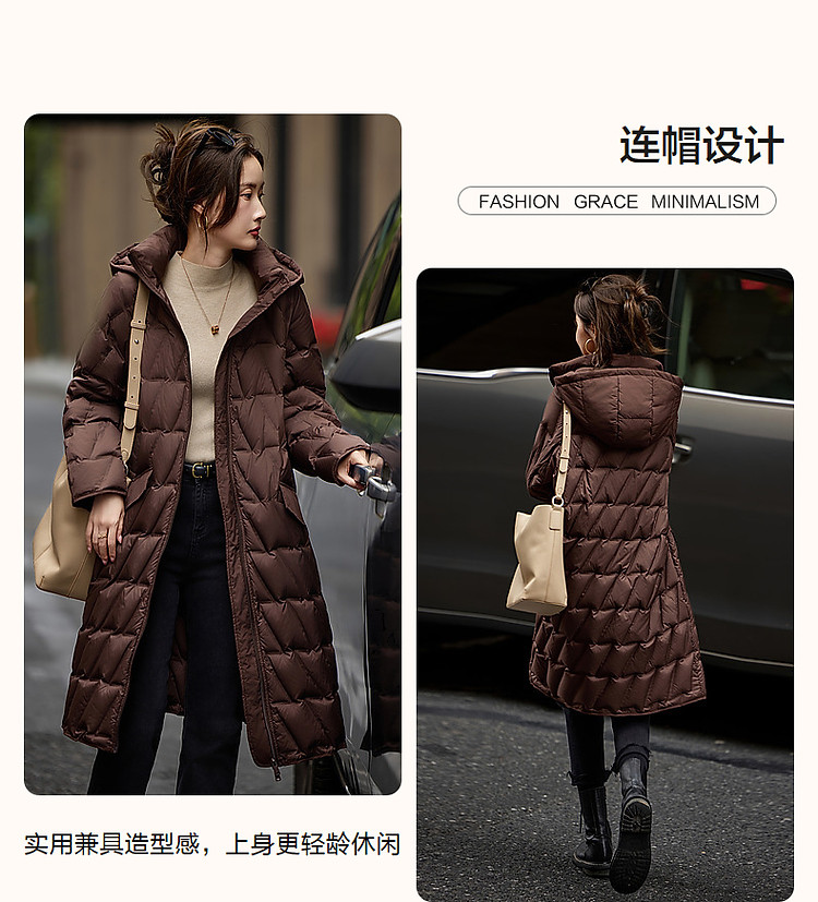 【迎风溯雪】冬400T春亚纺几何压胶90鸭绒连帽锁暖羽绒服女