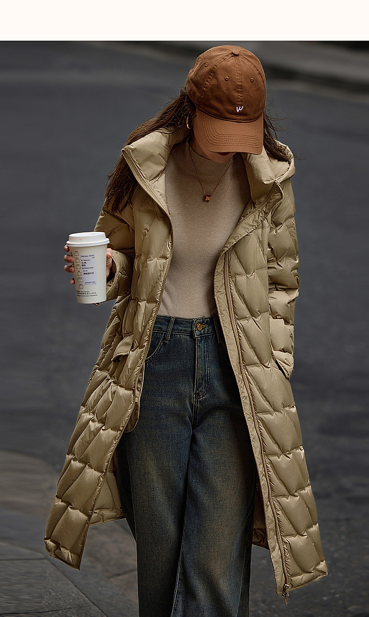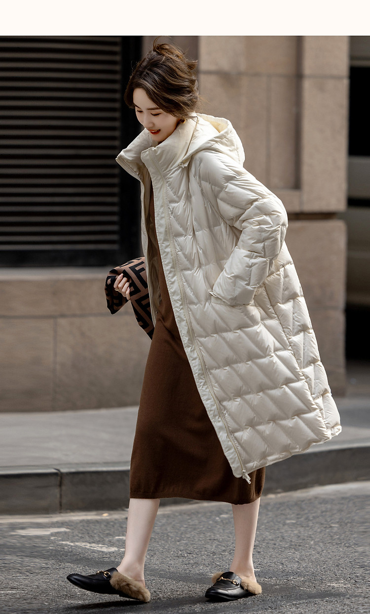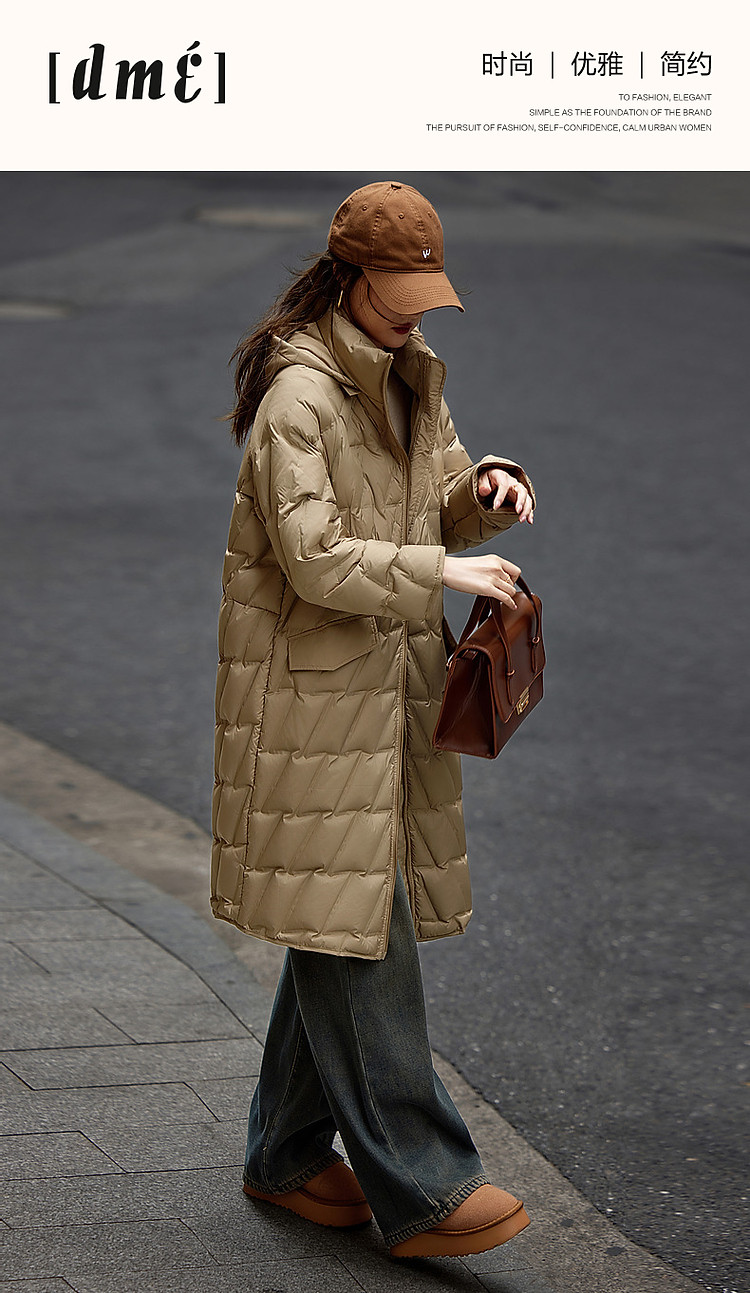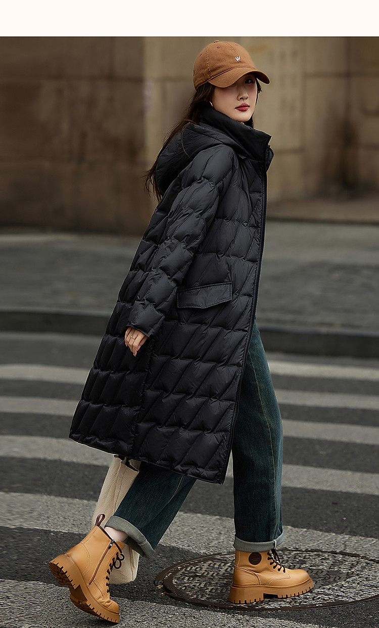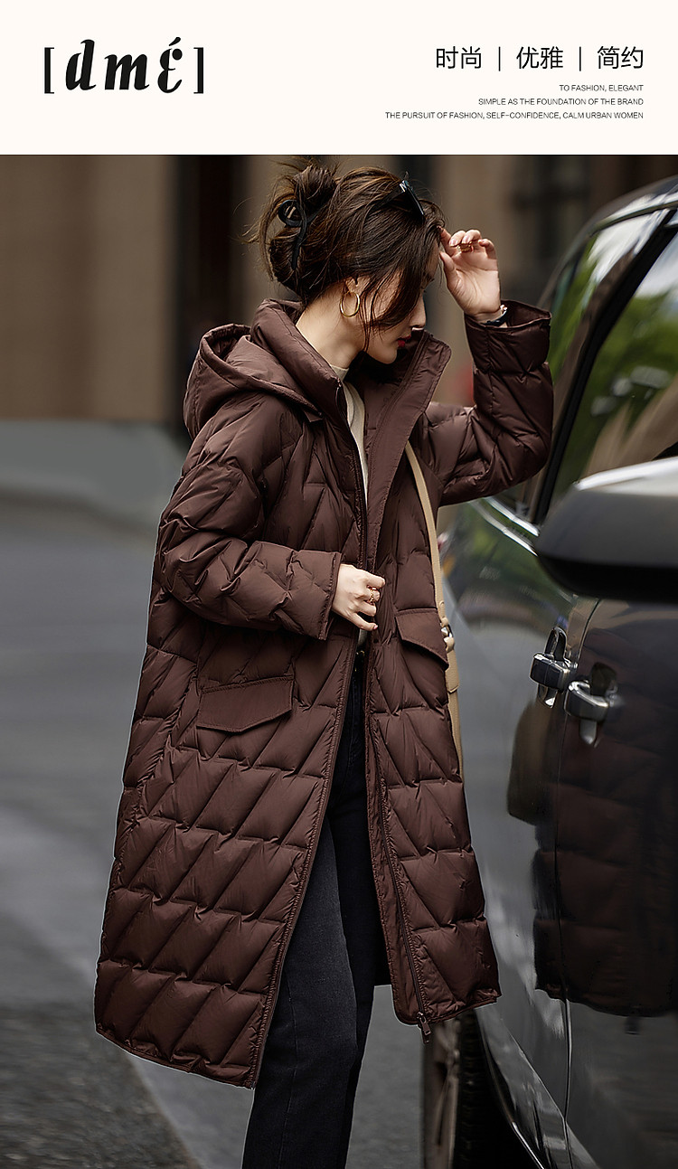 【迎风溯雪】冬400T春亚纺几何压胶90鸭绒连帽锁暖羽绒服女