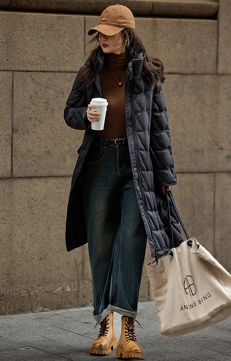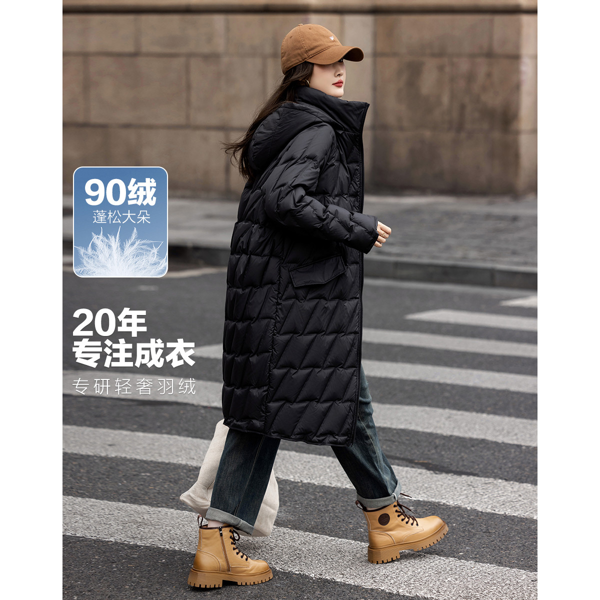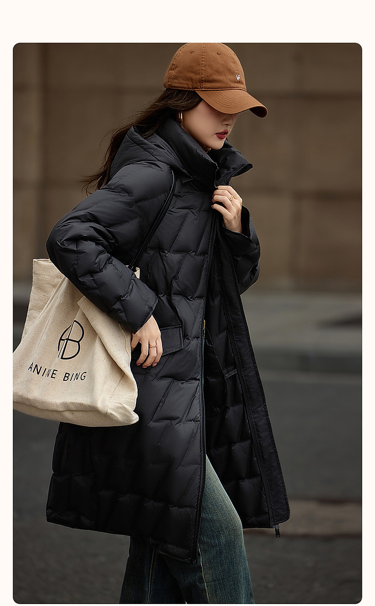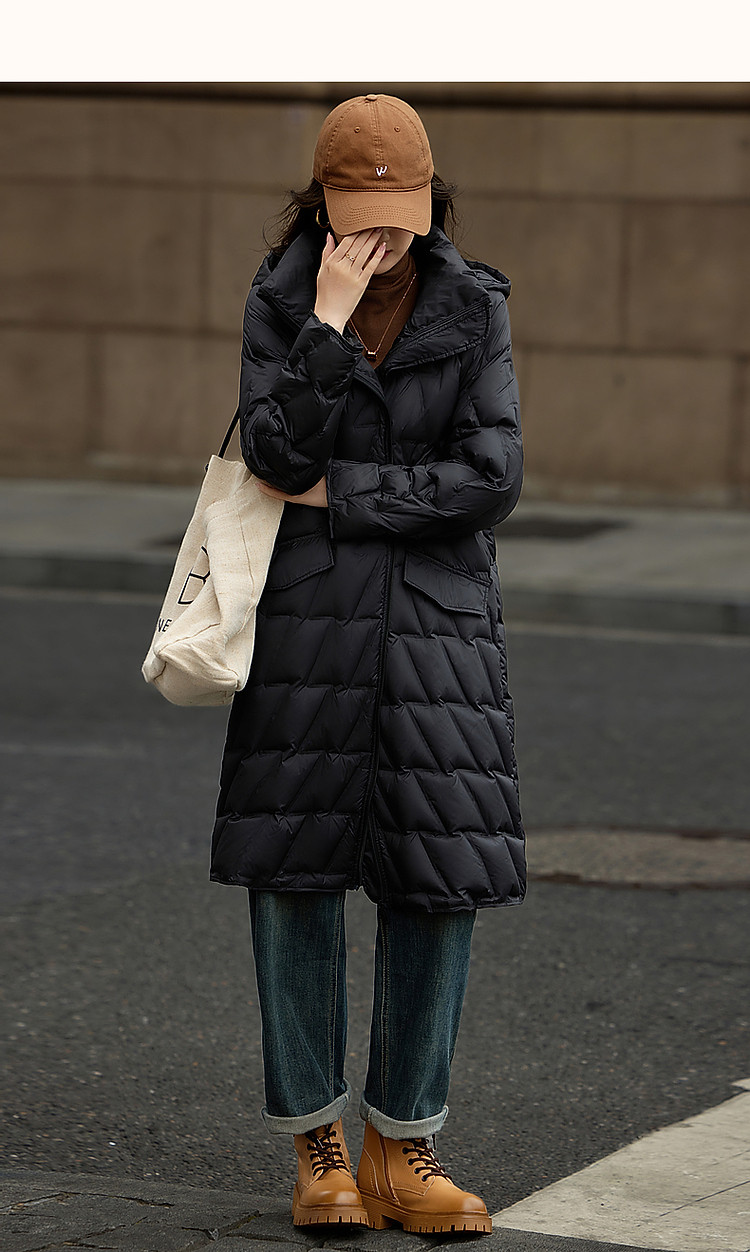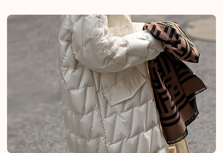 【迎风溯雪】冬400T春亚纺几何压胶90鸭绒连帽锁暖羽绒服女