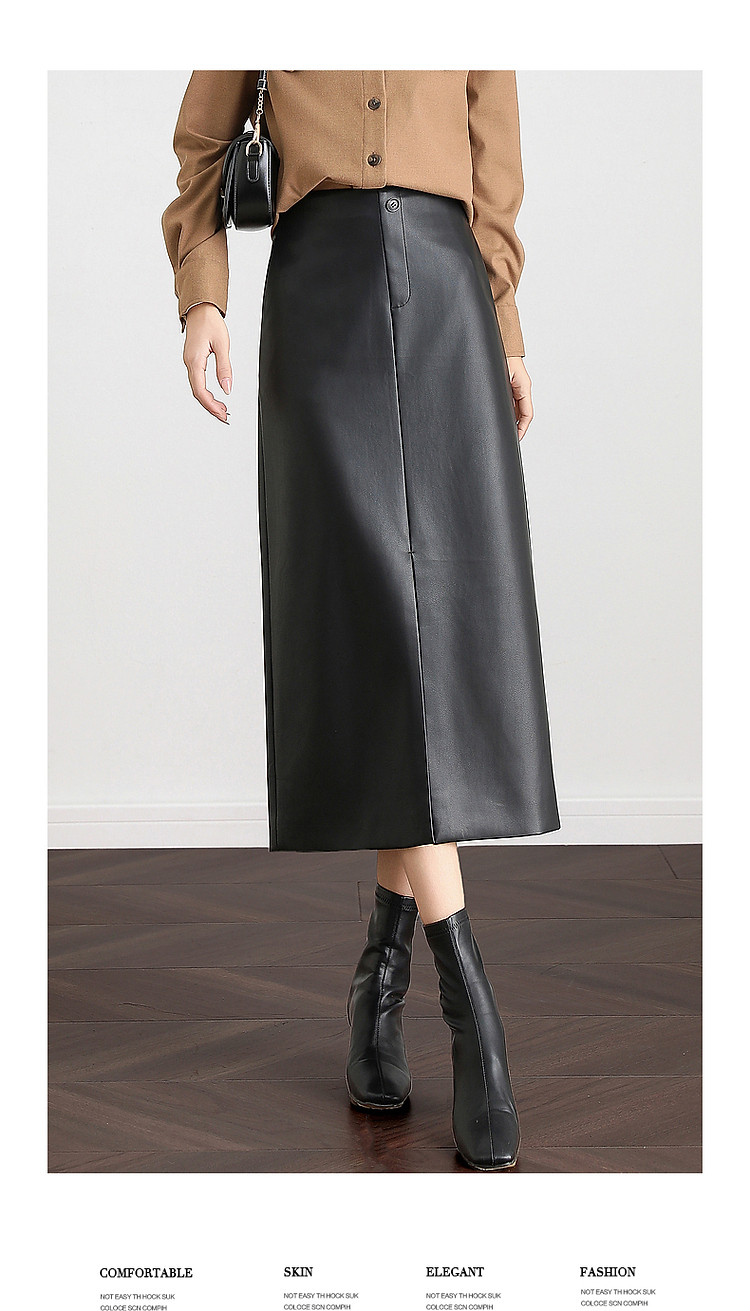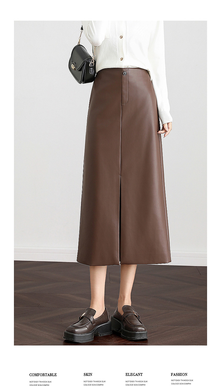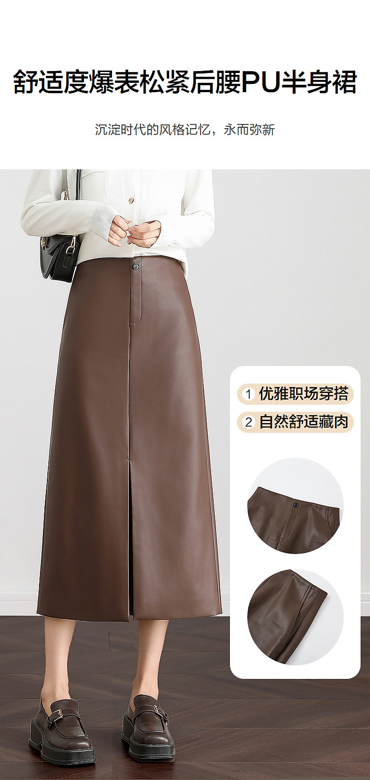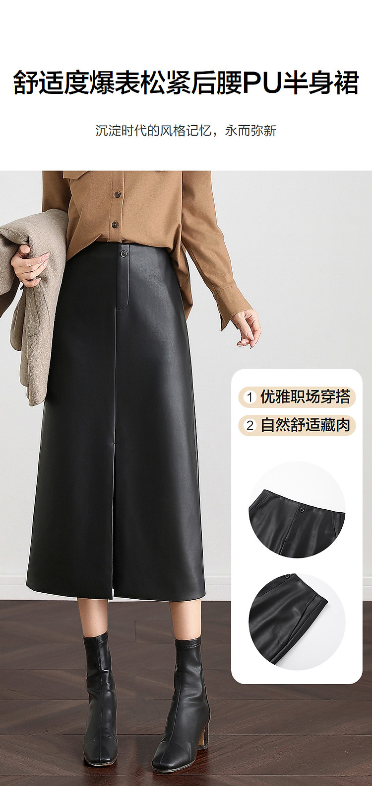【酷飒大女主】秋季都市优雅松紧后腰PU舒适遮肉半身裙女中长款