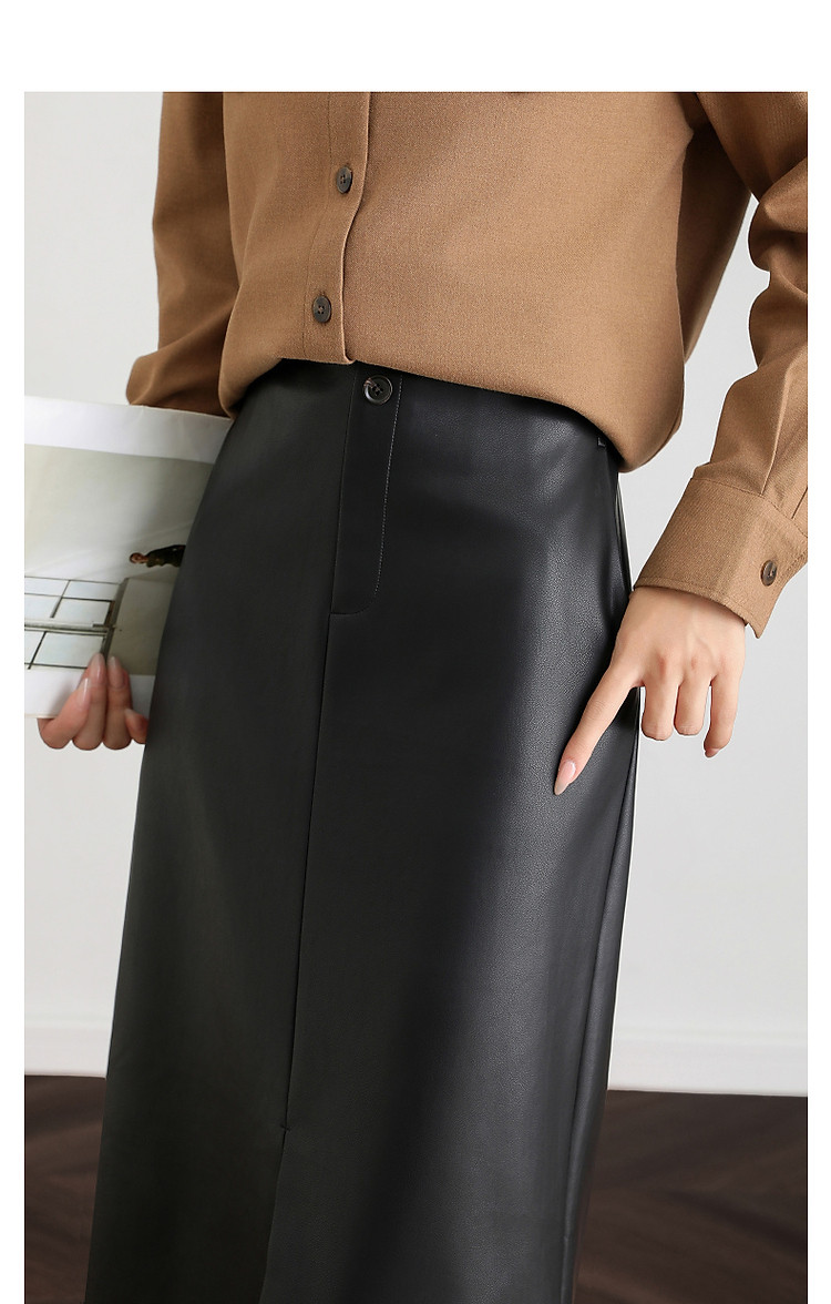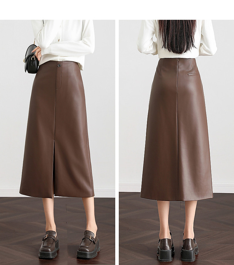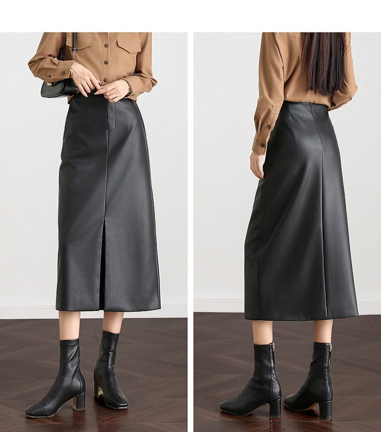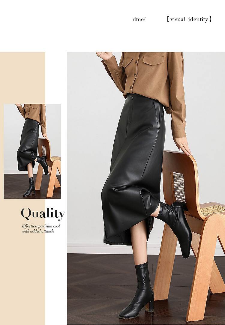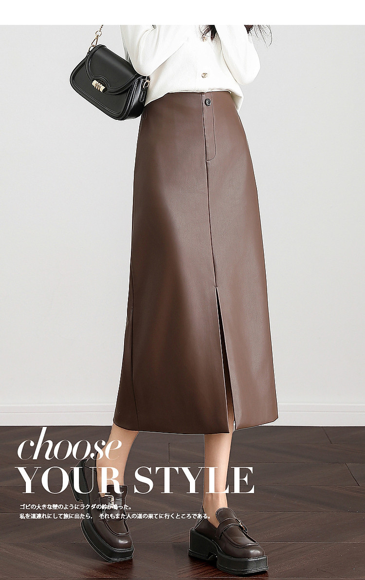 【酷飒大女主】秋季都市优雅松紧后腰PU舒适遮肉半身裙女中长款