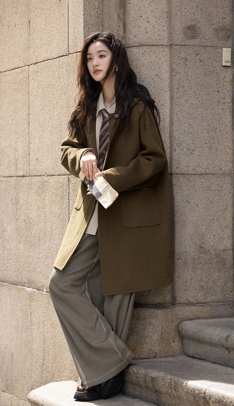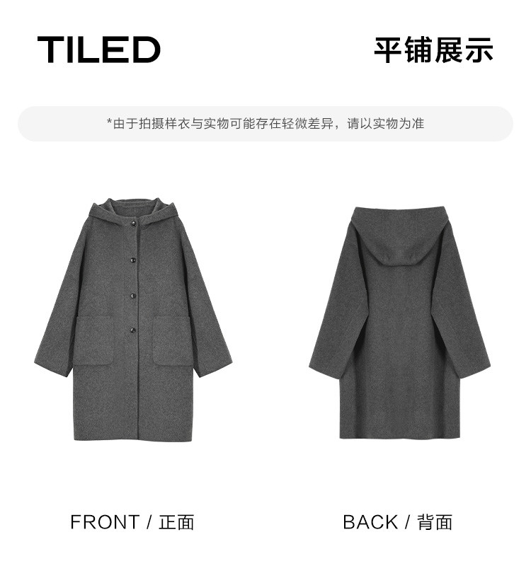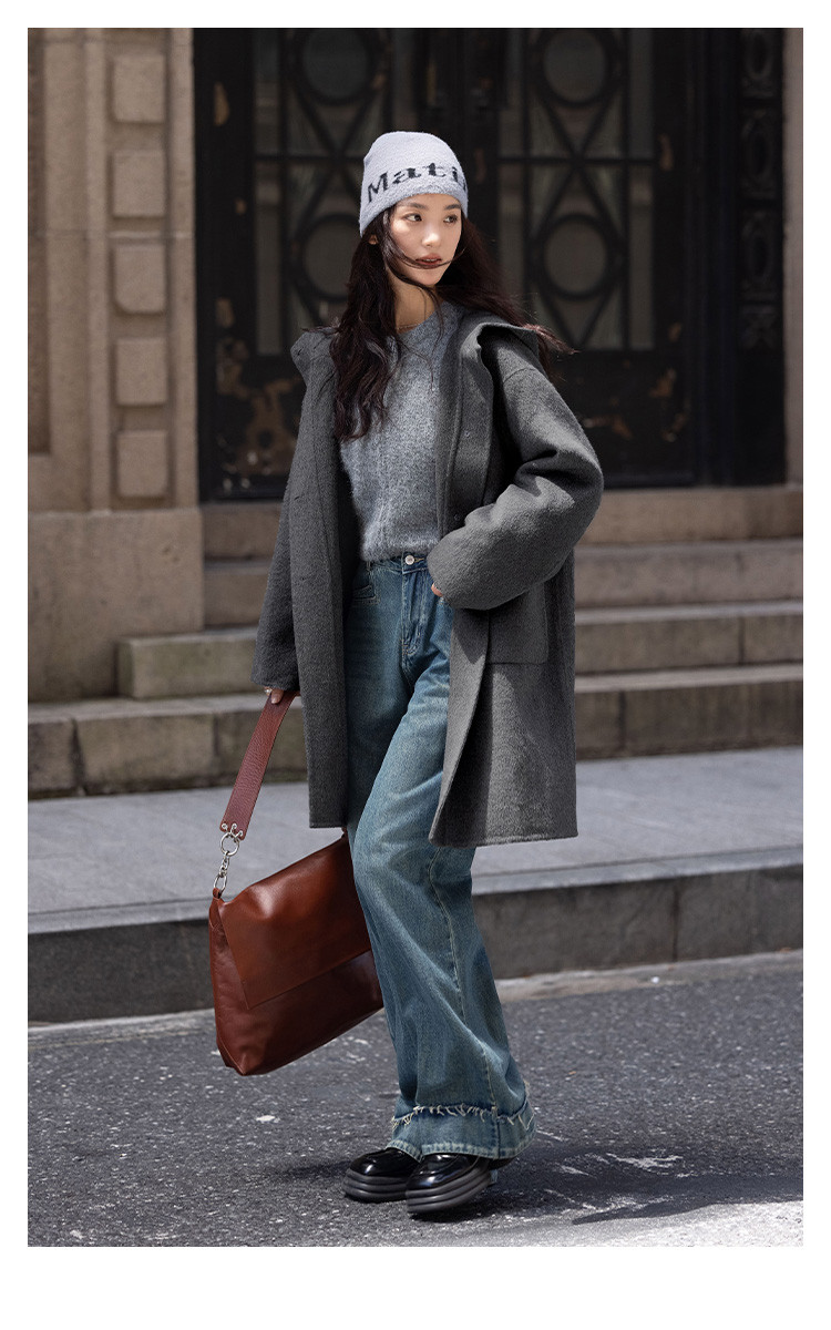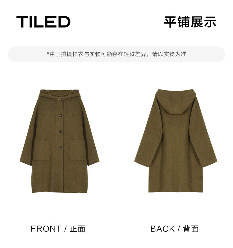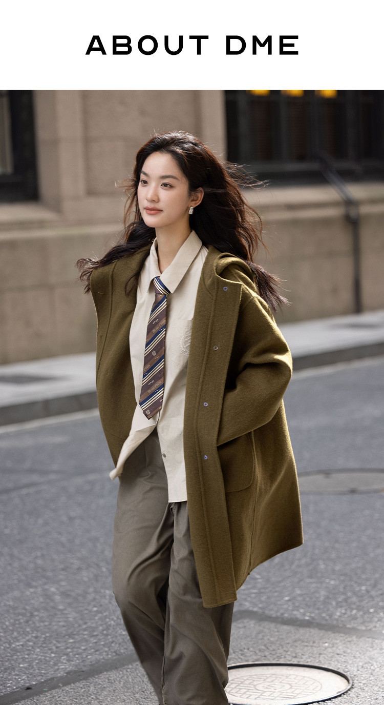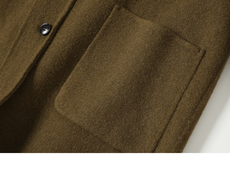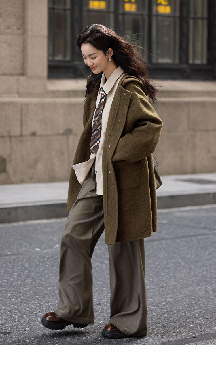 【学院风大衣】2024冬款连帽开门襟贴袋设计长袖中长款呢大衣