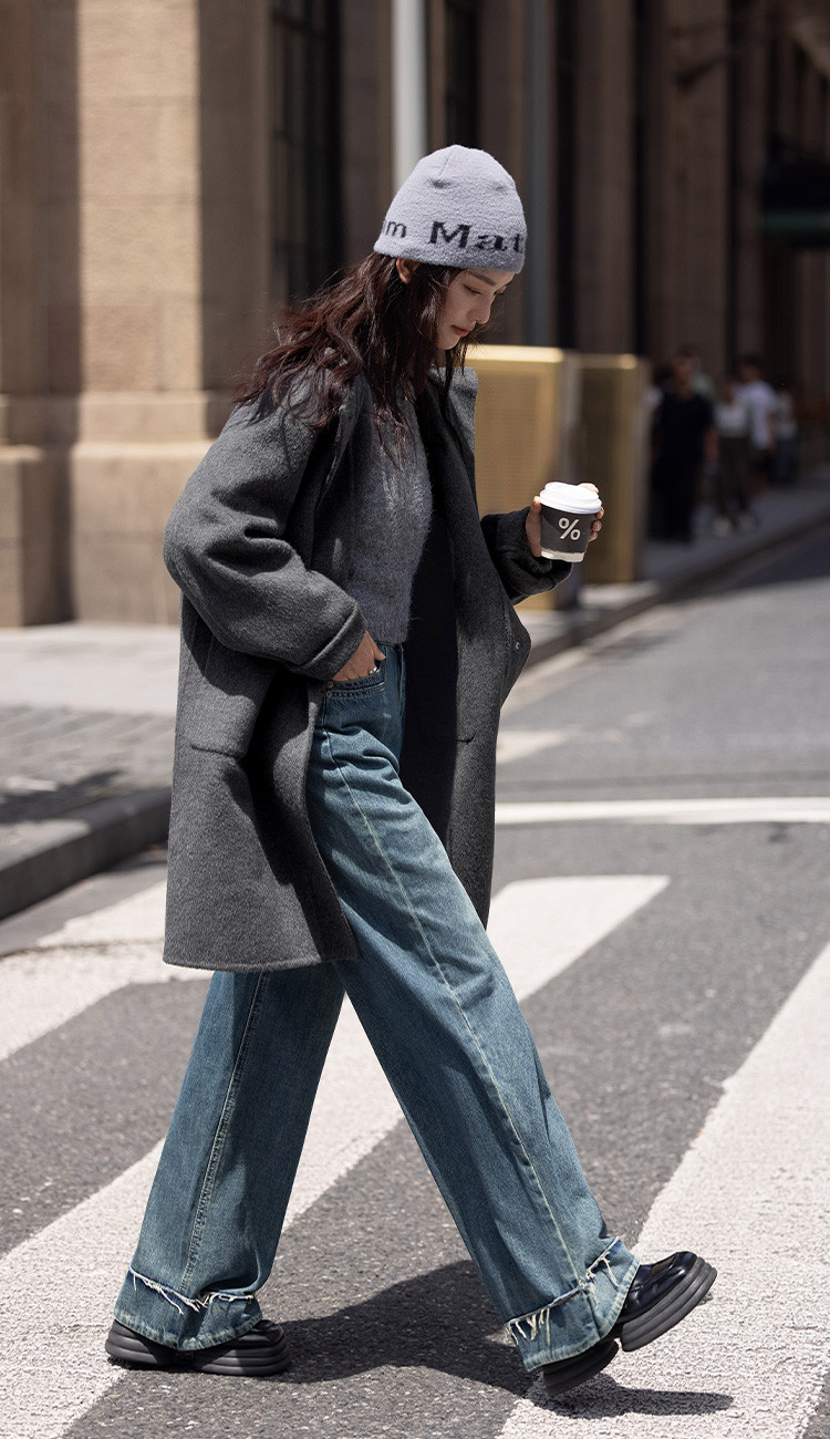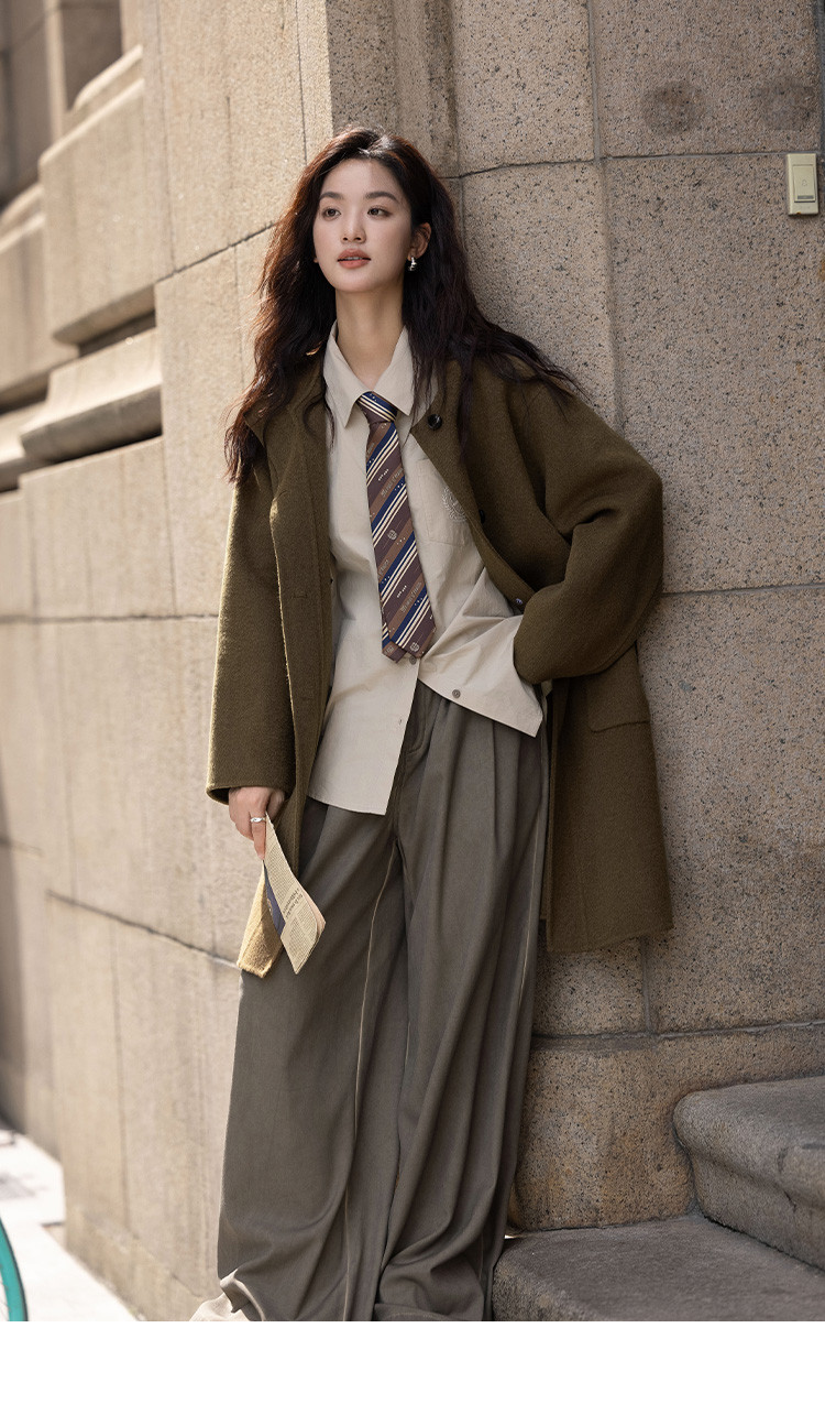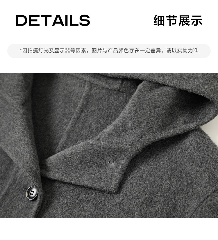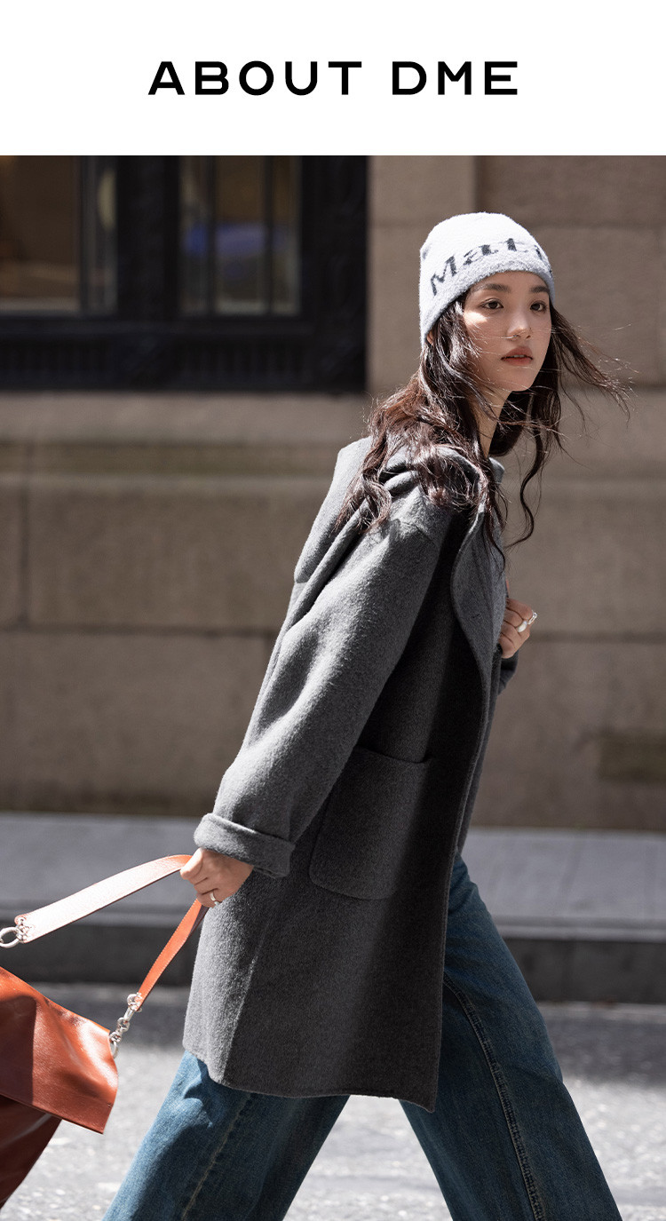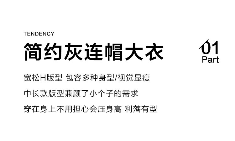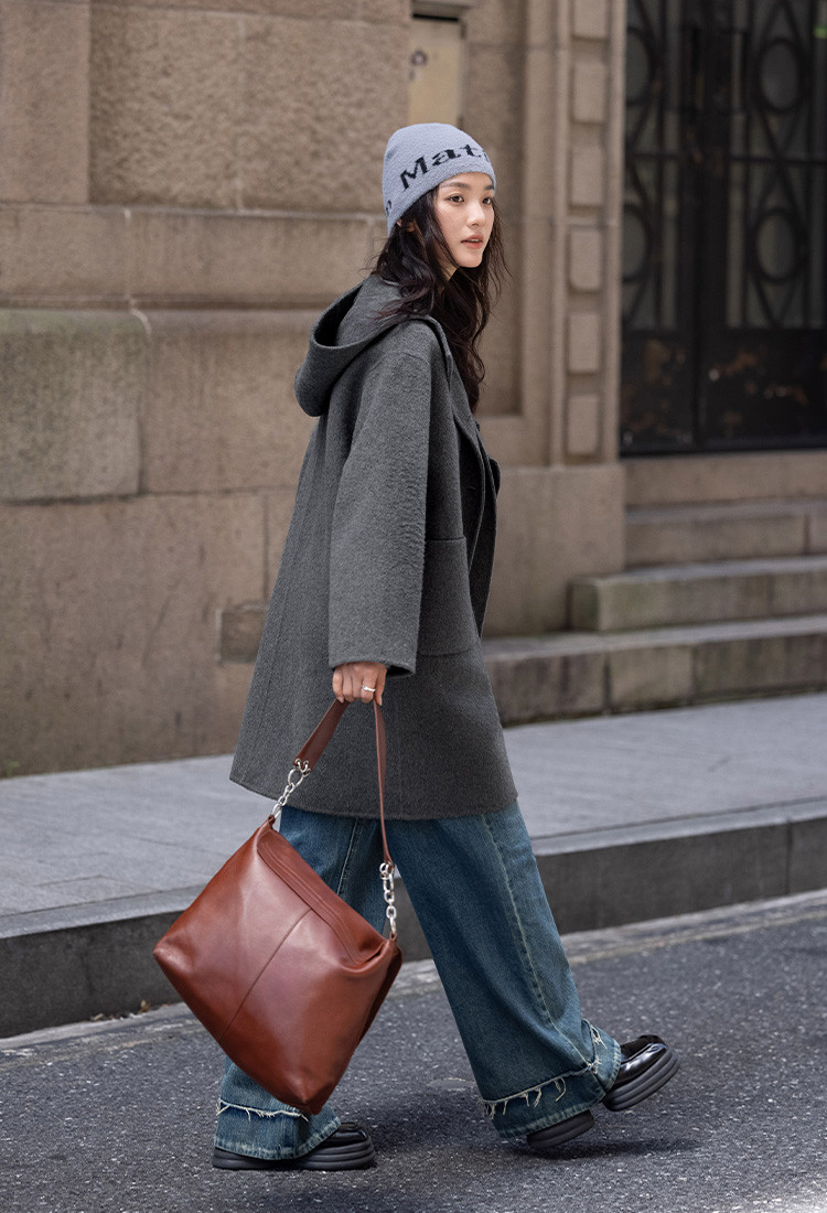 【学院风大衣】2024冬款连帽开门襟贴袋设计长袖中长款呢大衣