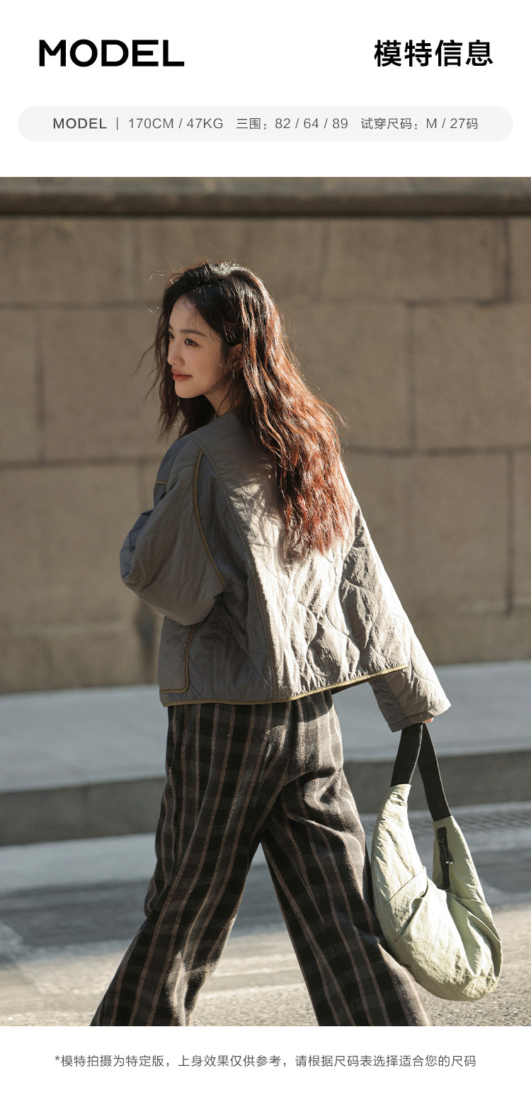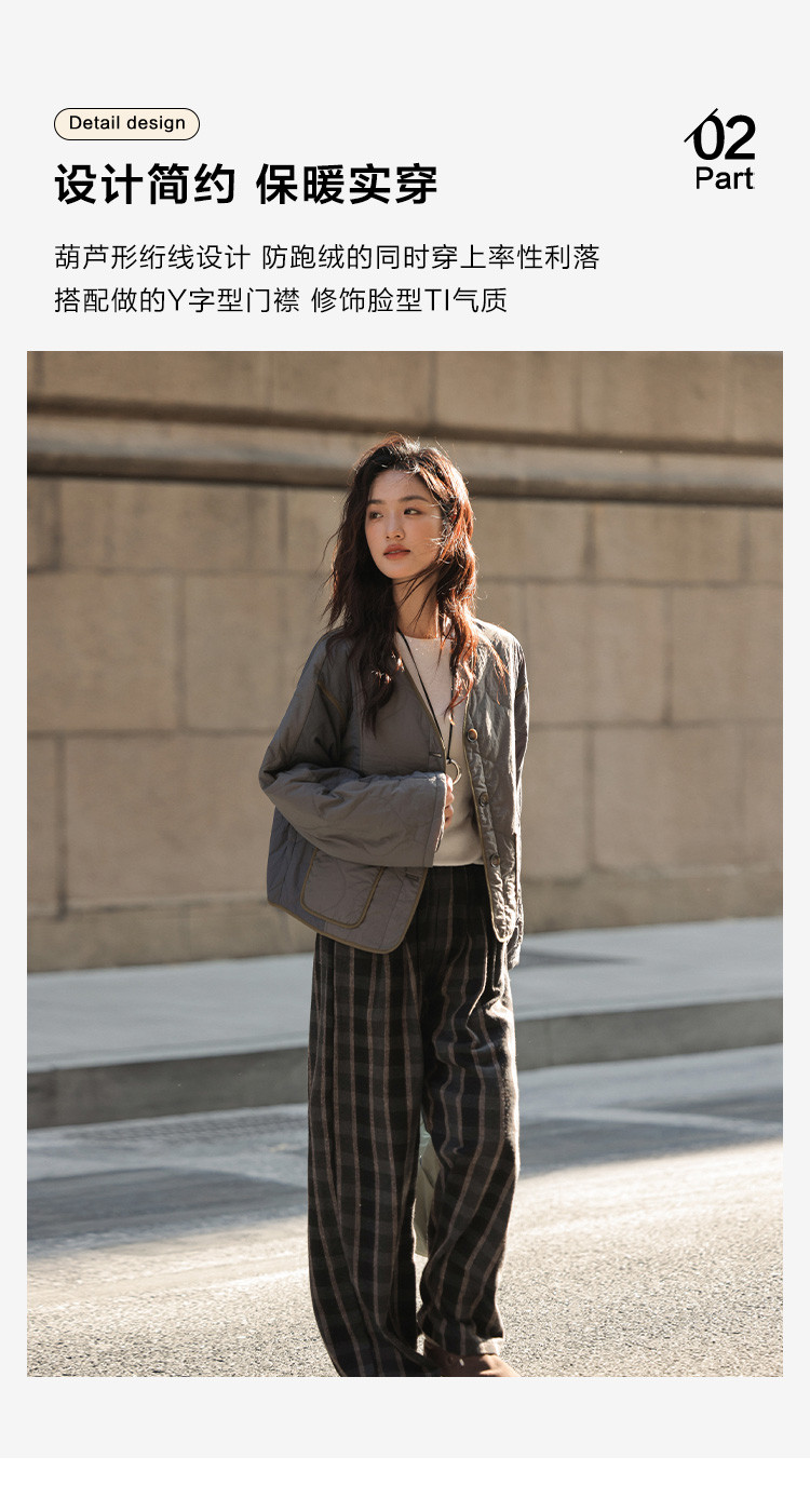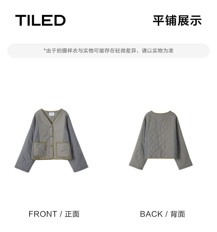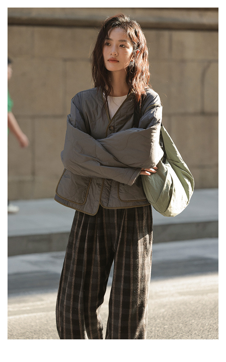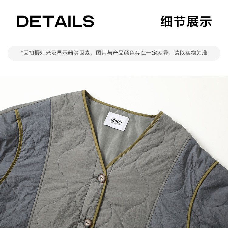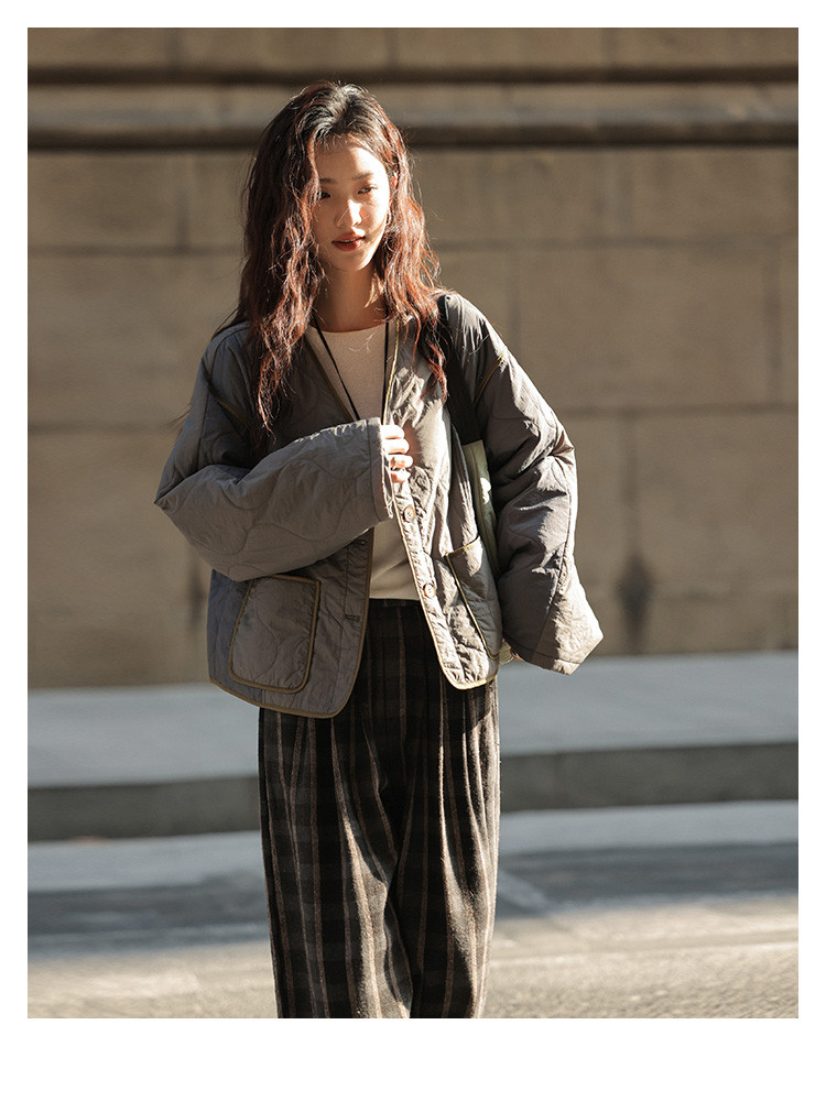 【小众拼色轻便棉服】2024冬款慵懒叠穿V领葫芦绗棉外套女