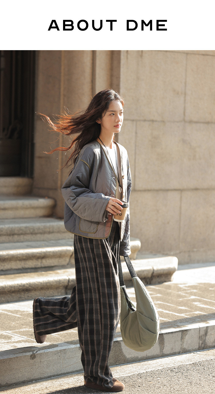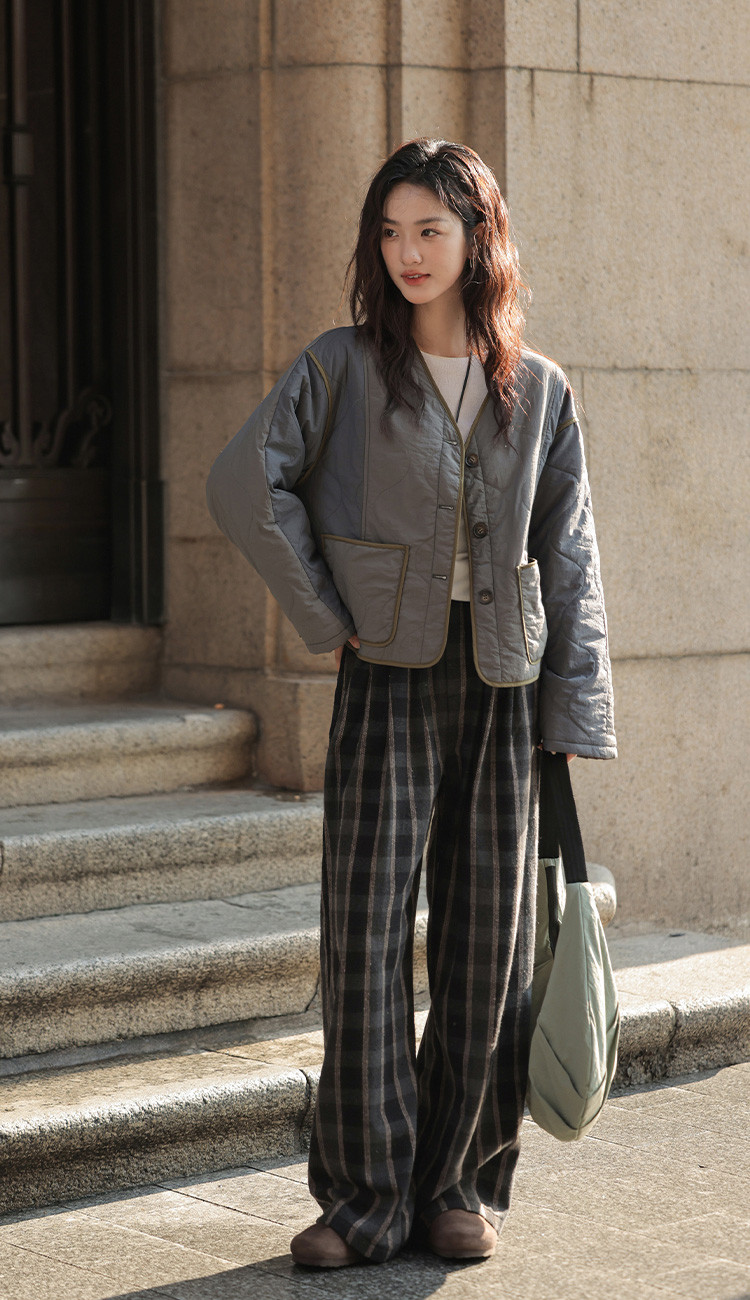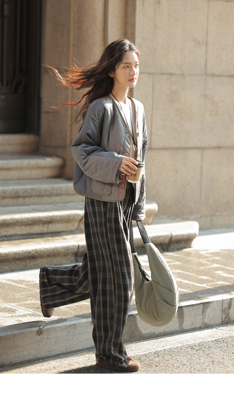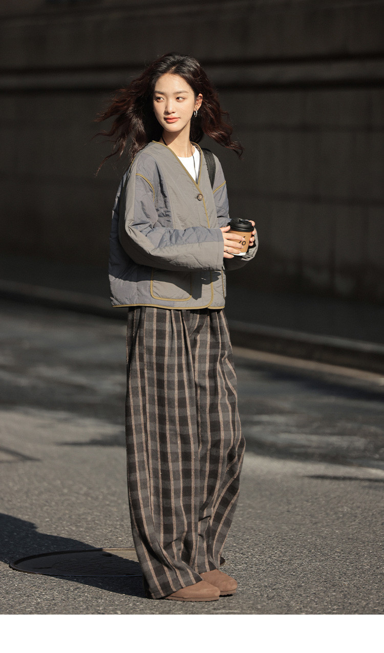 【复古格纹裤】2024冬款现代学院风垂阔显瘦日常休闲裤女