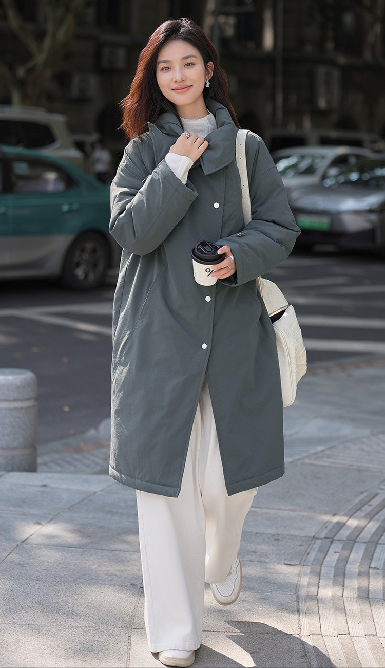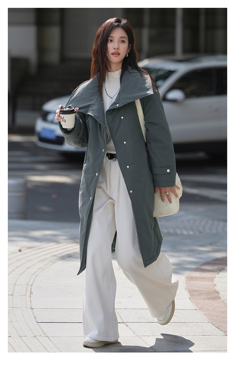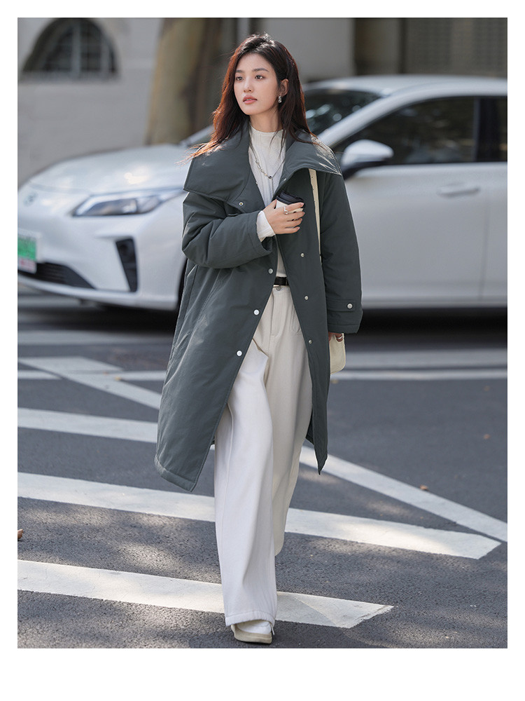 【简约炭灰大翻领】2024冬款长款实穿保暖厚实棉衣女