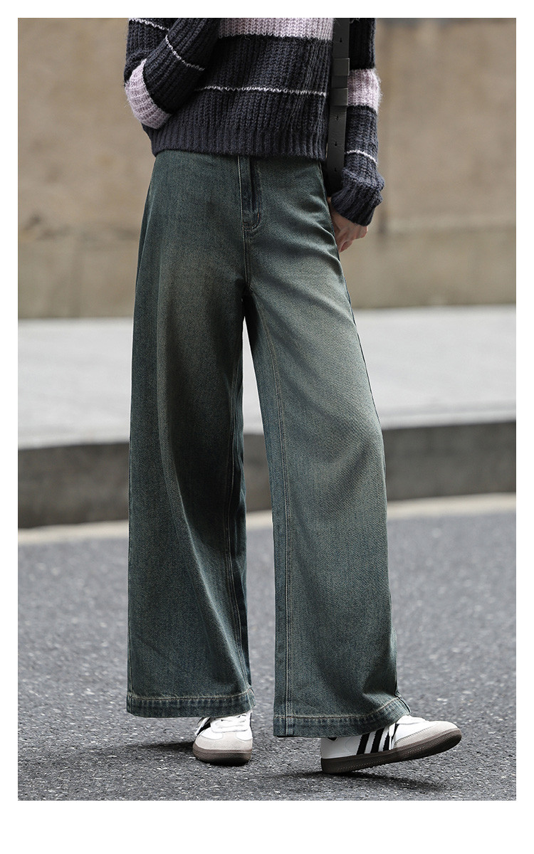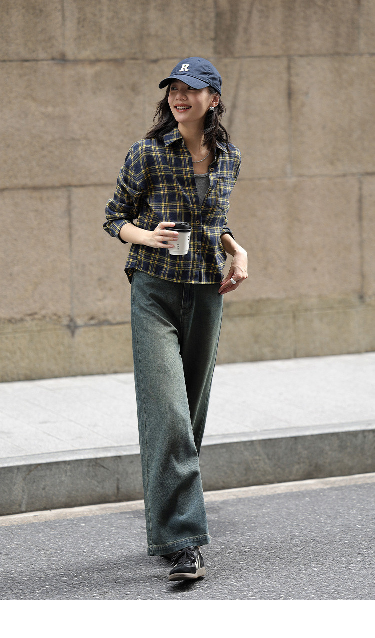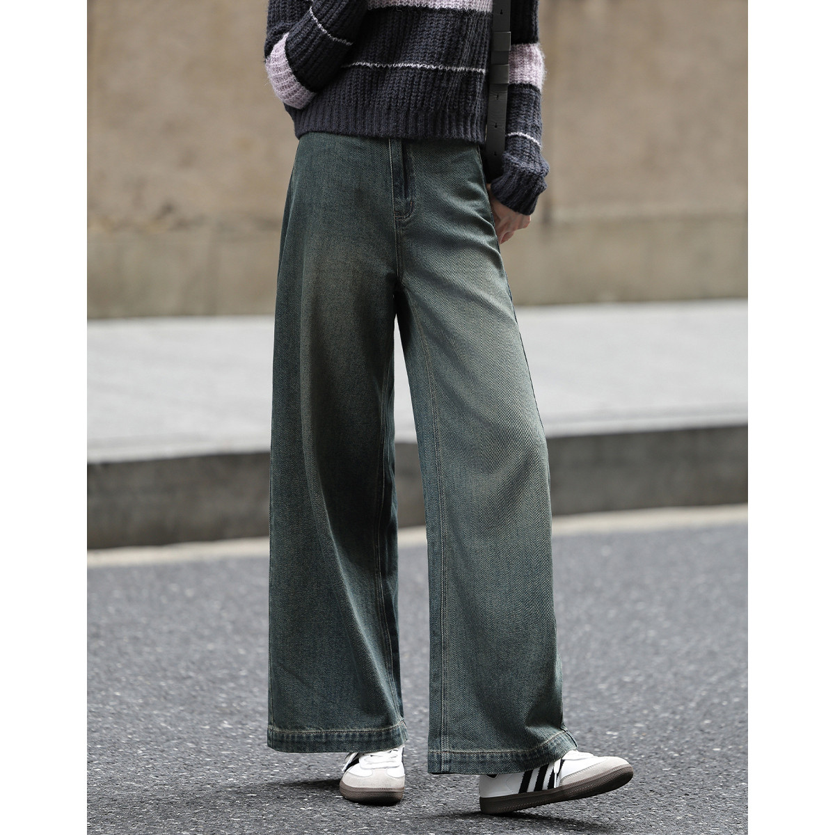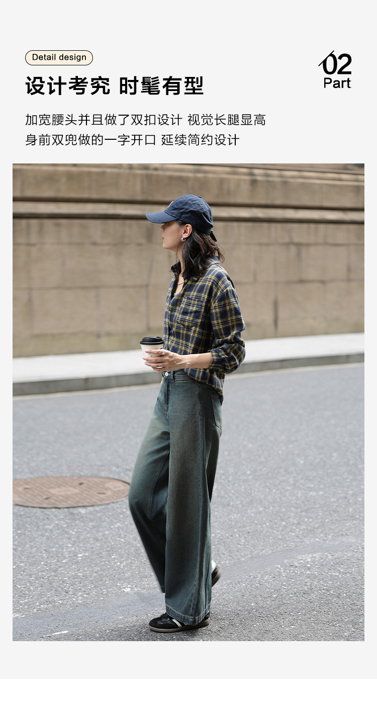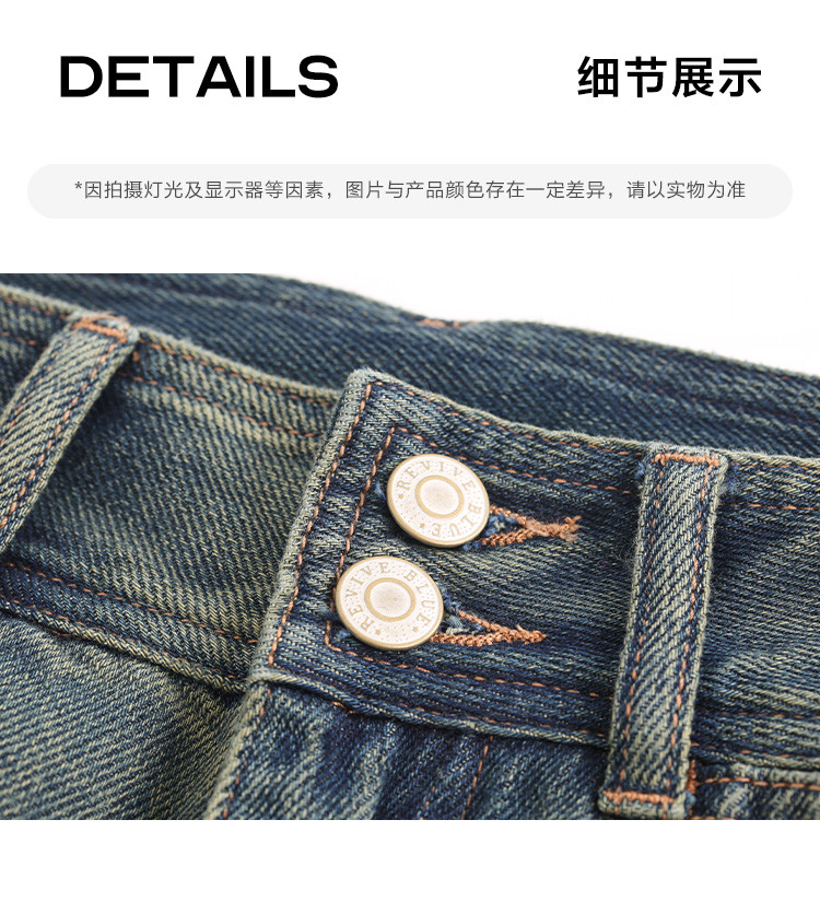 【复古蓝牛仔裤】2024冬款时髦水洗设计感双扣休闲牛仔裤女