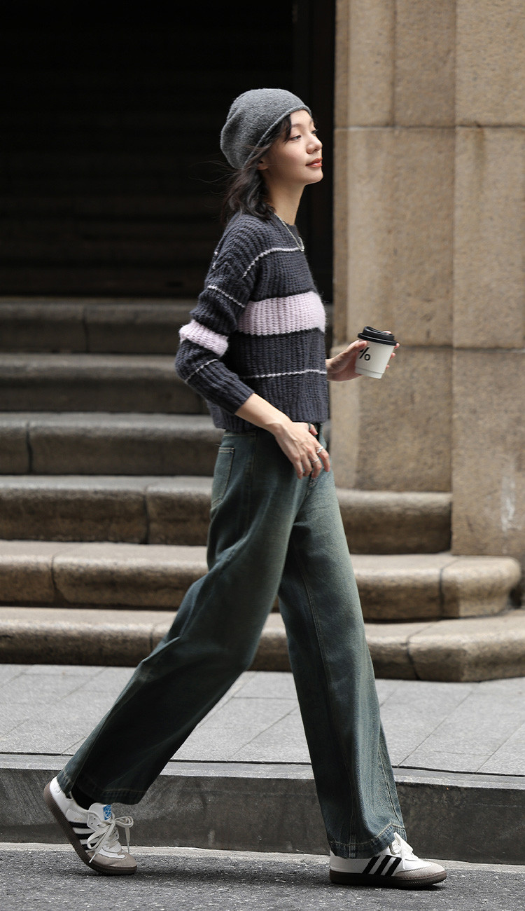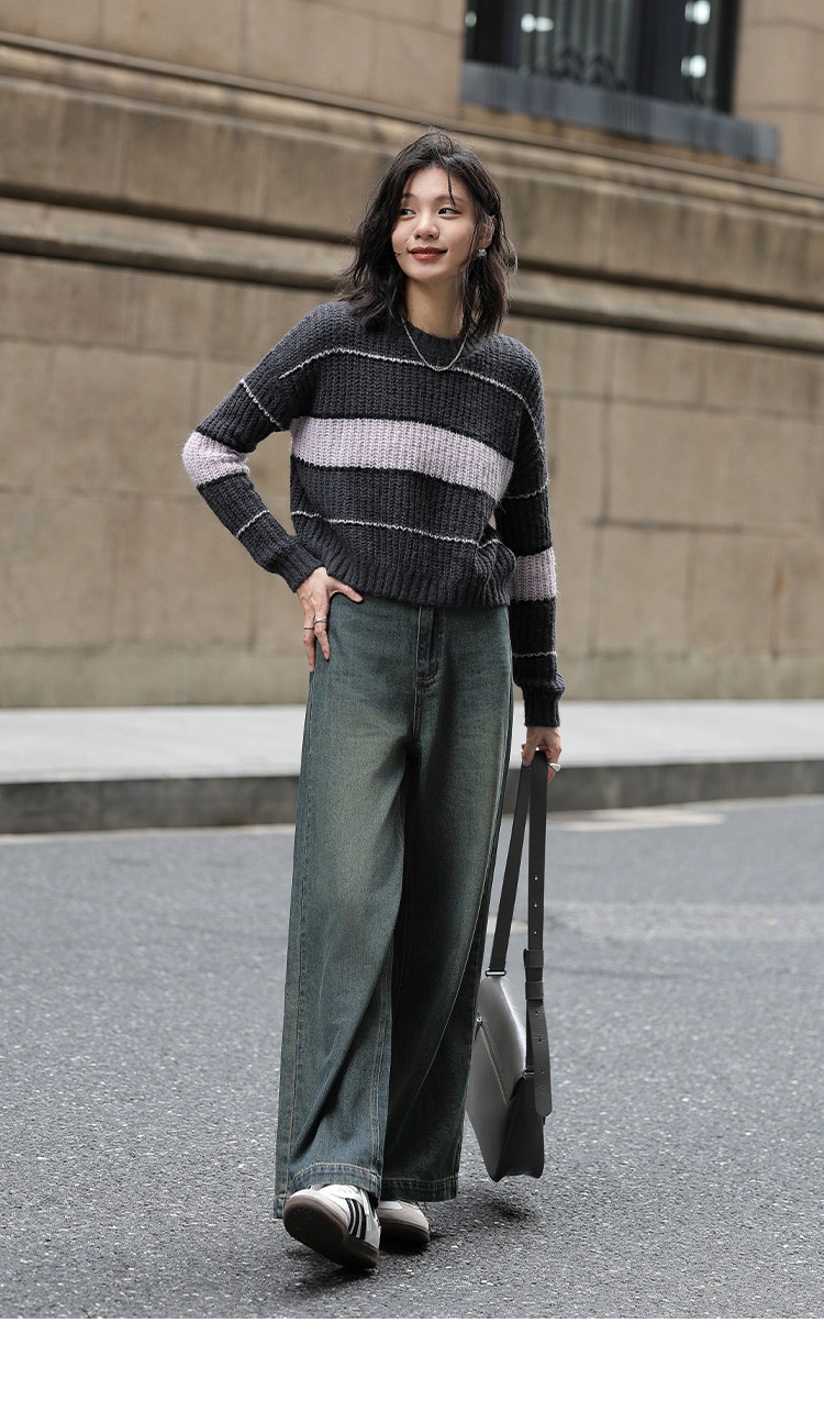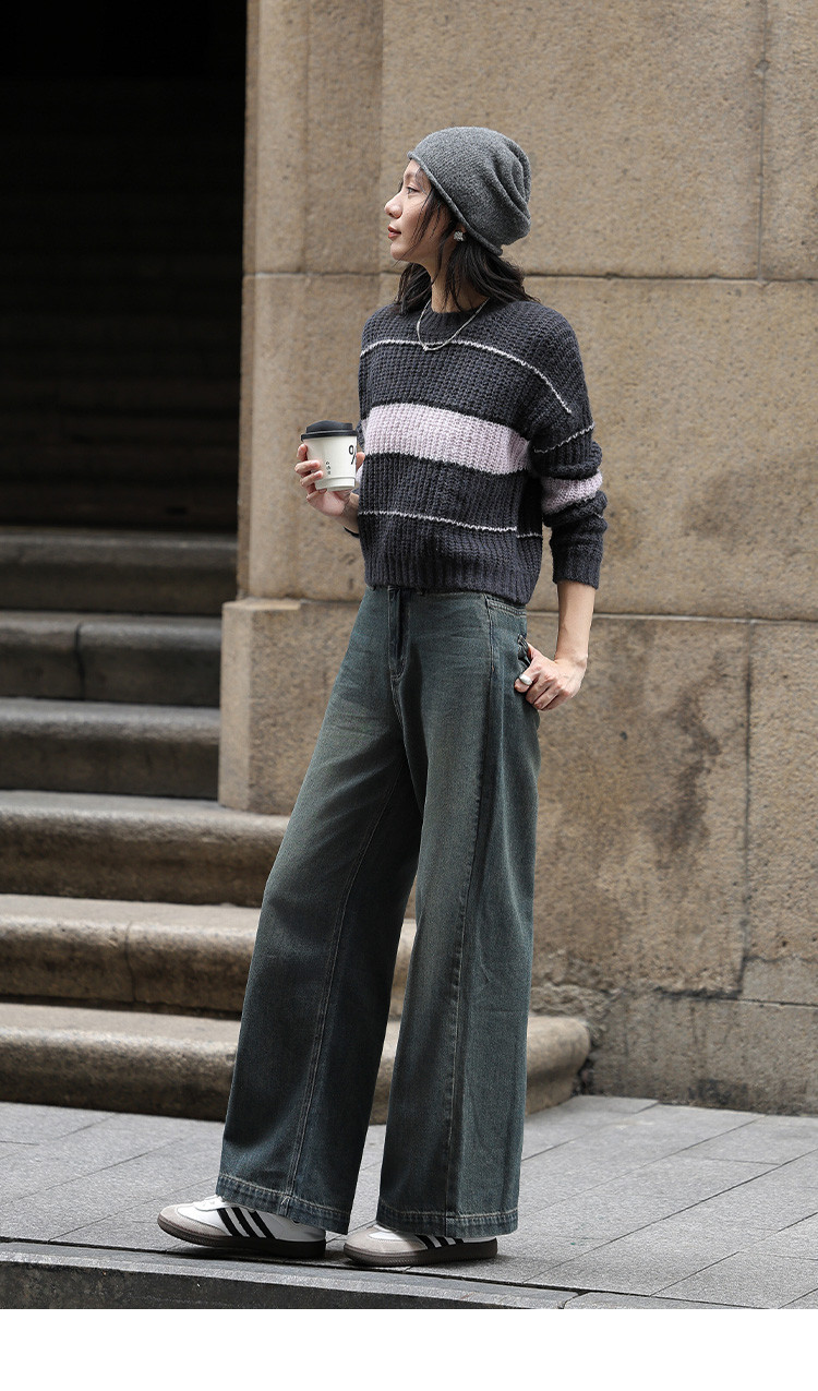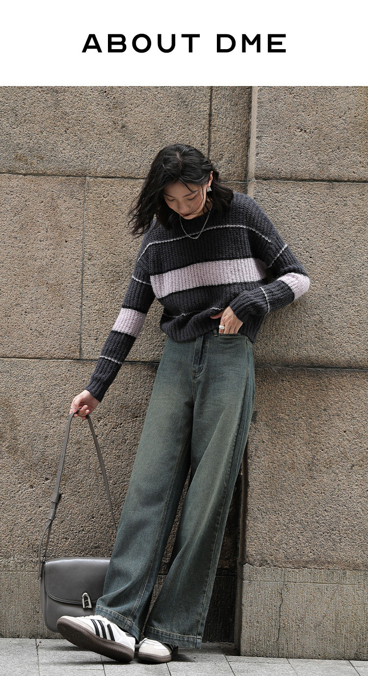 【复古蓝牛仔裤】2024冬款时髦水洗设计感双扣休闲牛仔裤女