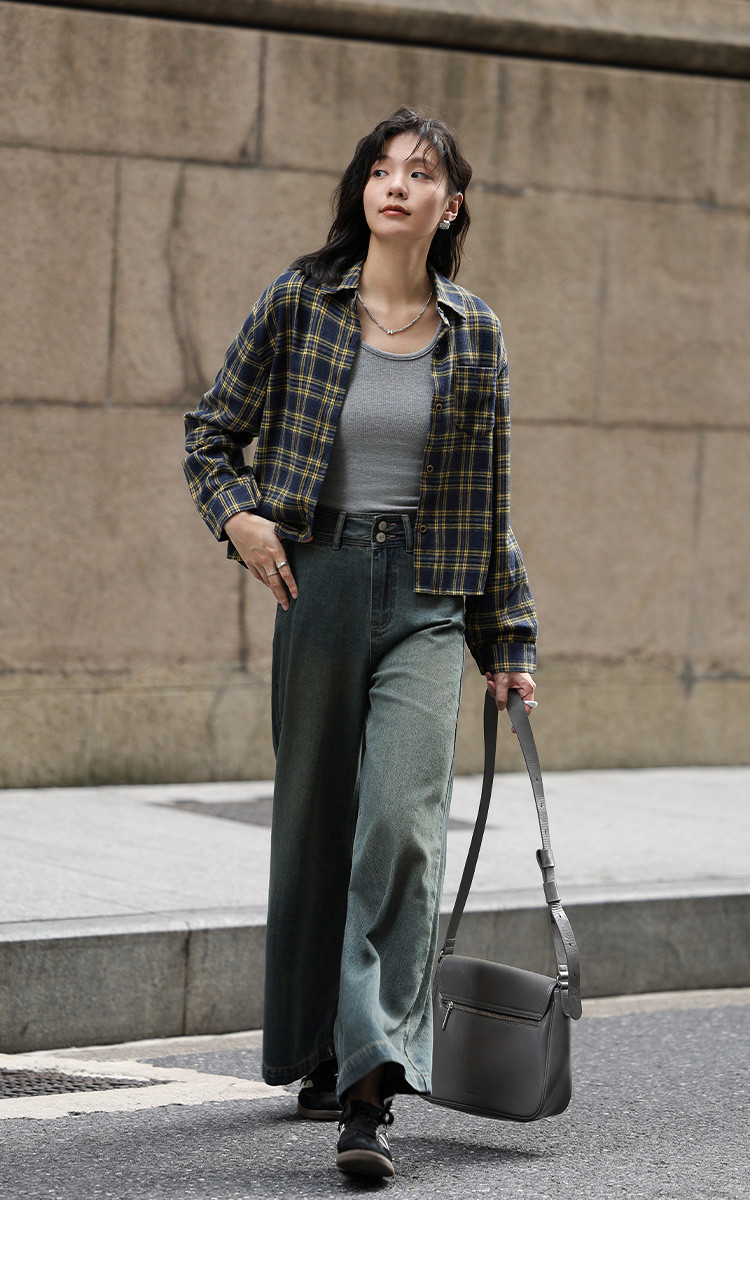 【知识分子穿搭】冬季简约风复古格纹衬衫可调节橡筋衬衣女装上衣