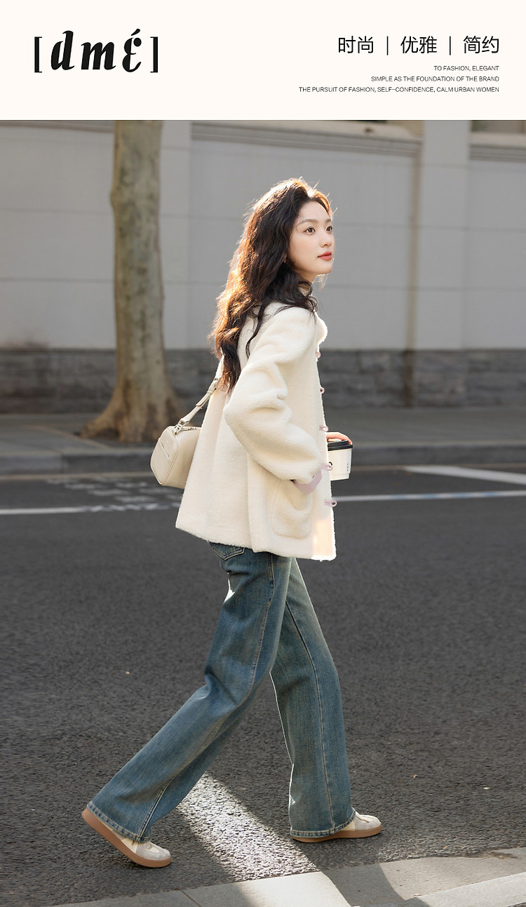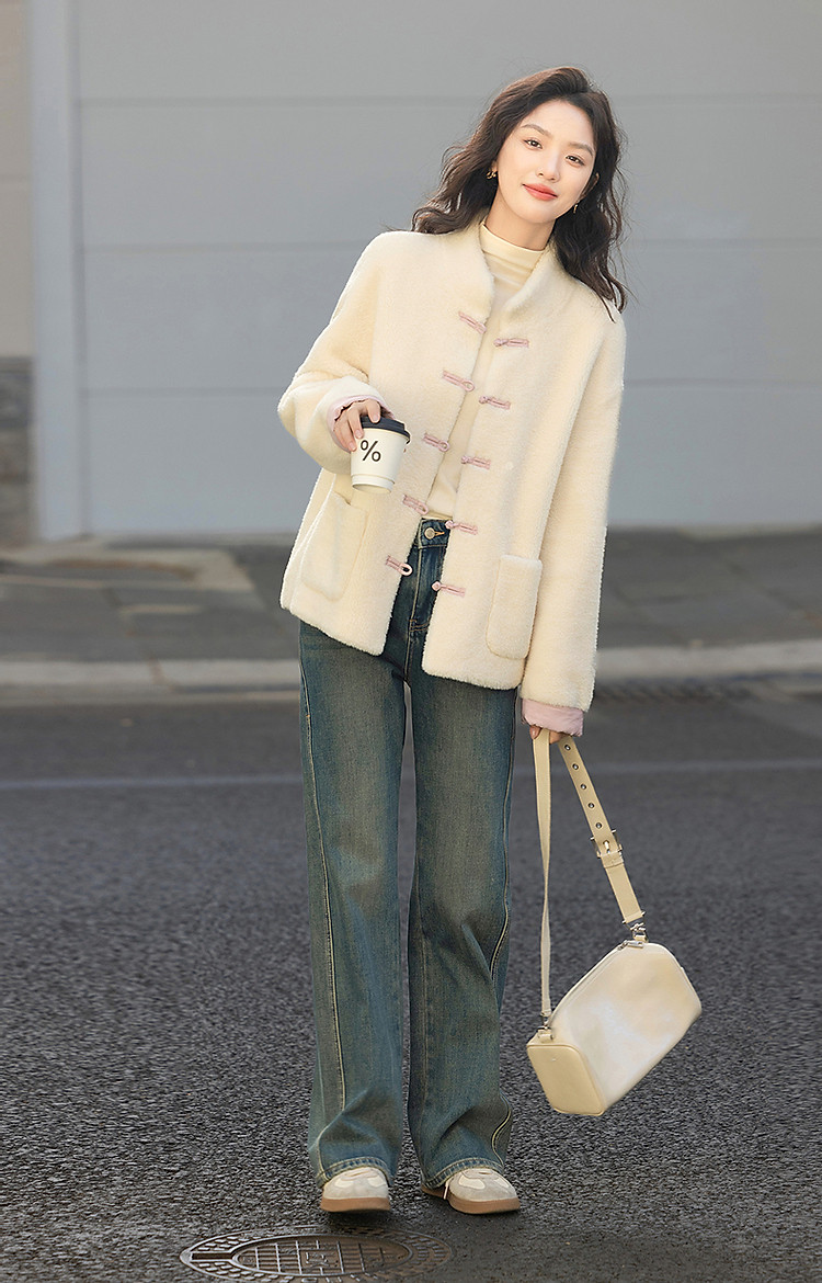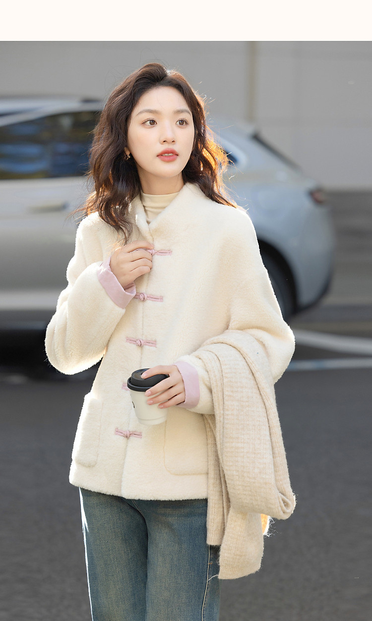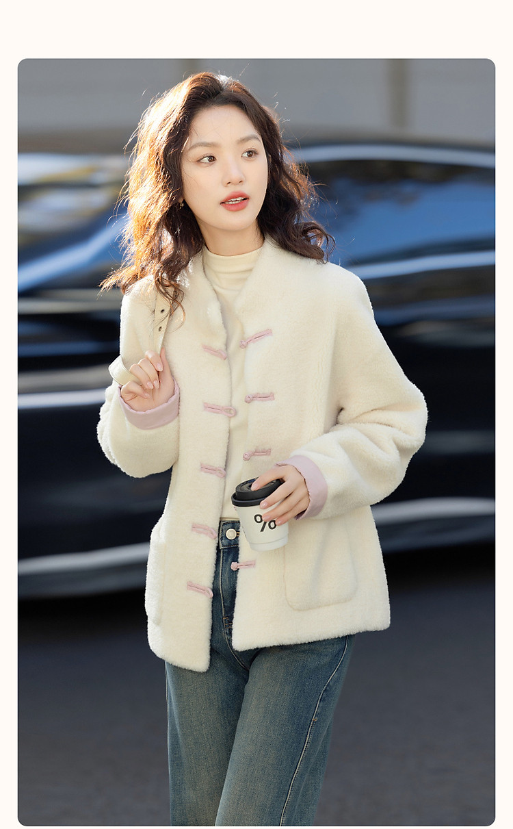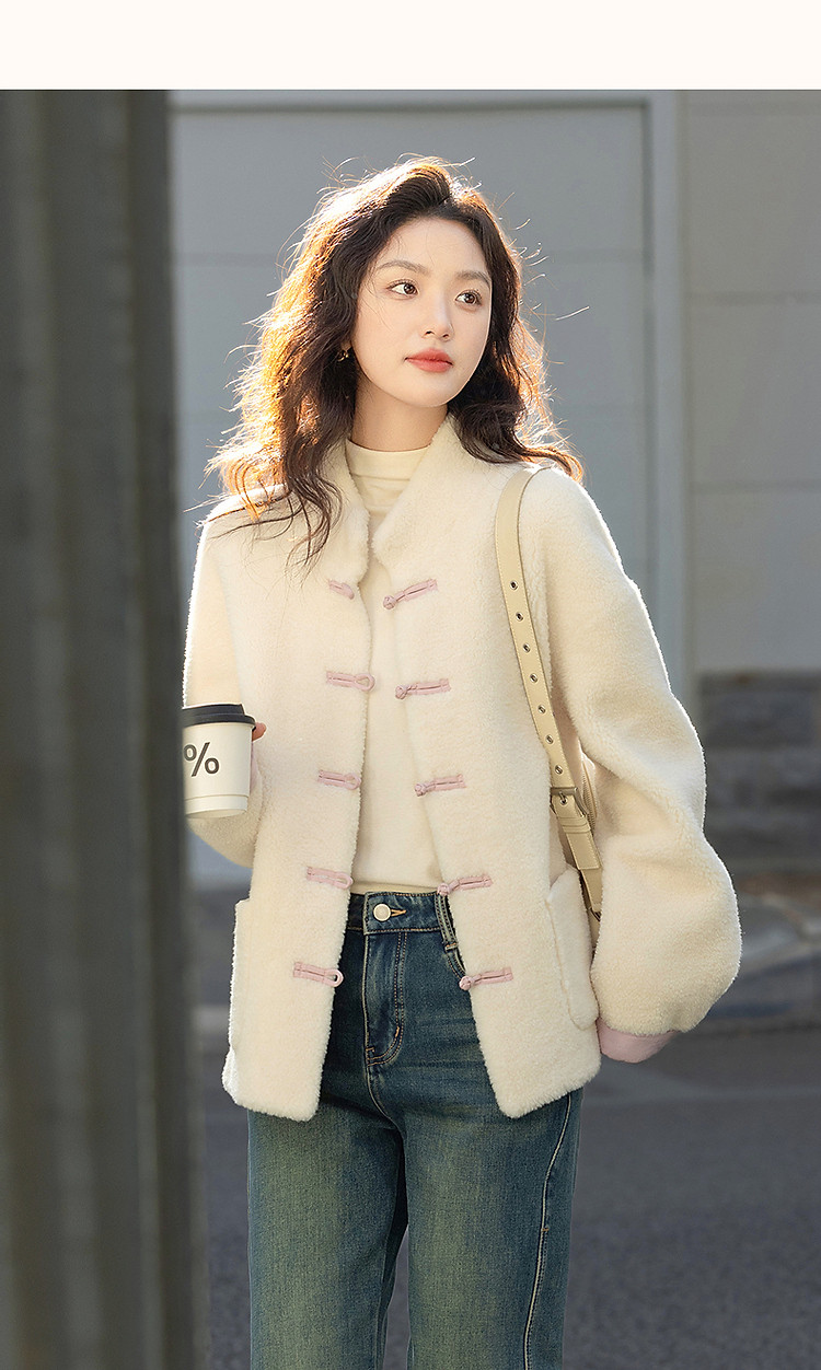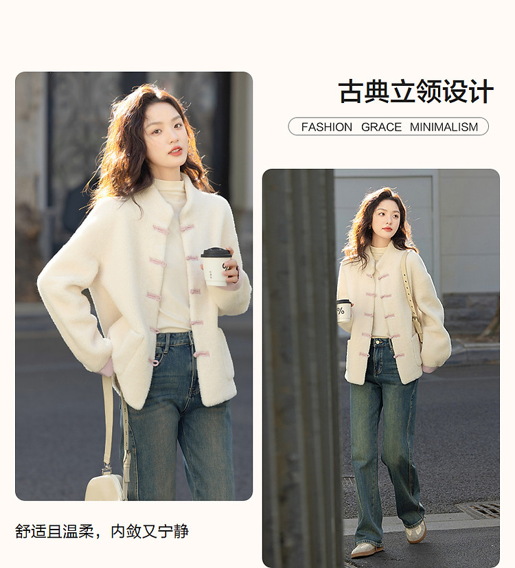 【住进阳光房】冬季国风新中式环保仿羊羔绒盘扣立领女式外套短款