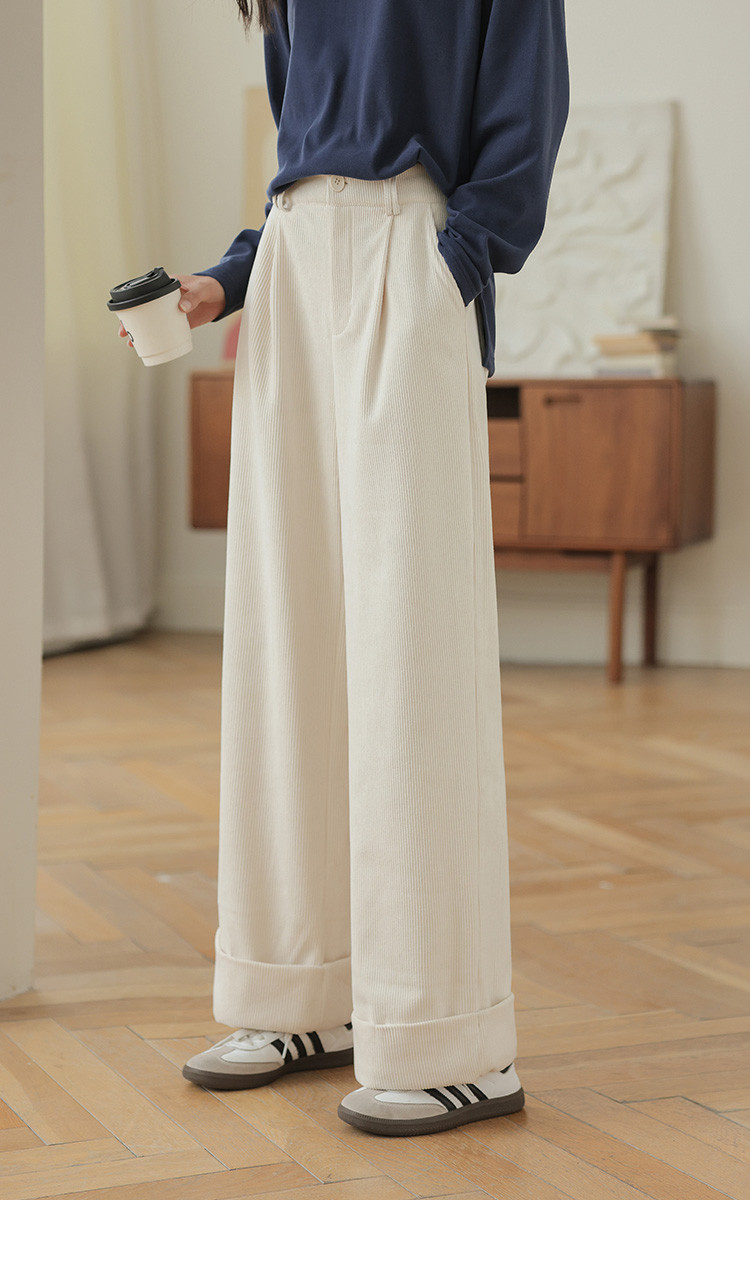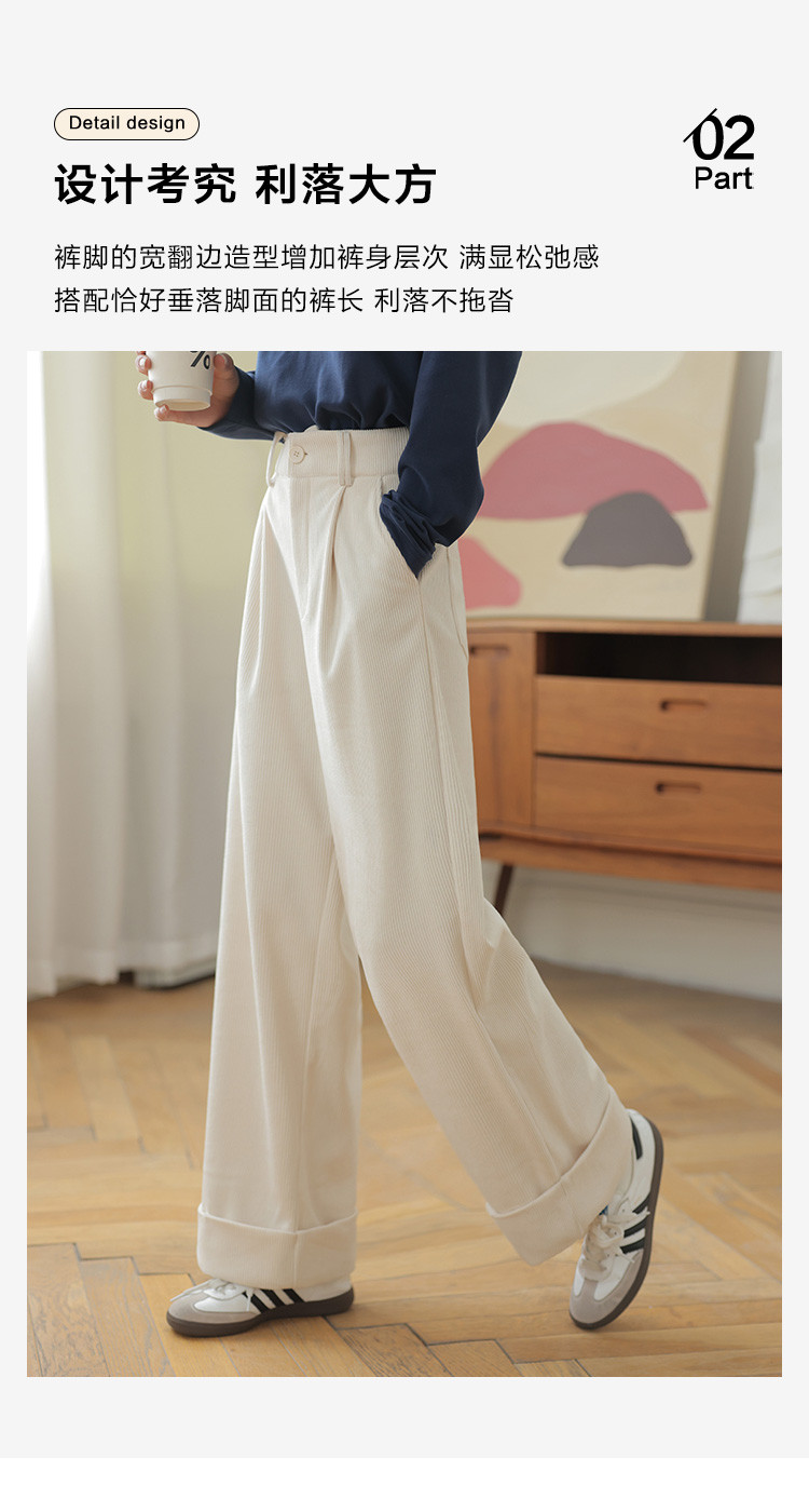 【个性裤脚翻边】2024气质压褶双裤袢设计感舒适休闲休闲裤女