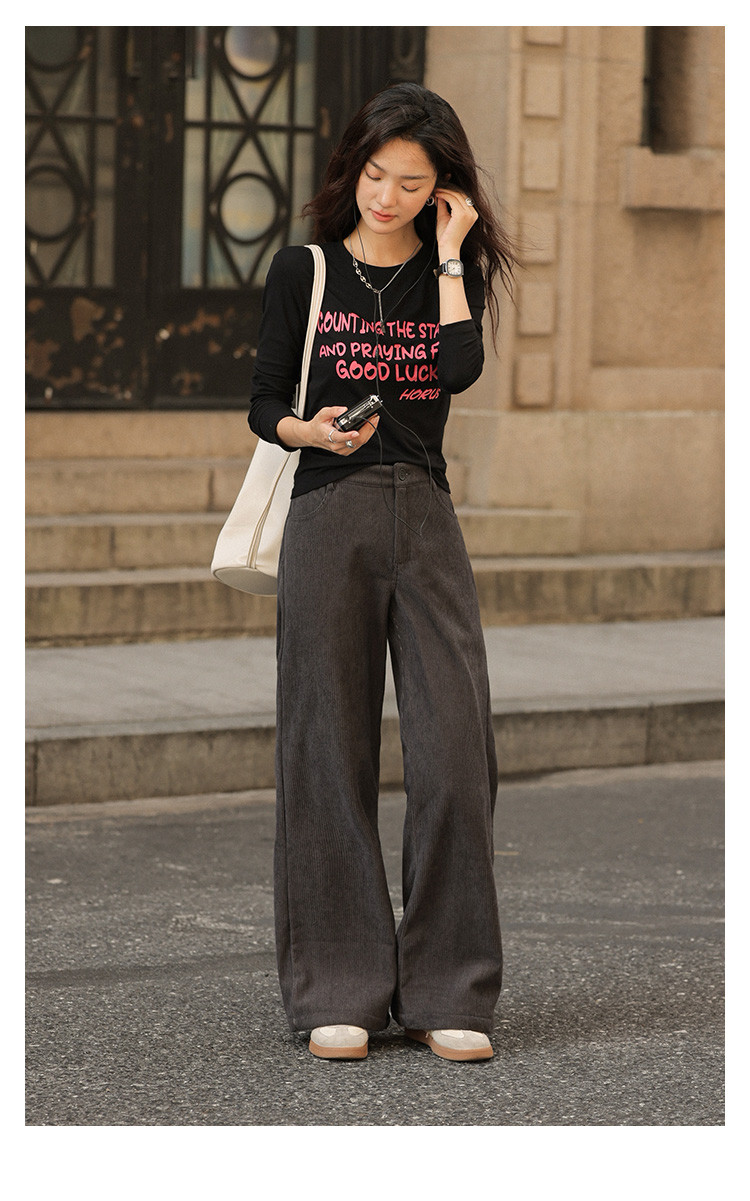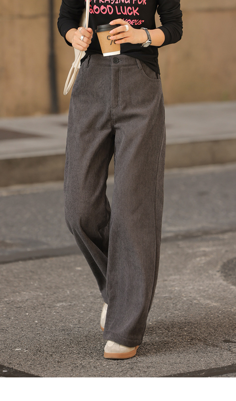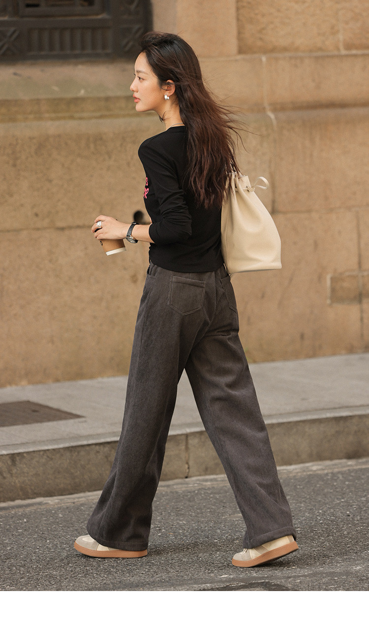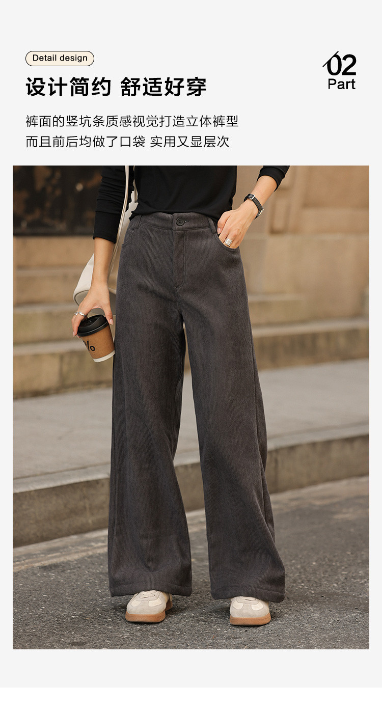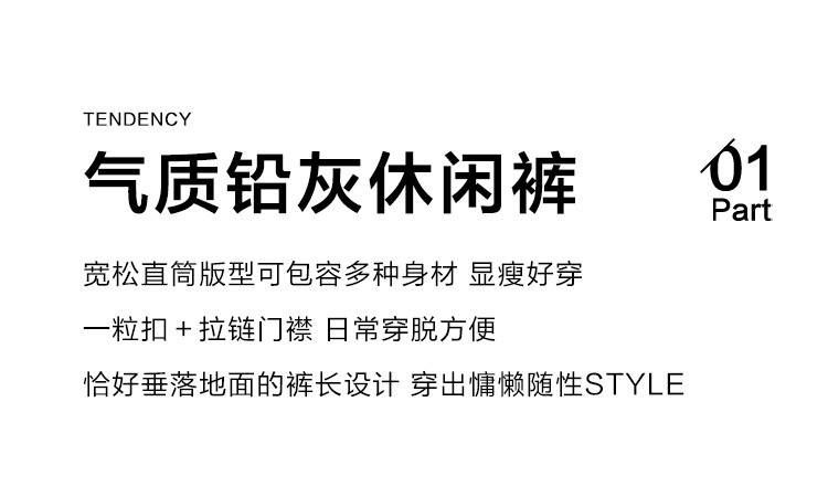 【简约铅灰休闲裤】2024冬款百搭立体竖坑条宽松慵懒松弛长裤