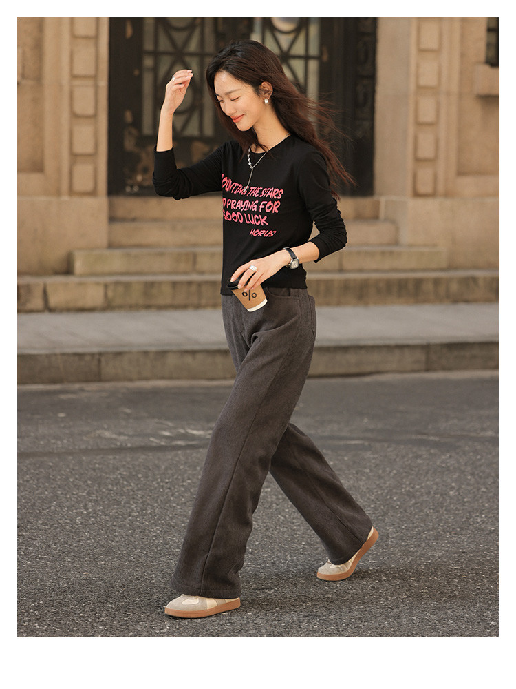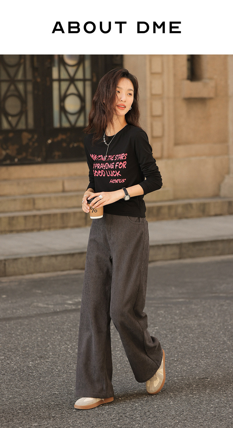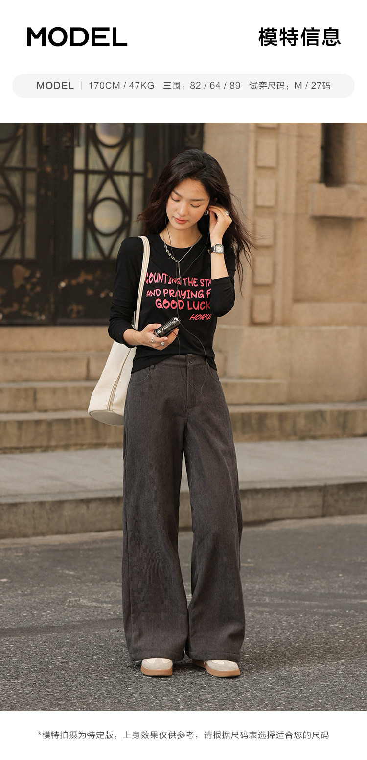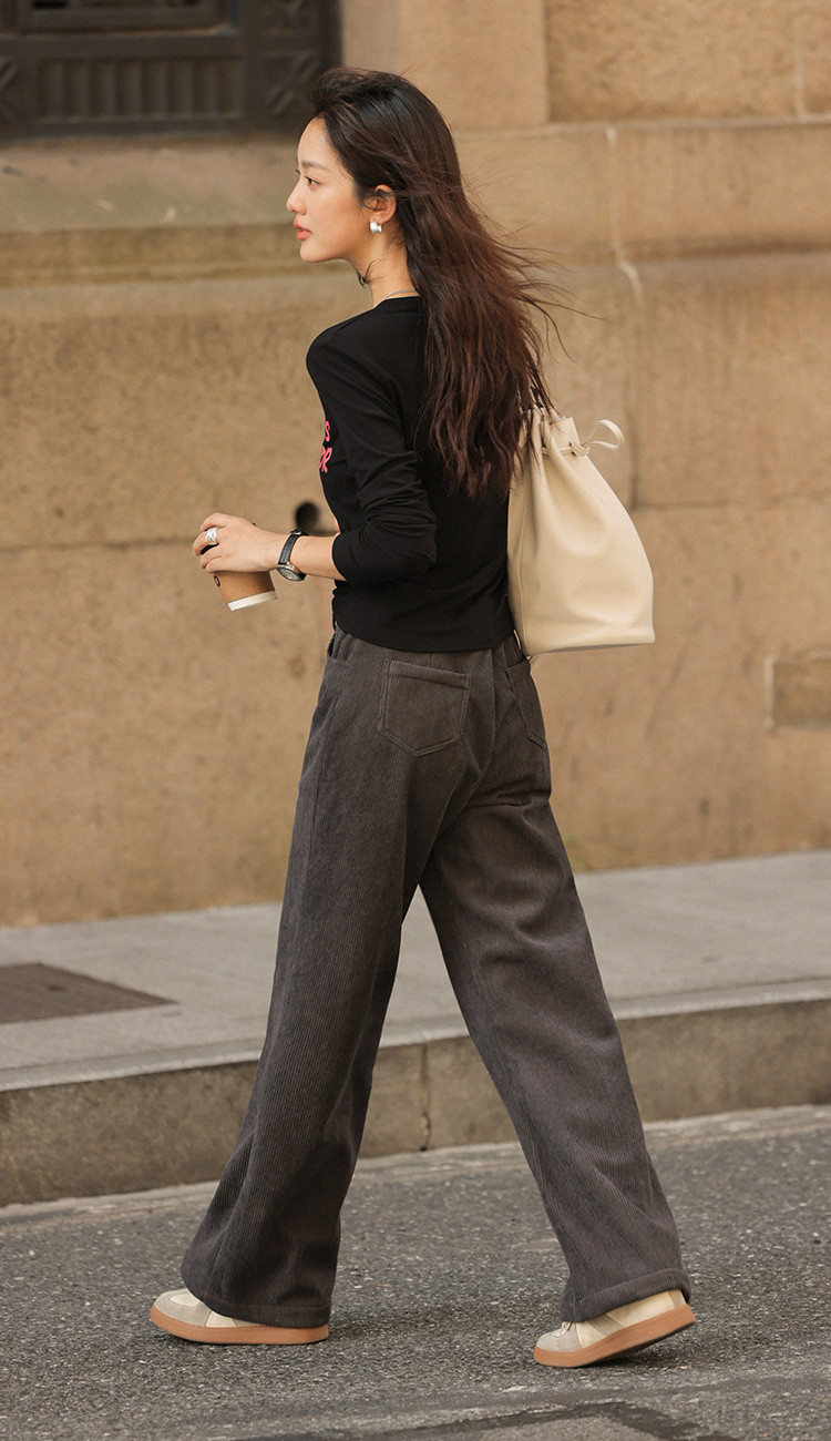 【简约铅灰休闲裤】2024冬款百搭立体竖坑条宽松慵懒松弛长裤
