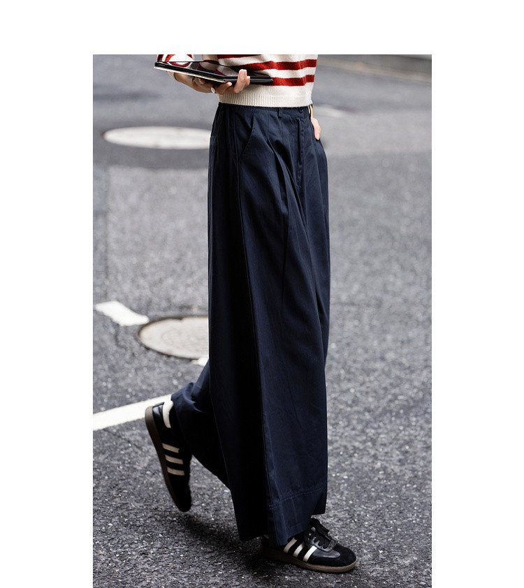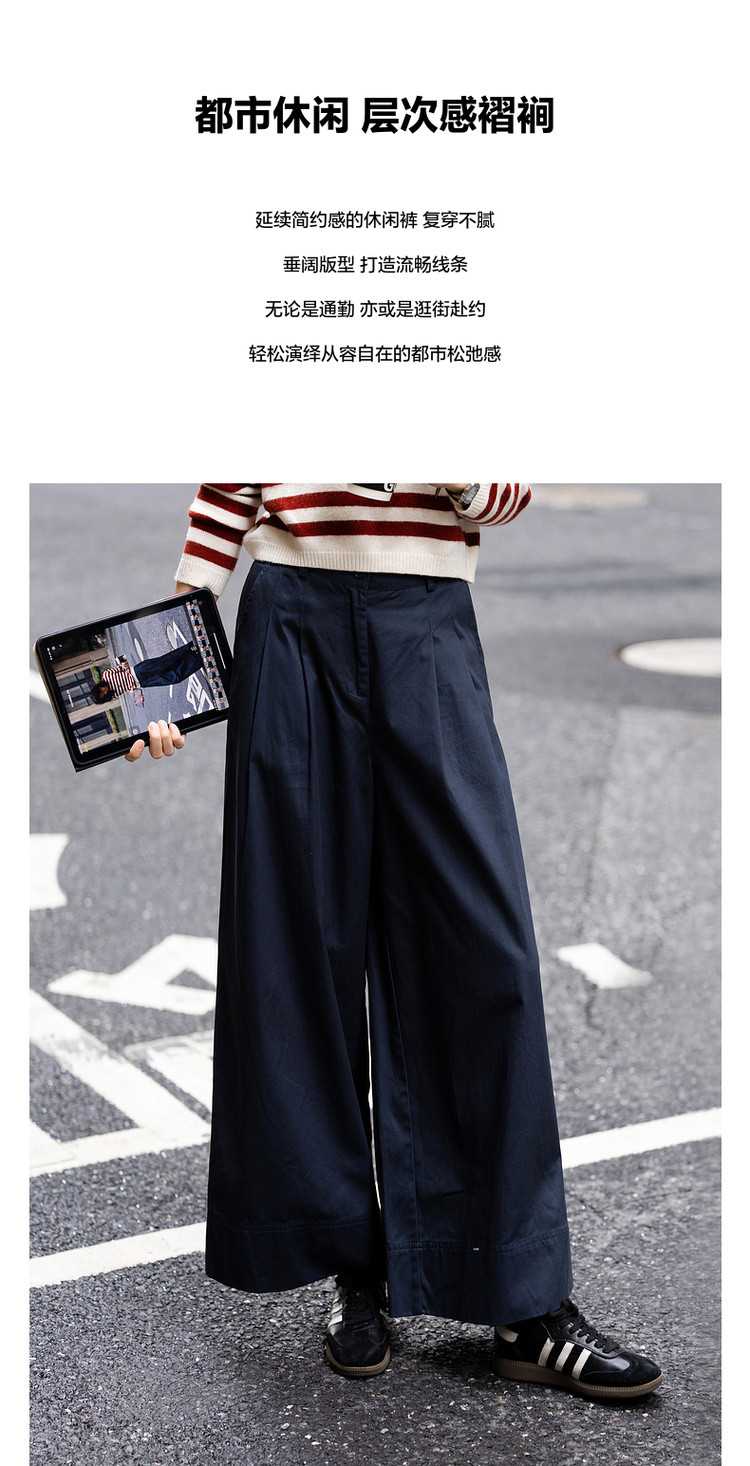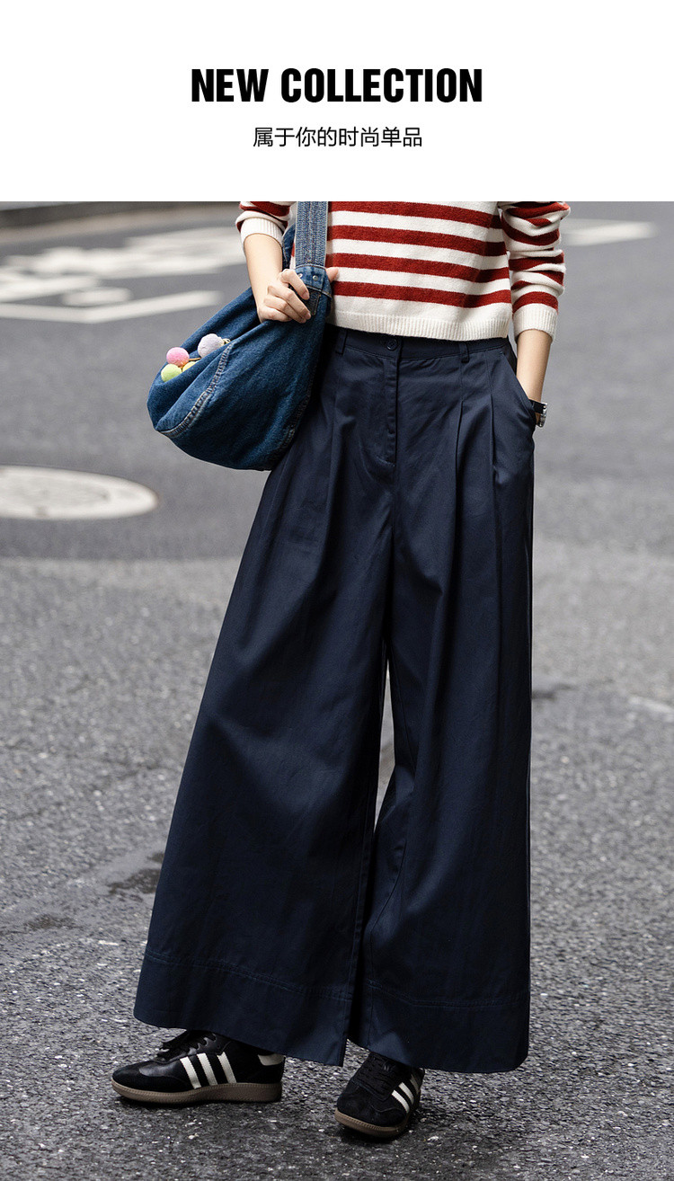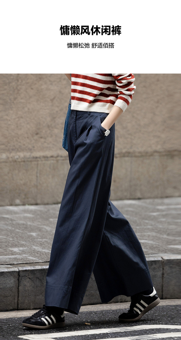 【纯棉舒适区】春季日系褶裥腰一粒扣A字阔腿裤遮肉女式休闲裤