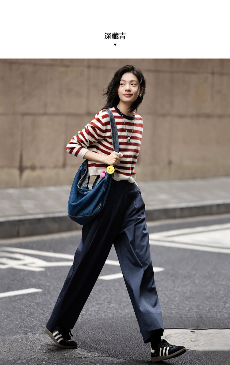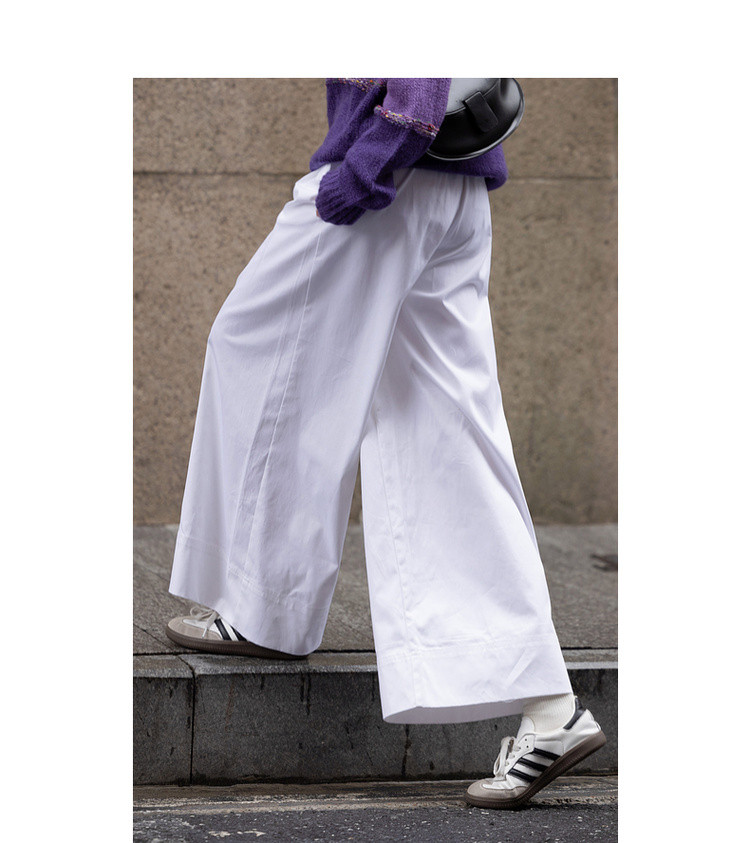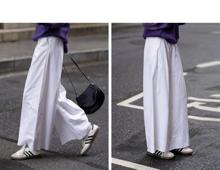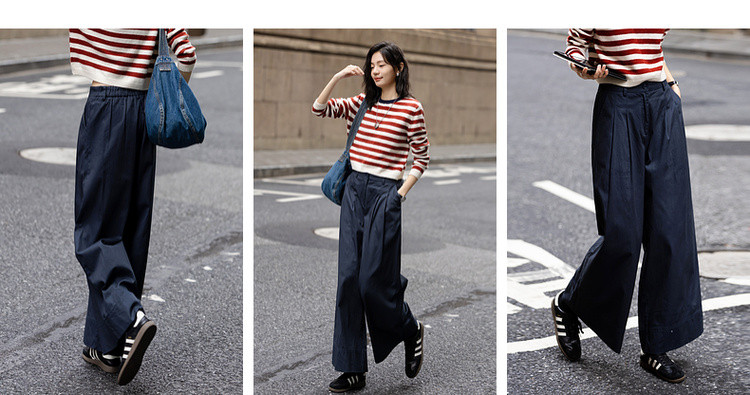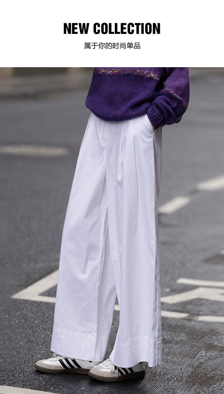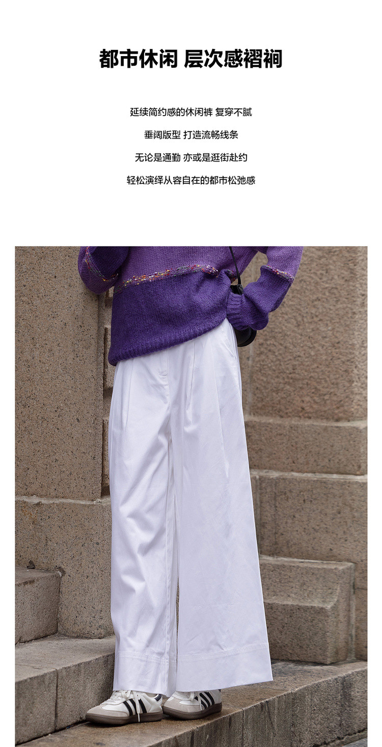 【纯棉舒适区】春季日系褶裥腰一粒扣A字阔腿裤遮肉女式休闲裤