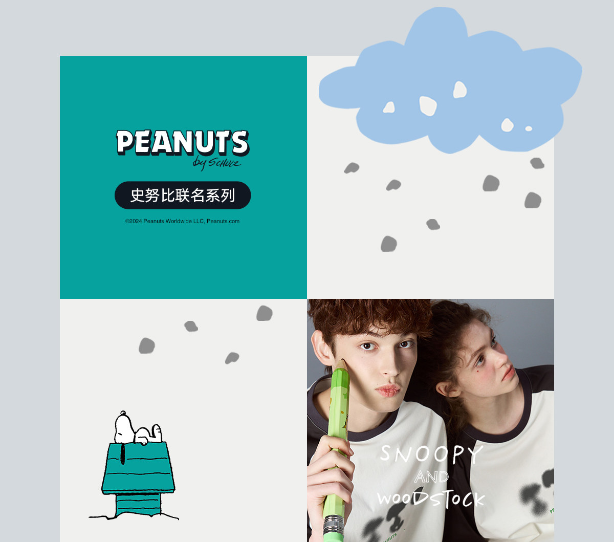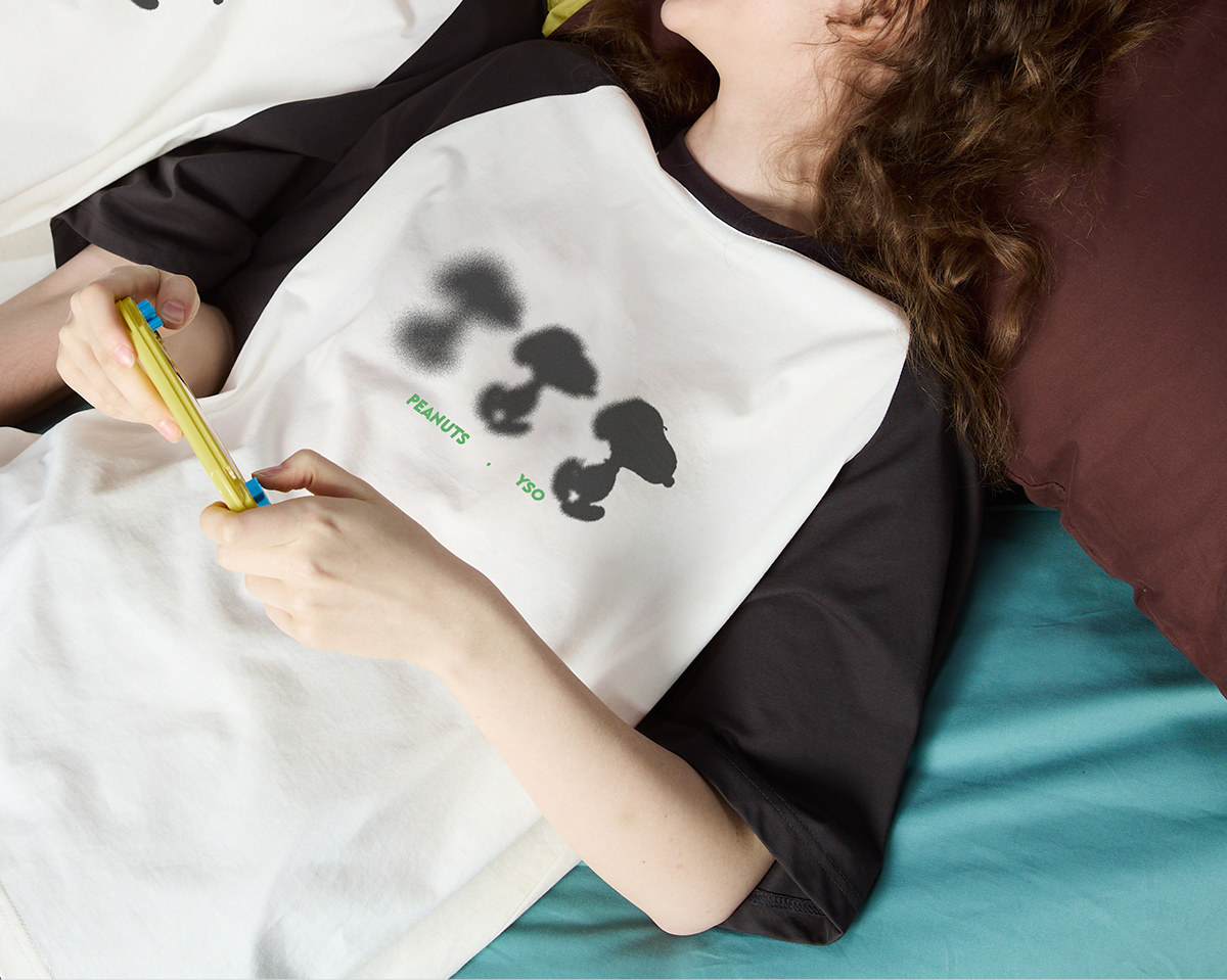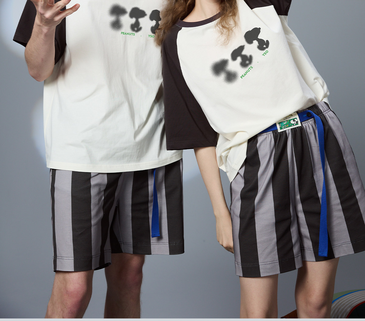 yso【史努比系列】情侣睡衣套装女短袖短裤纯棉男家居服可外穿B