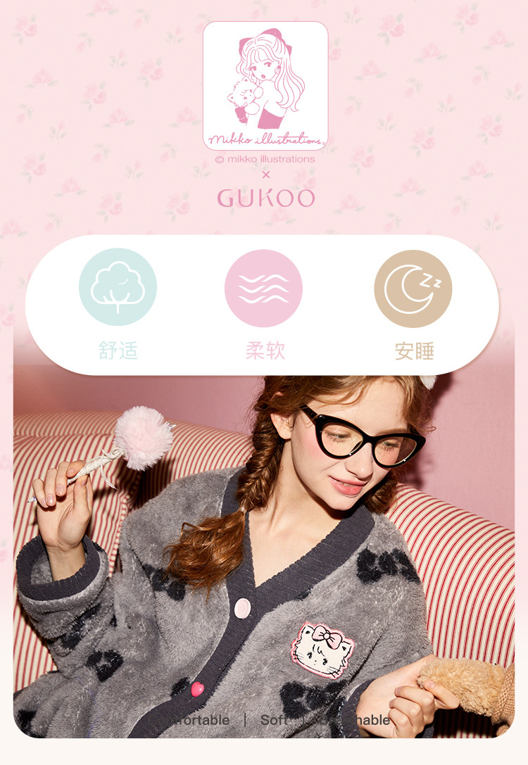 Gukoo/果壳【MIKKO系列】睡衣女秋冬加厚款北极绒高级感家居服可外穿
