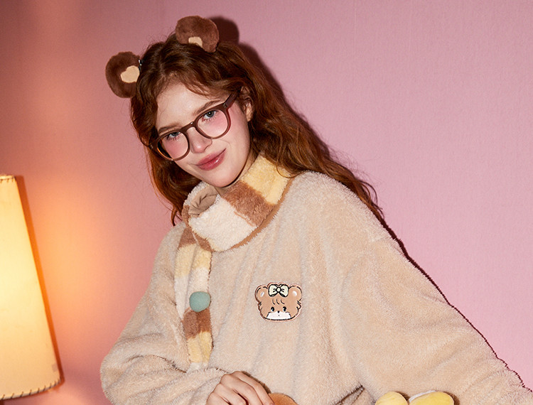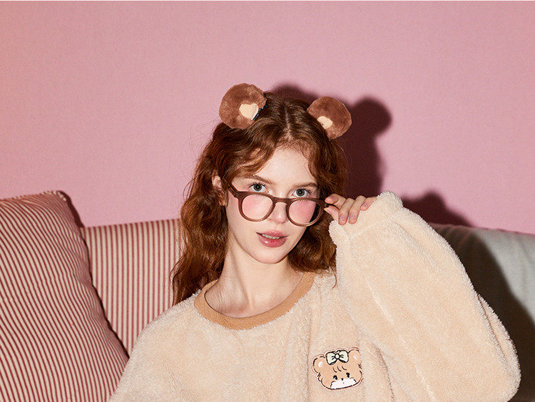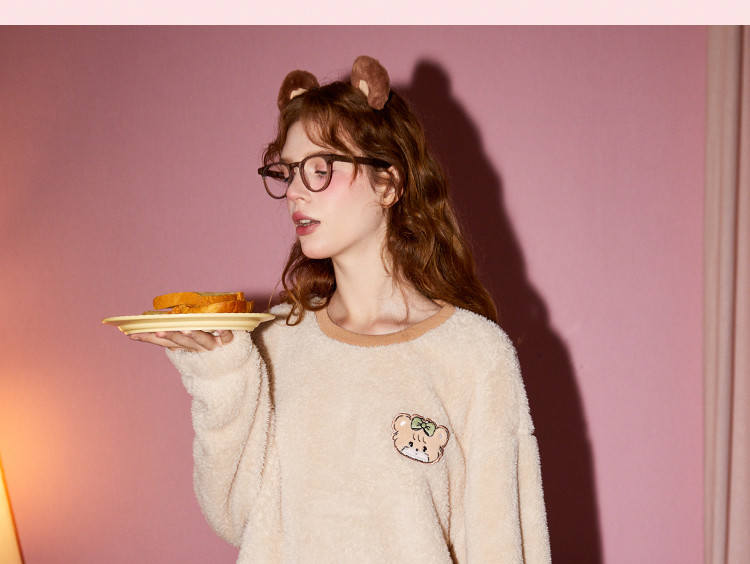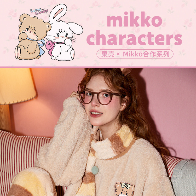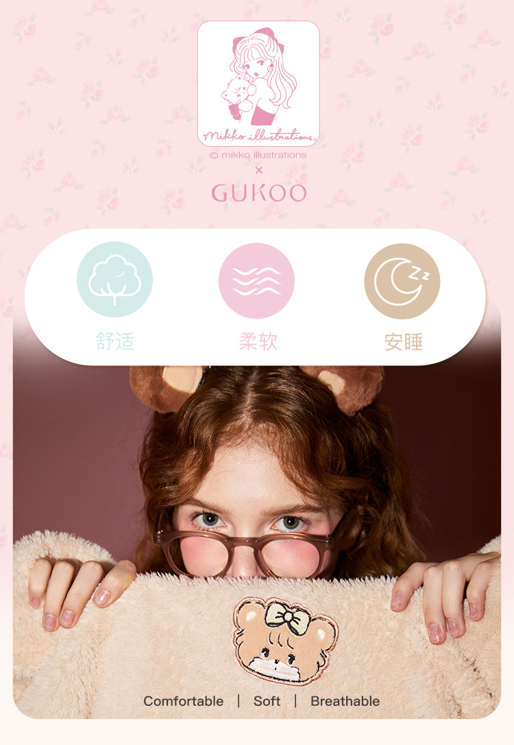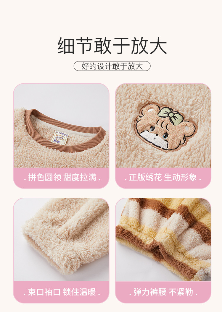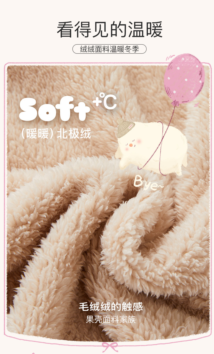 Gukoo/果壳【MIKKO系列】睡衣女秋冬加厚北极绒少女圆领可外家居服套装