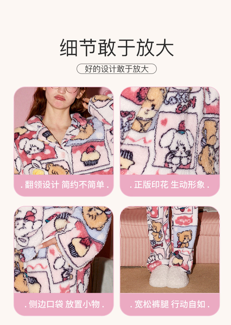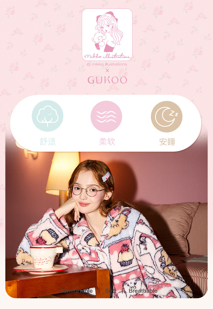 Gukoo/果壳【MIKKO联名】睡衣女秋冬加厚北极绒卡通女士家居服可外穿
