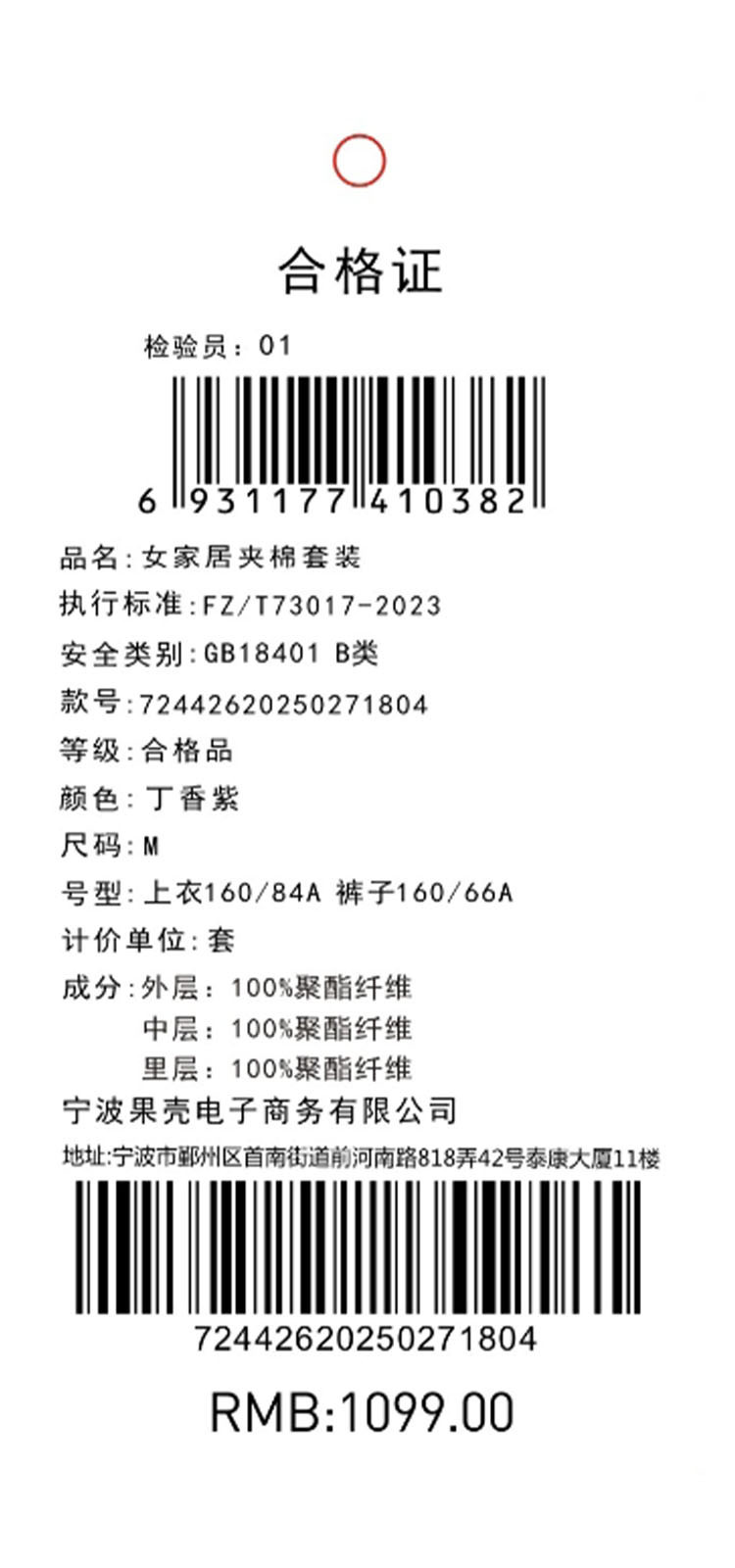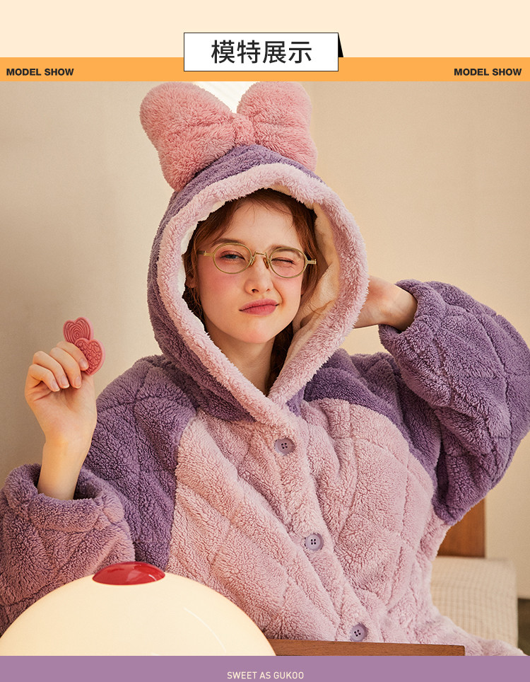 Gukoo/果壳睡袍女冬款加厚女士睡衣粉色家居服女夹棉睡袍睡衣D