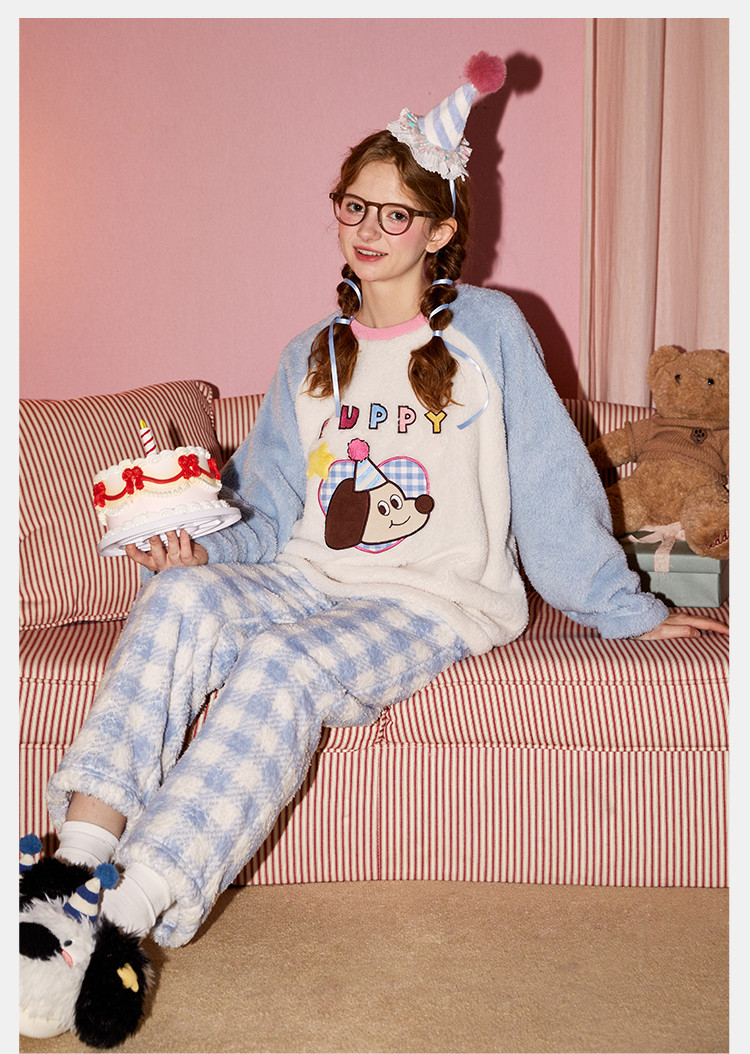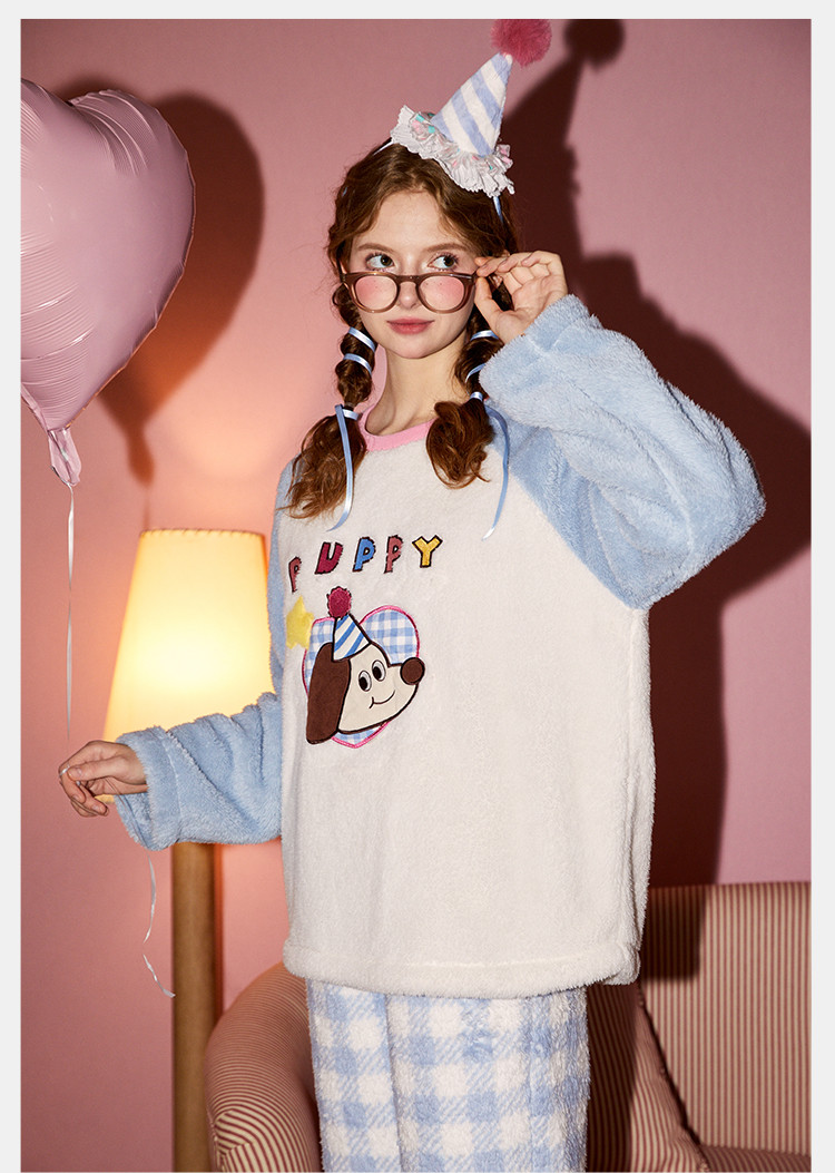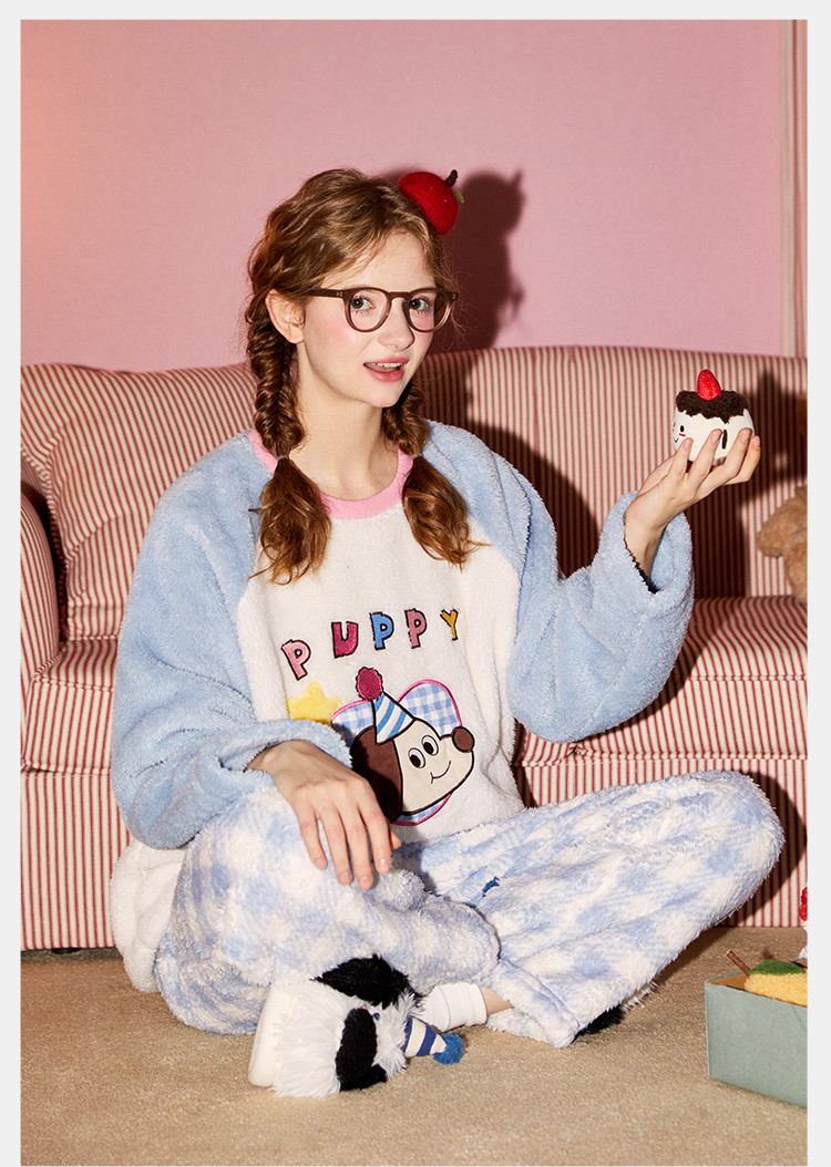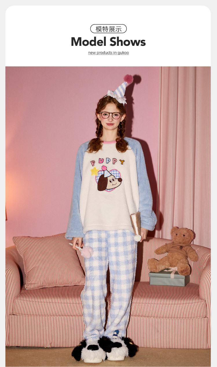 Gukoo/果壳【原创IP】睡衣女秋冬加厚北极绒派对小狗系列家居服套装可外穿