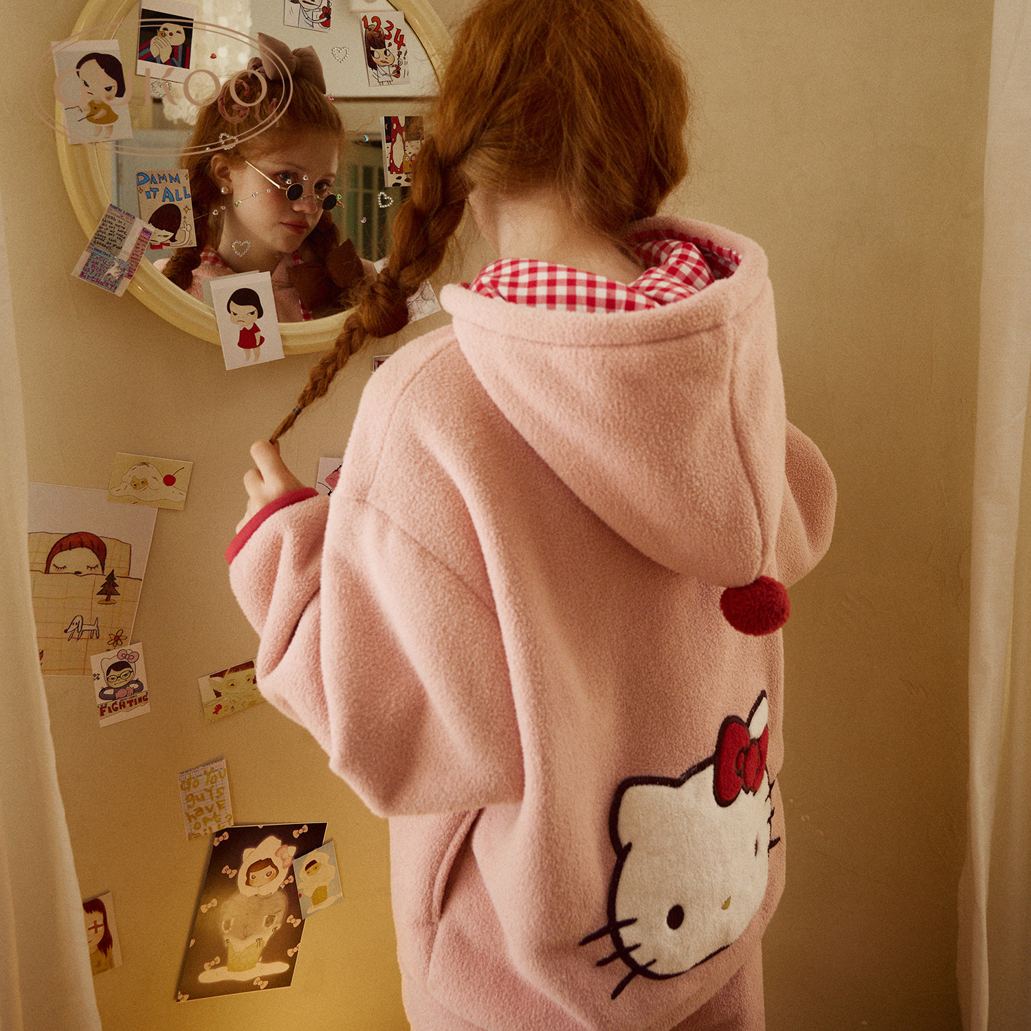 Gukoo/果壳睡衣女冬季hellokitty联名新款甜美保暖女家居服套装D