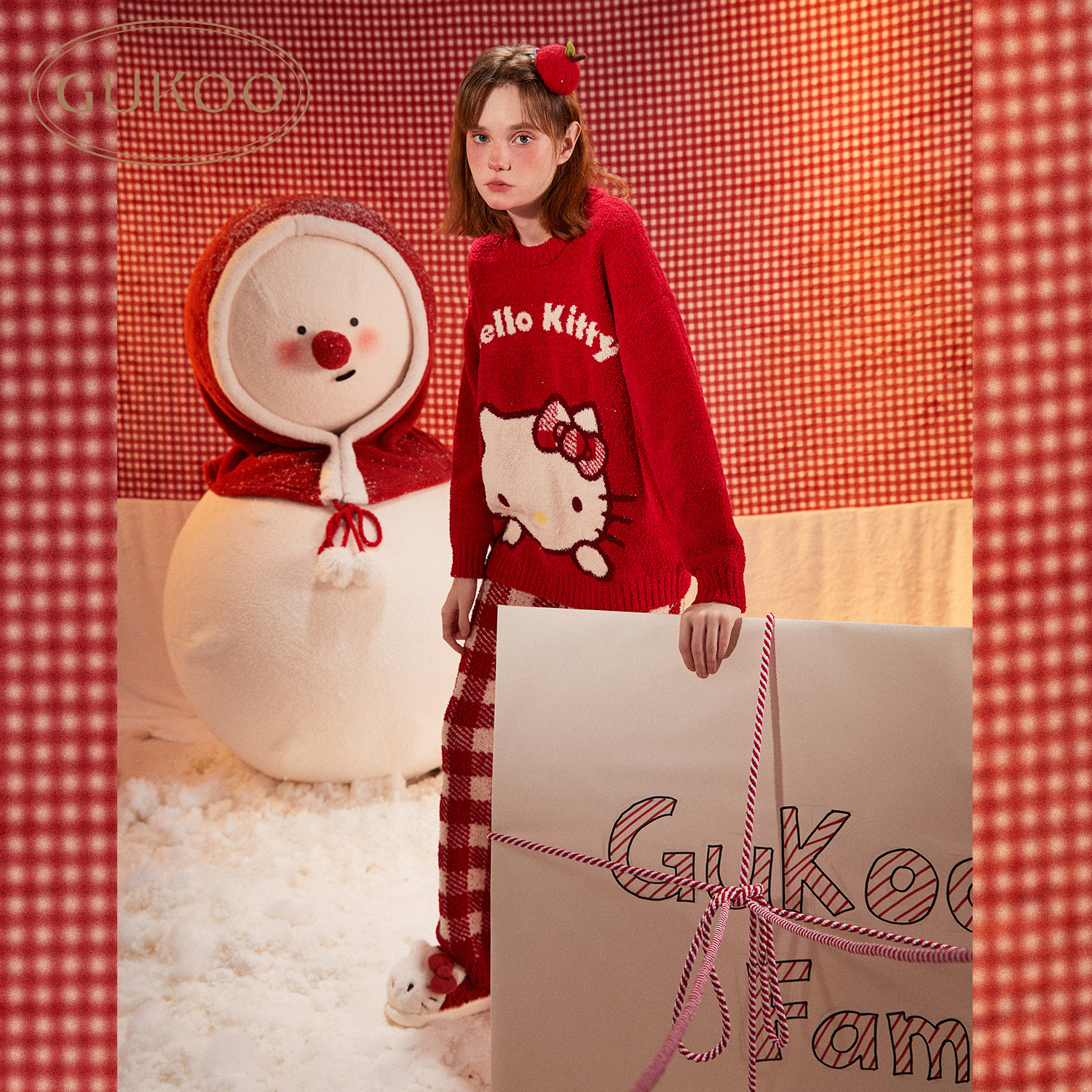 Gukoo果壳情侣睡袍冬季毛绒保暖新款迪士尼小豆联名女家居服睡袍D