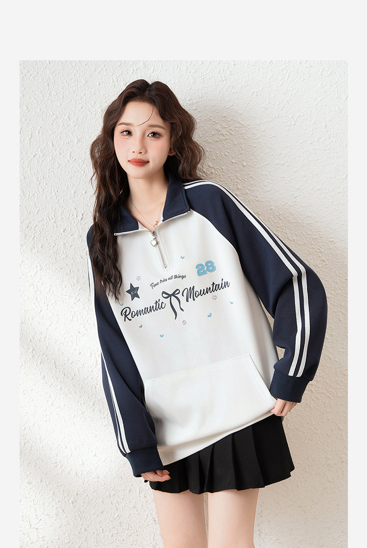 2024秋季女立领插肩袖撞色前胸字母卫衣学院风减龄百搭休闲