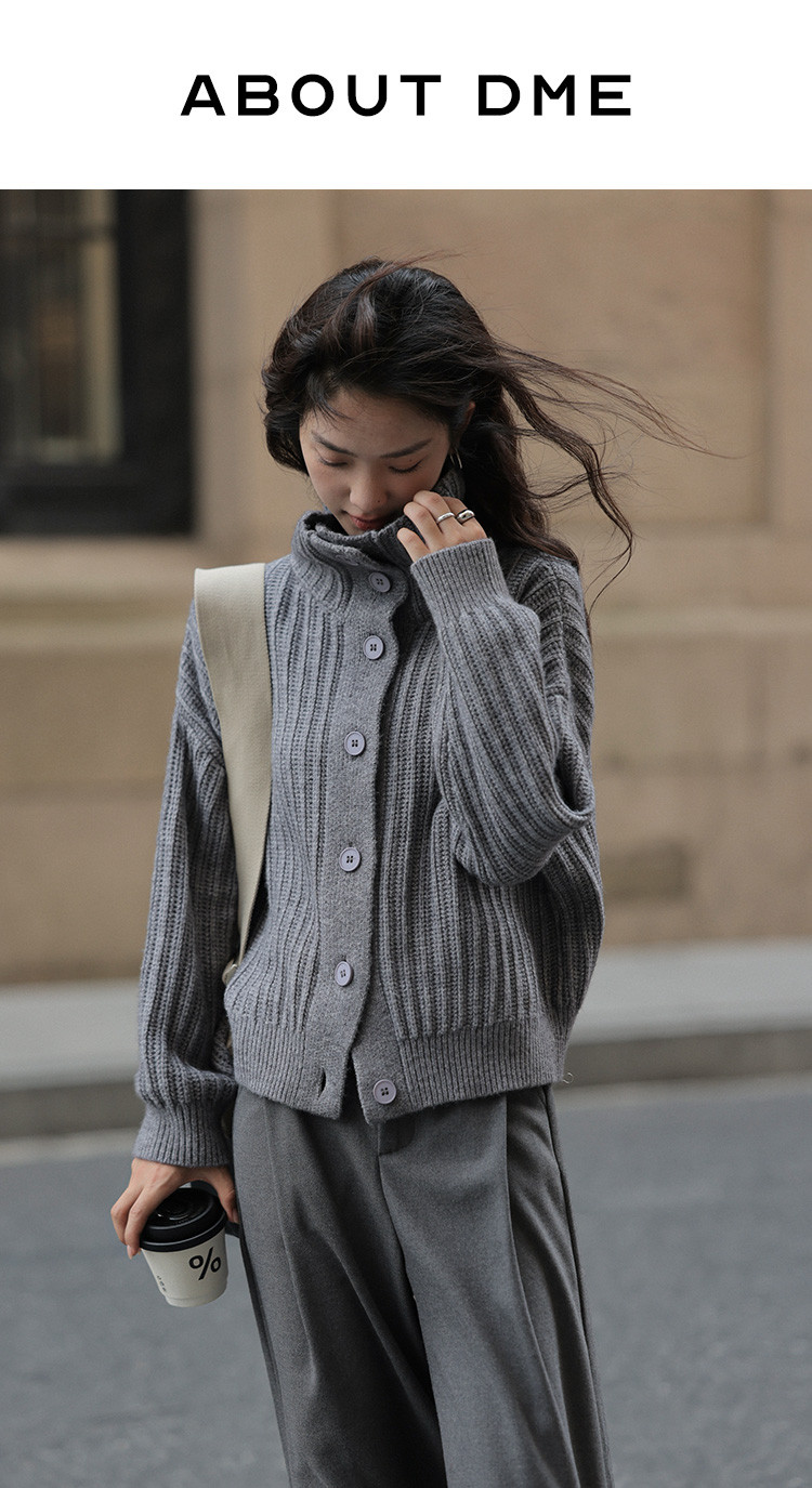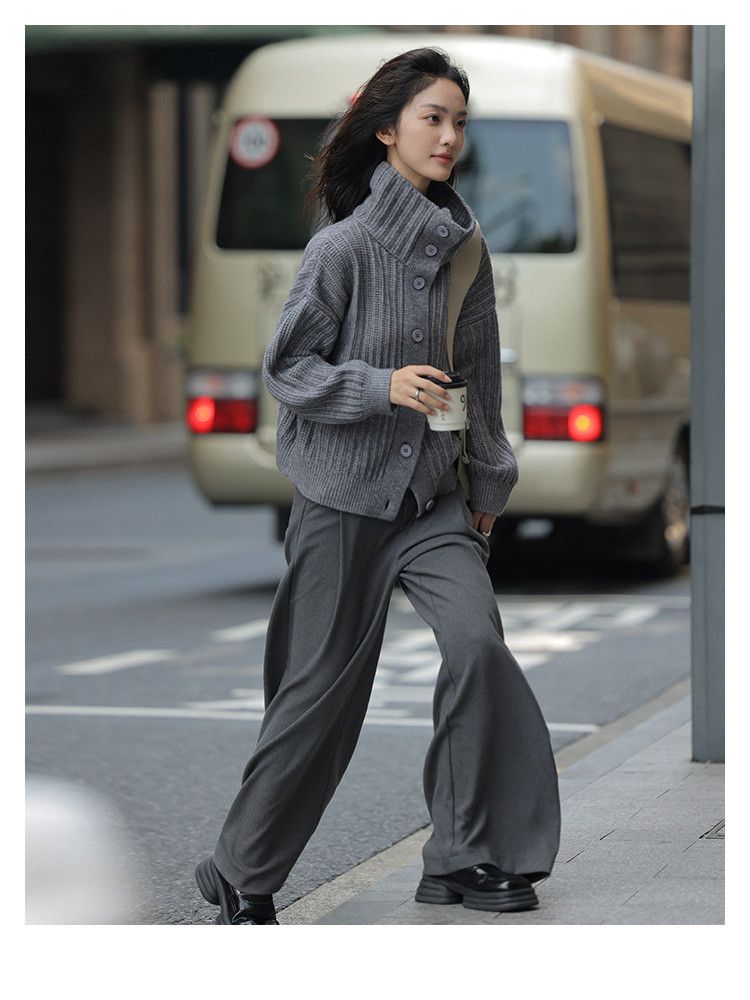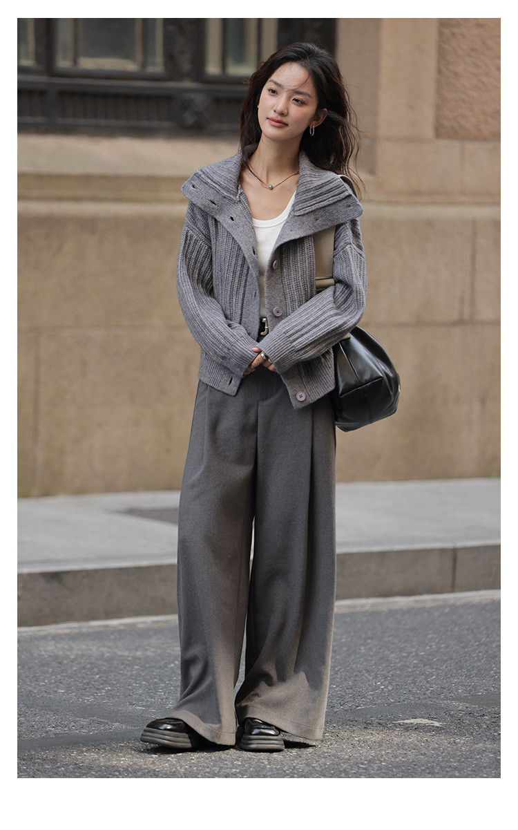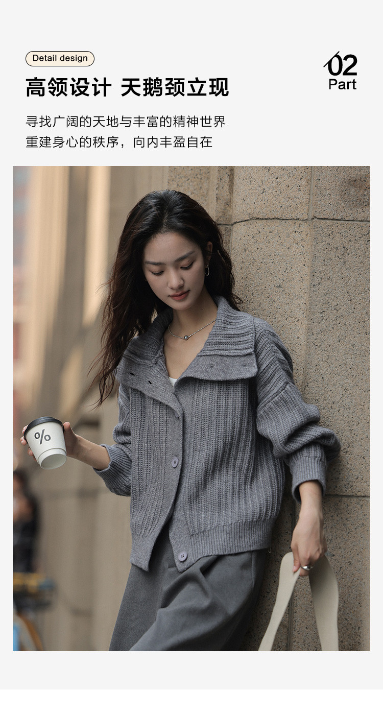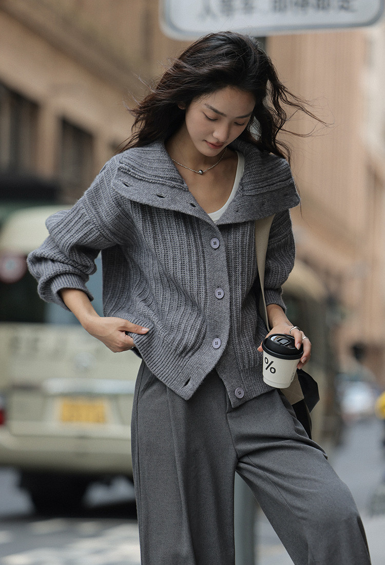 【静奢老钱风】2024冬款都市翻领保暖宽松遮肉针织开衫女