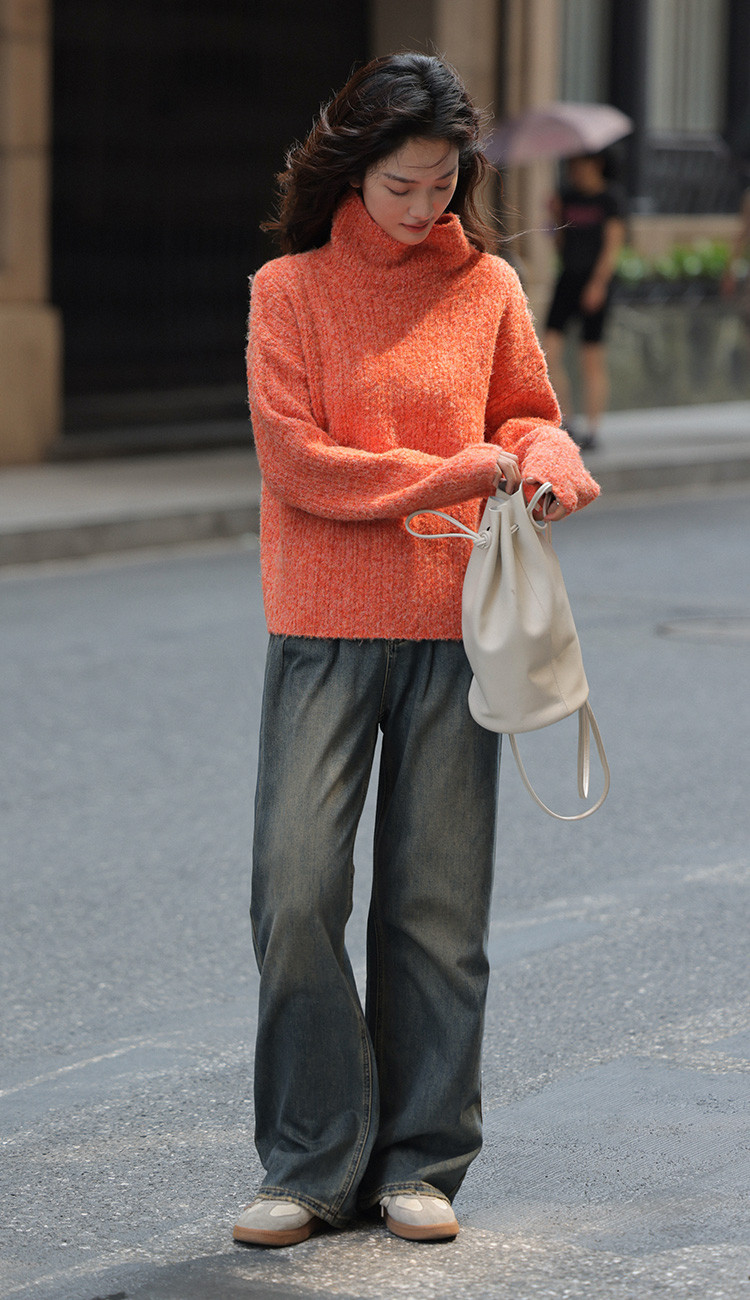 【多巴胺针织衫】2024冬款活力松弛软糯感高领宽松藏肉毛衣女