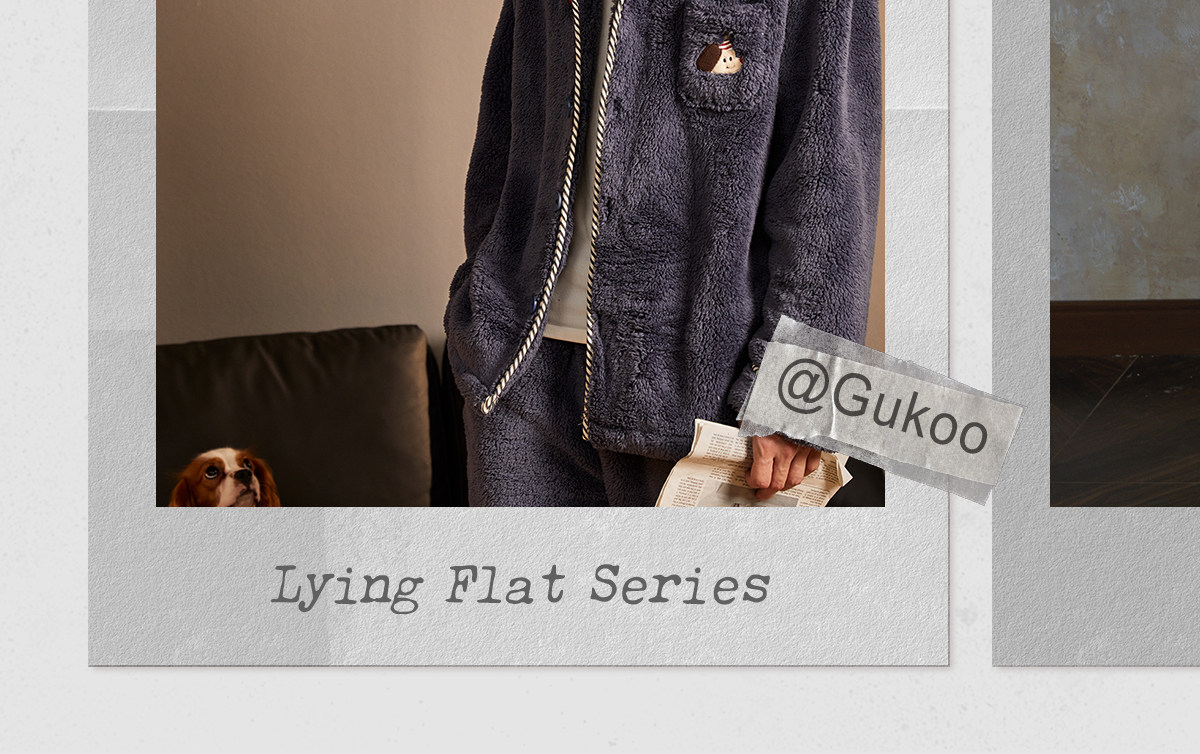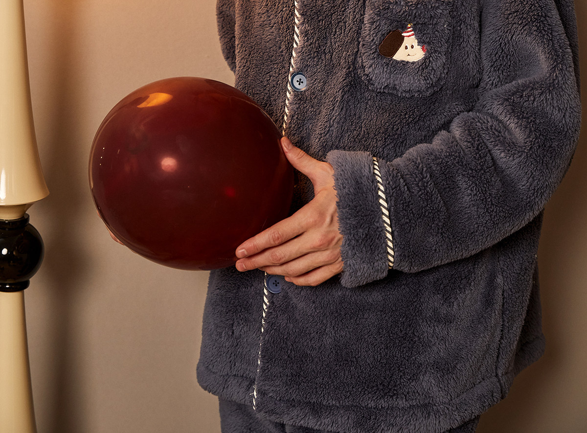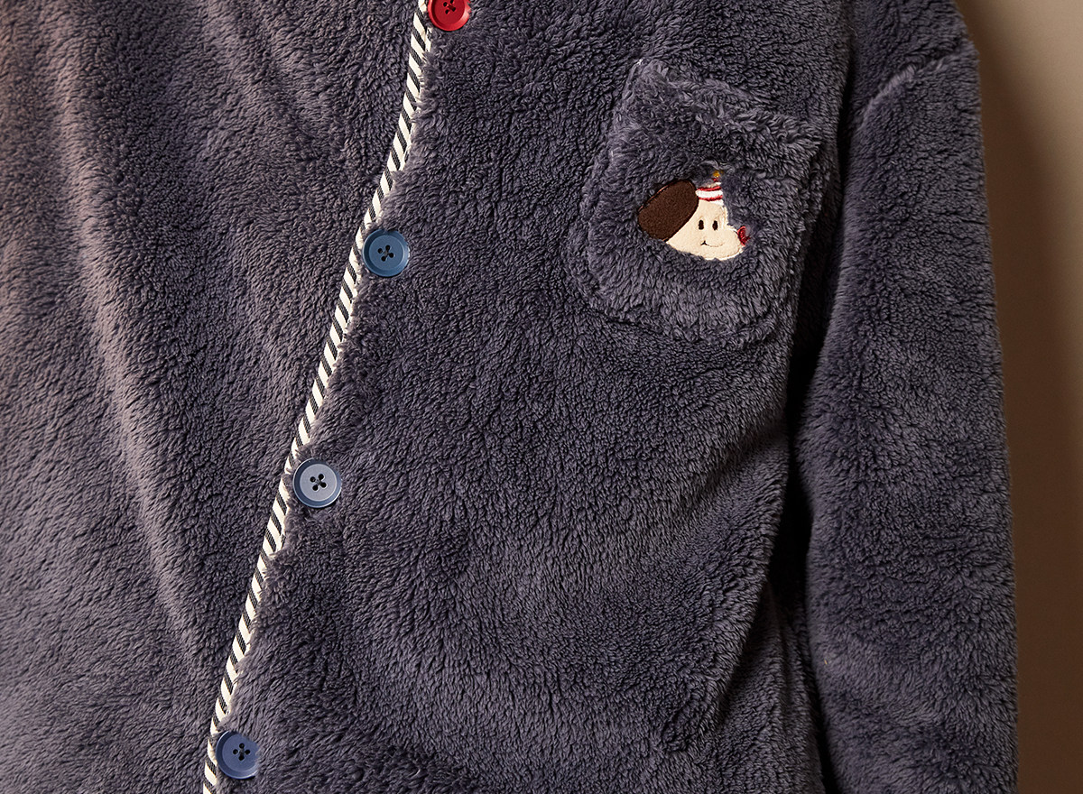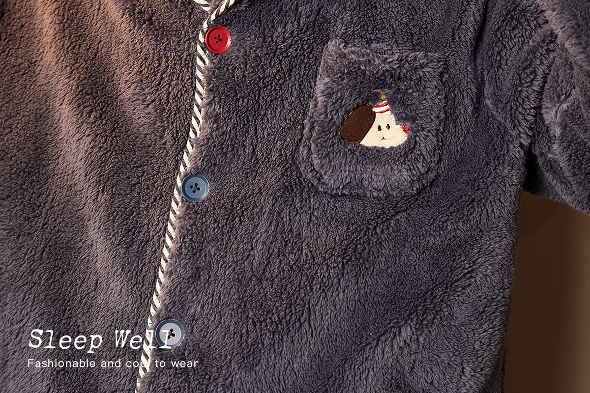 Gukoo/果壳睡衣男冬季派对小狗新款毛绒保暖简约男士家居服套装D