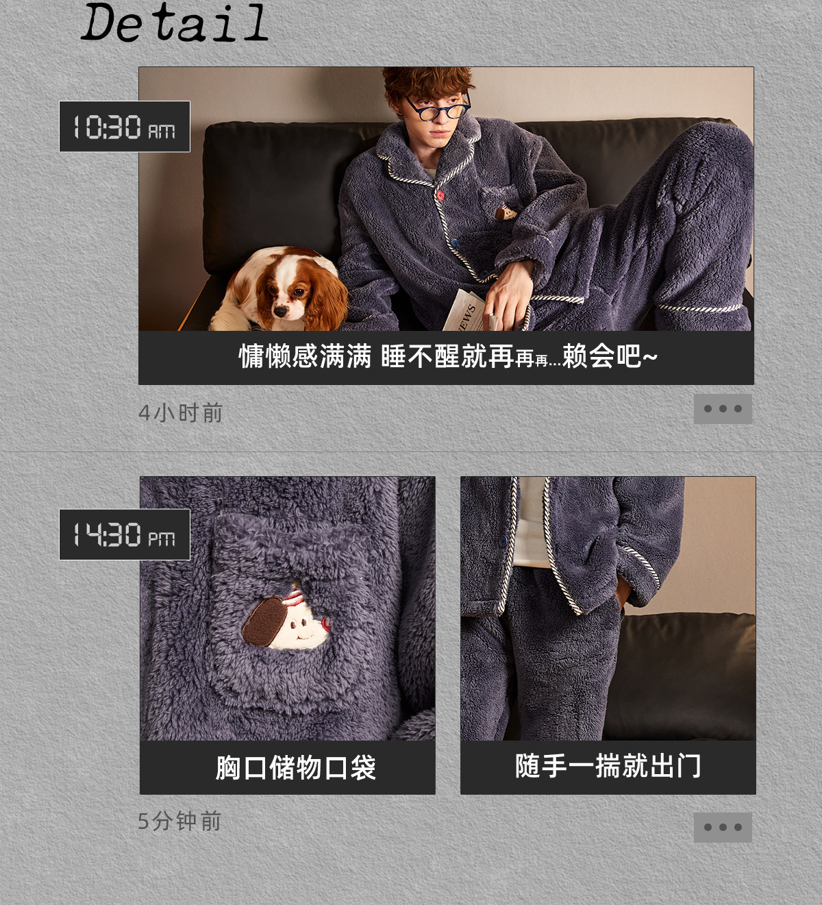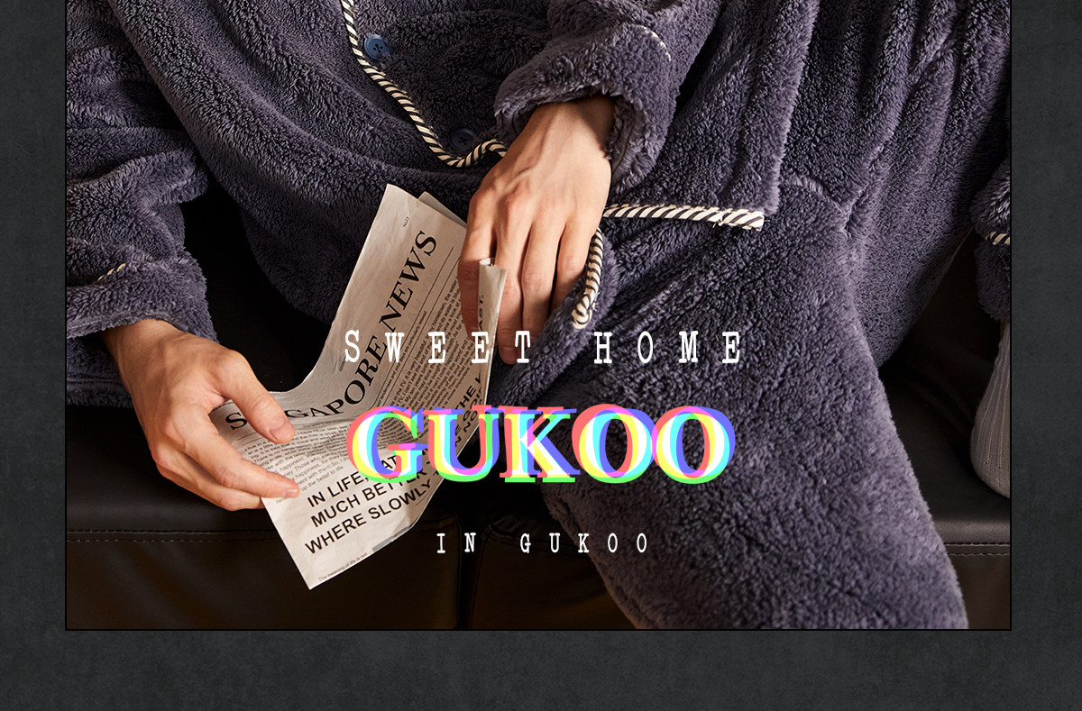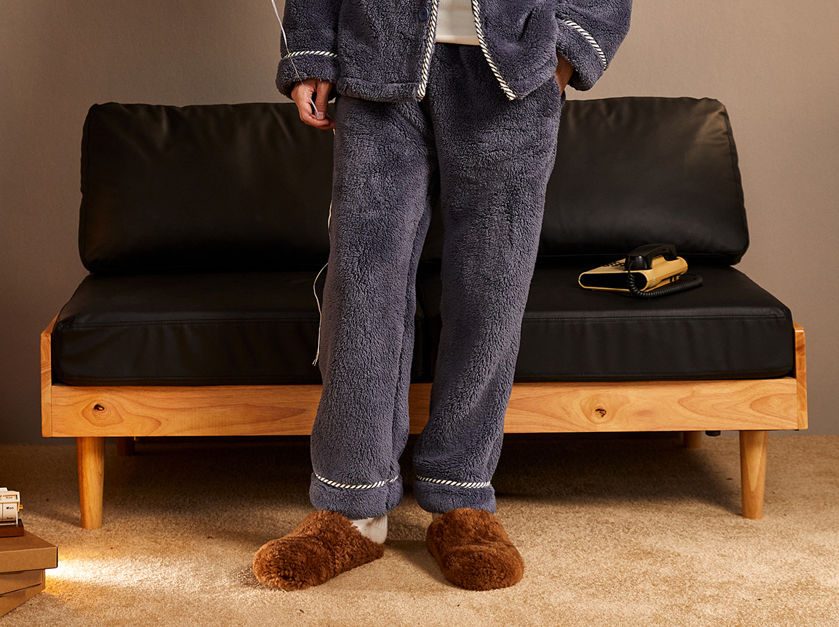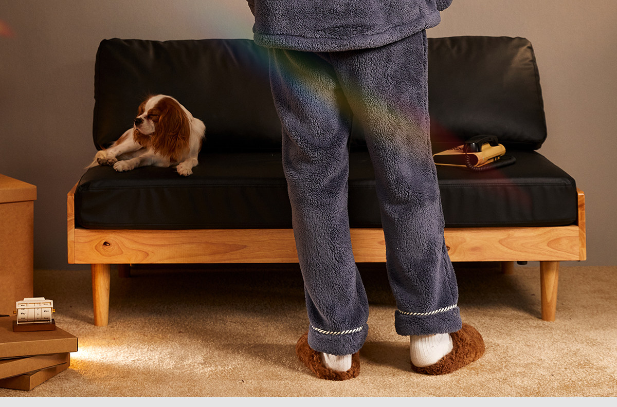 Gukoo/果壳睡衣男冬季派对小狗新款毛绒保暖简约男士家居服套装D
