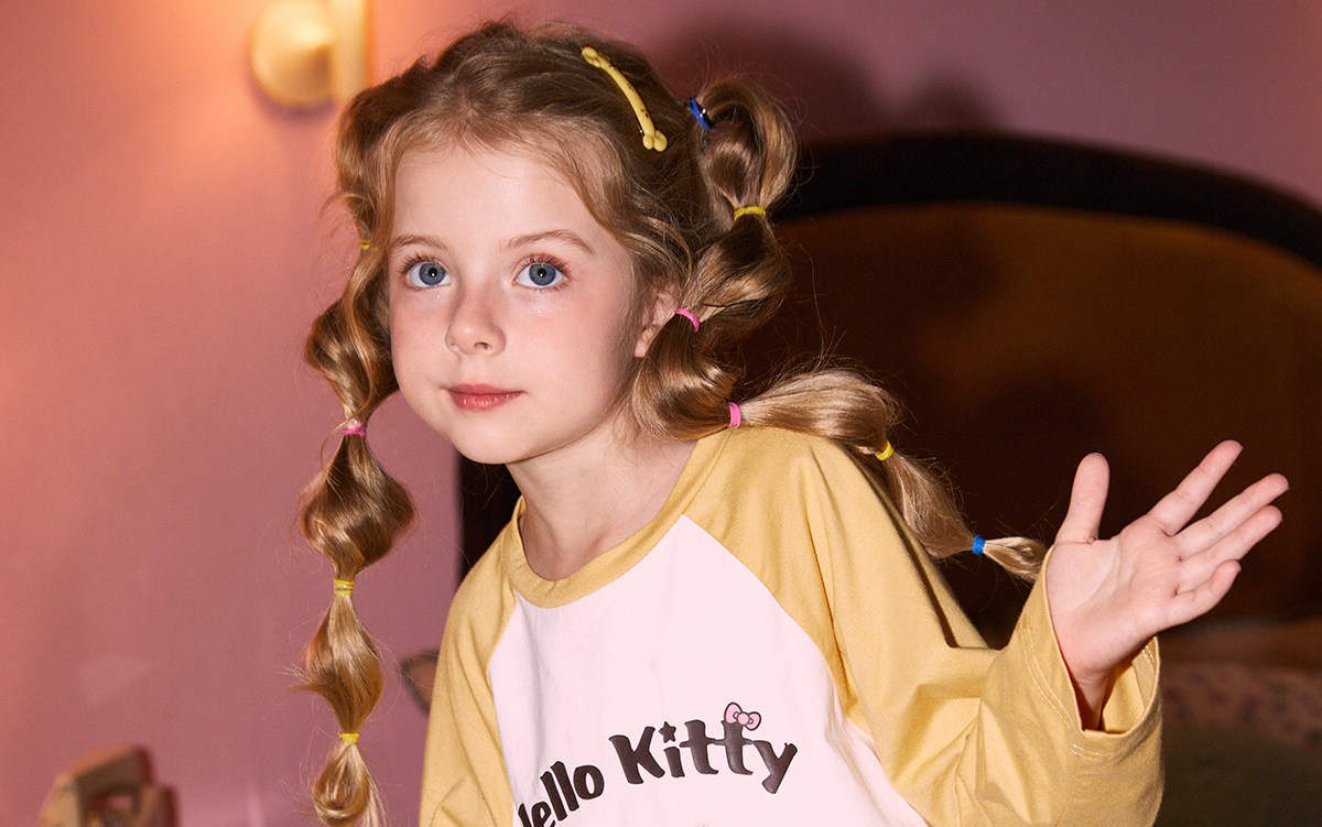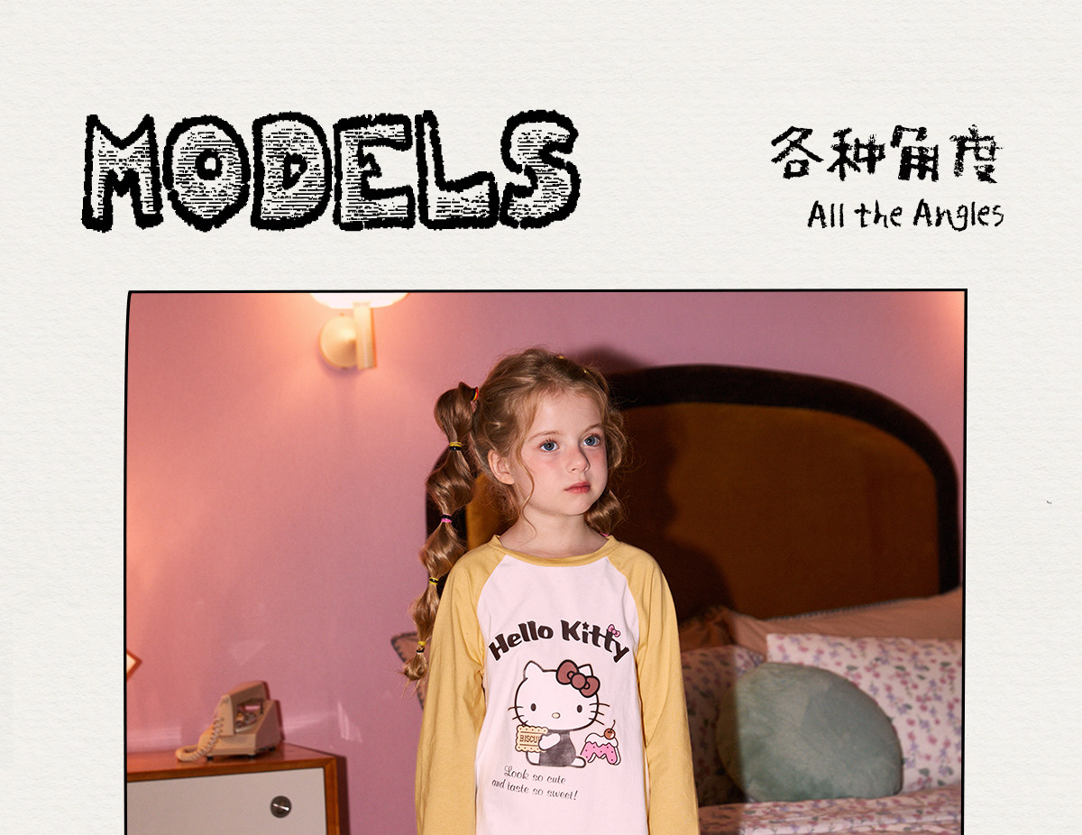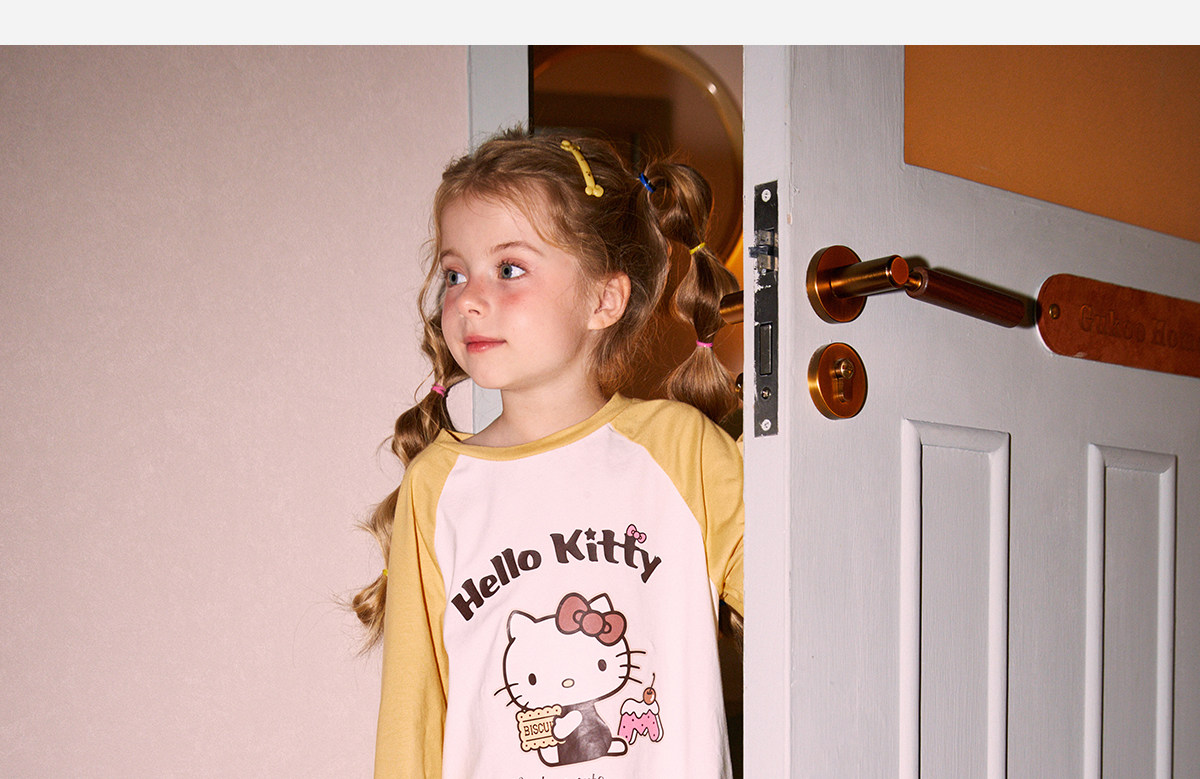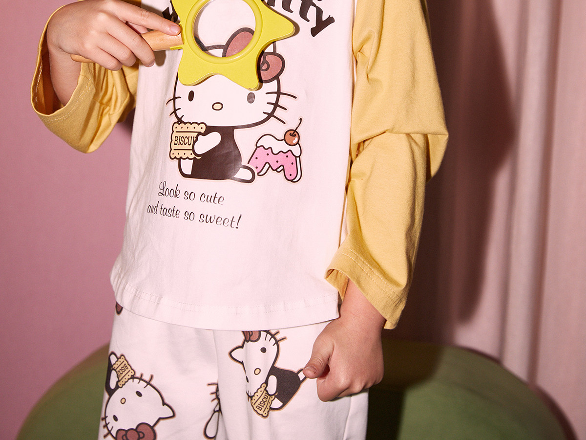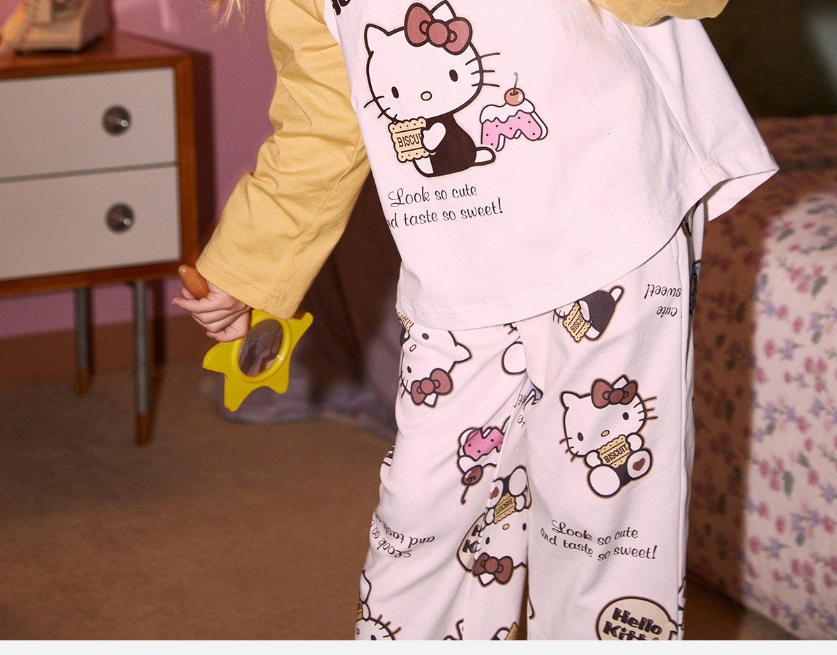 Gukoo/果壳睡衣春秋款HelloKitty联名亲子装新款纯棉家居服套装C