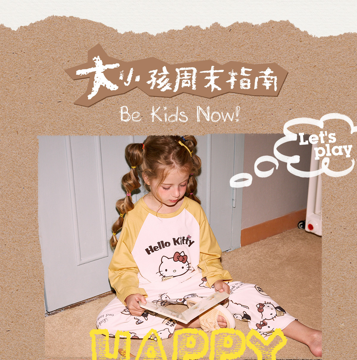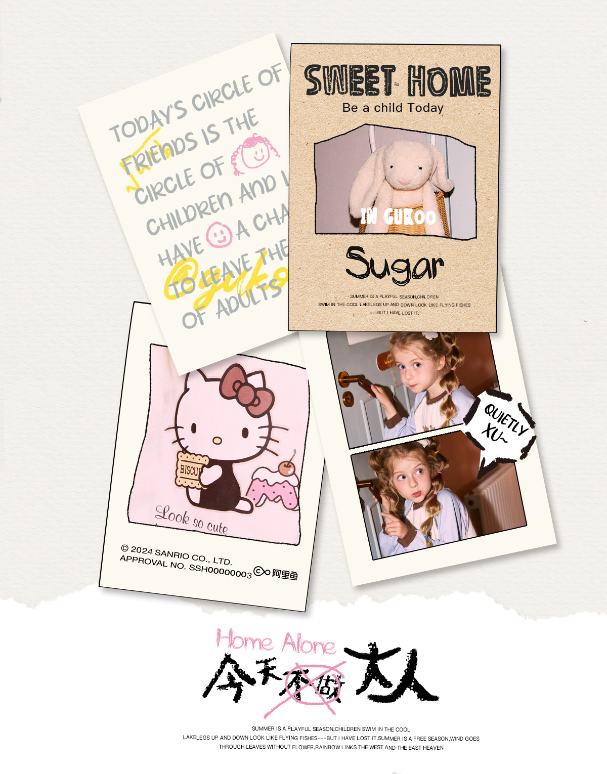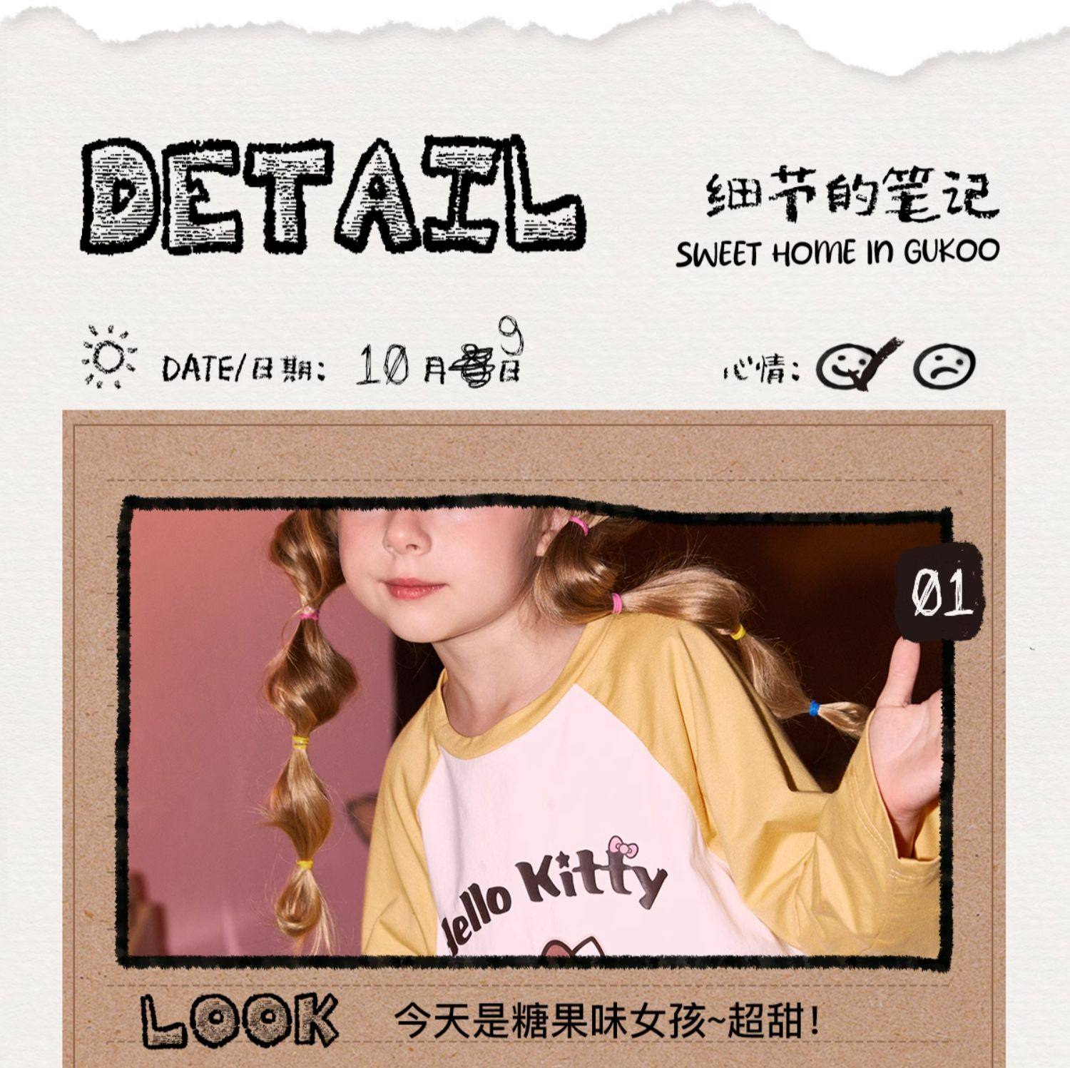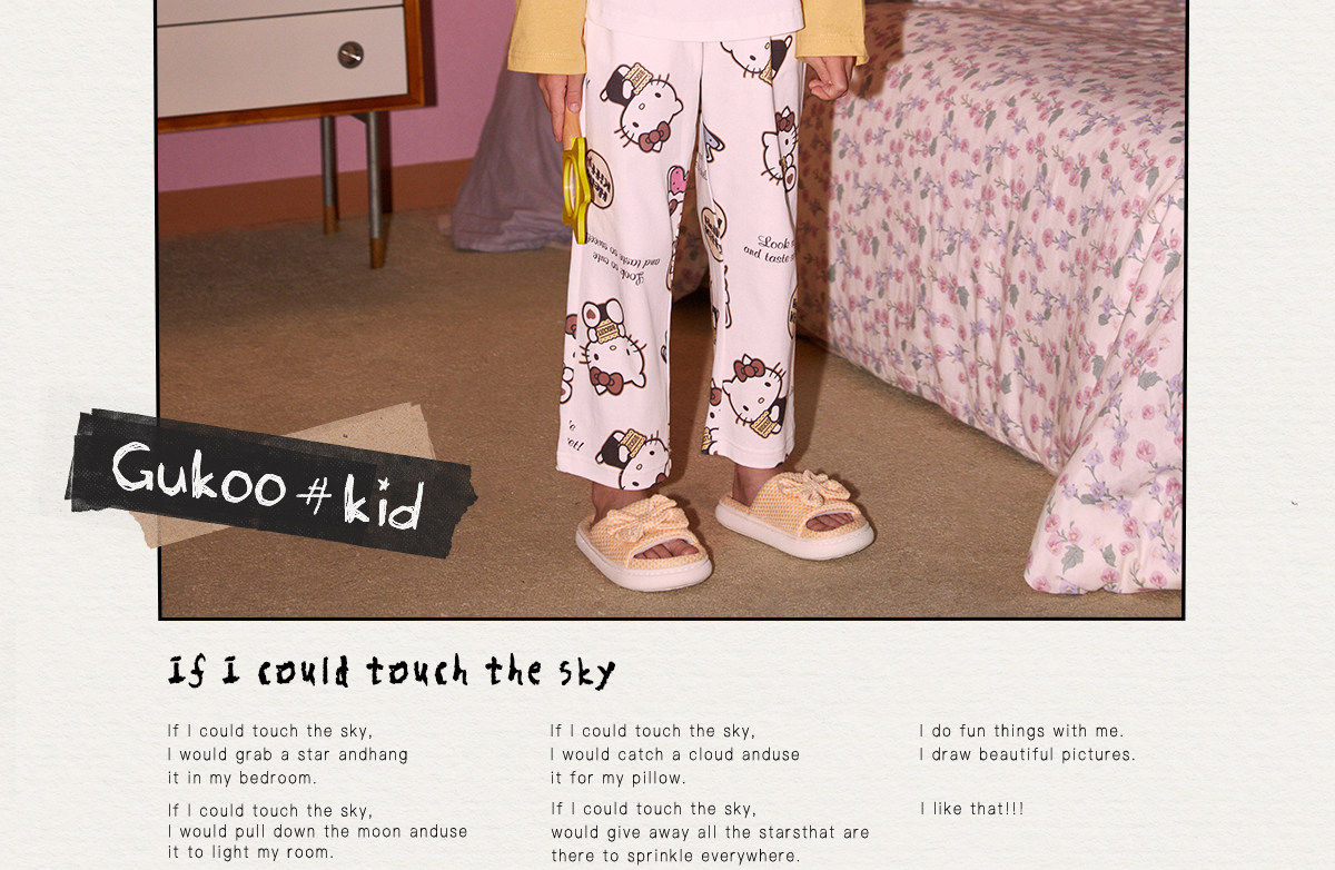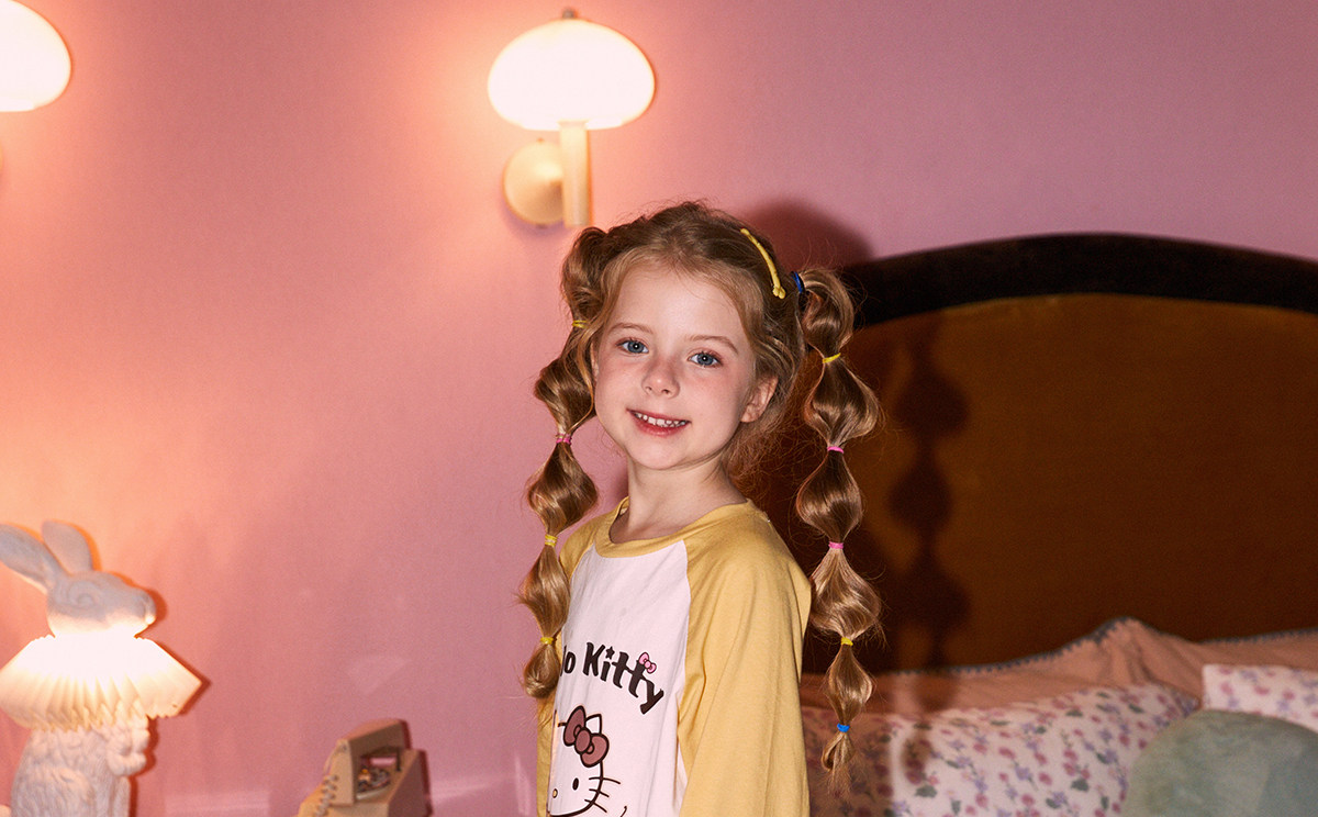 Gukoo/果壳睡衣春秋款HelloKitty联名亲子装新款纯棉家居服套装C