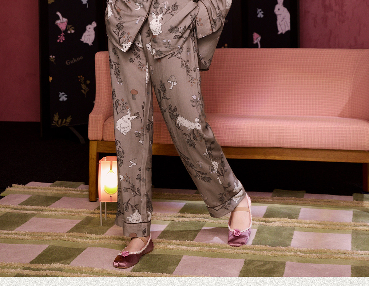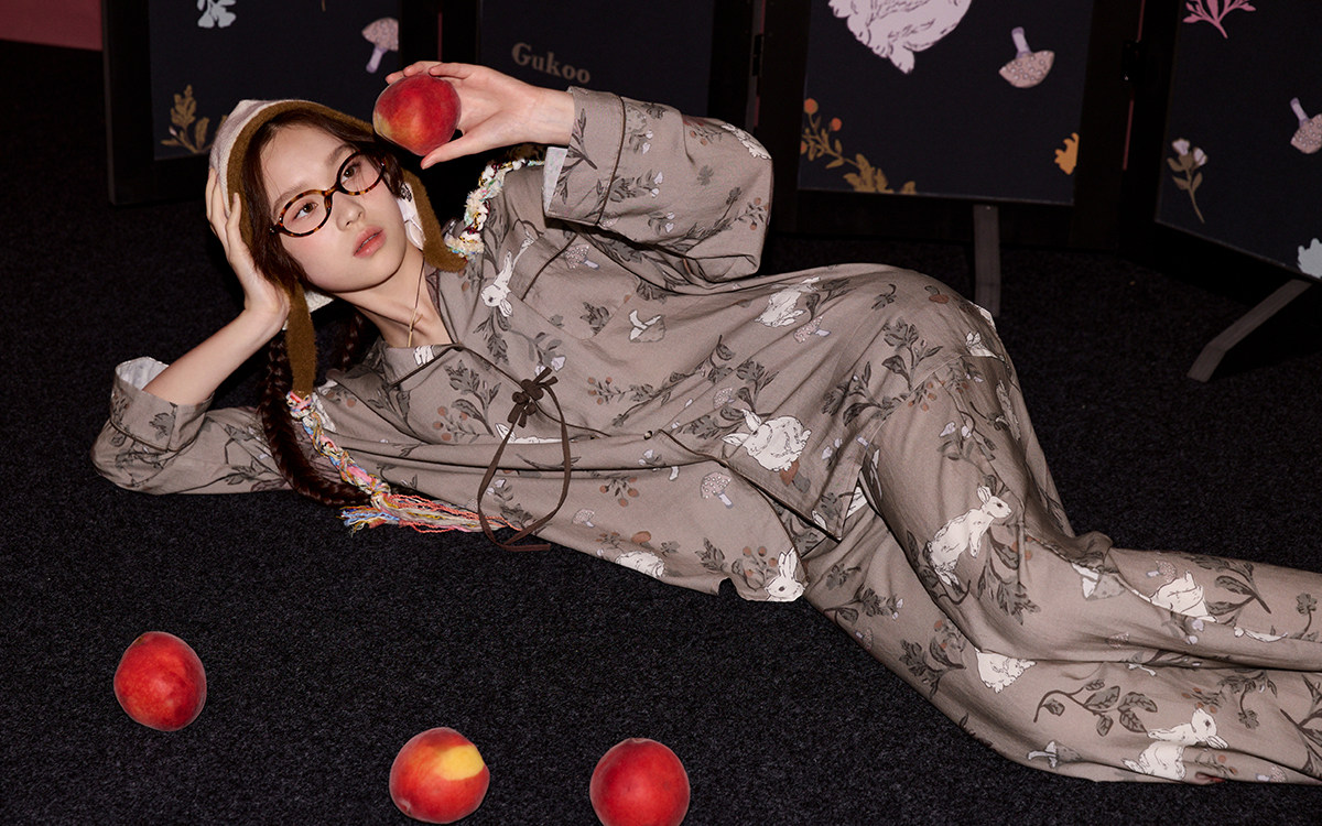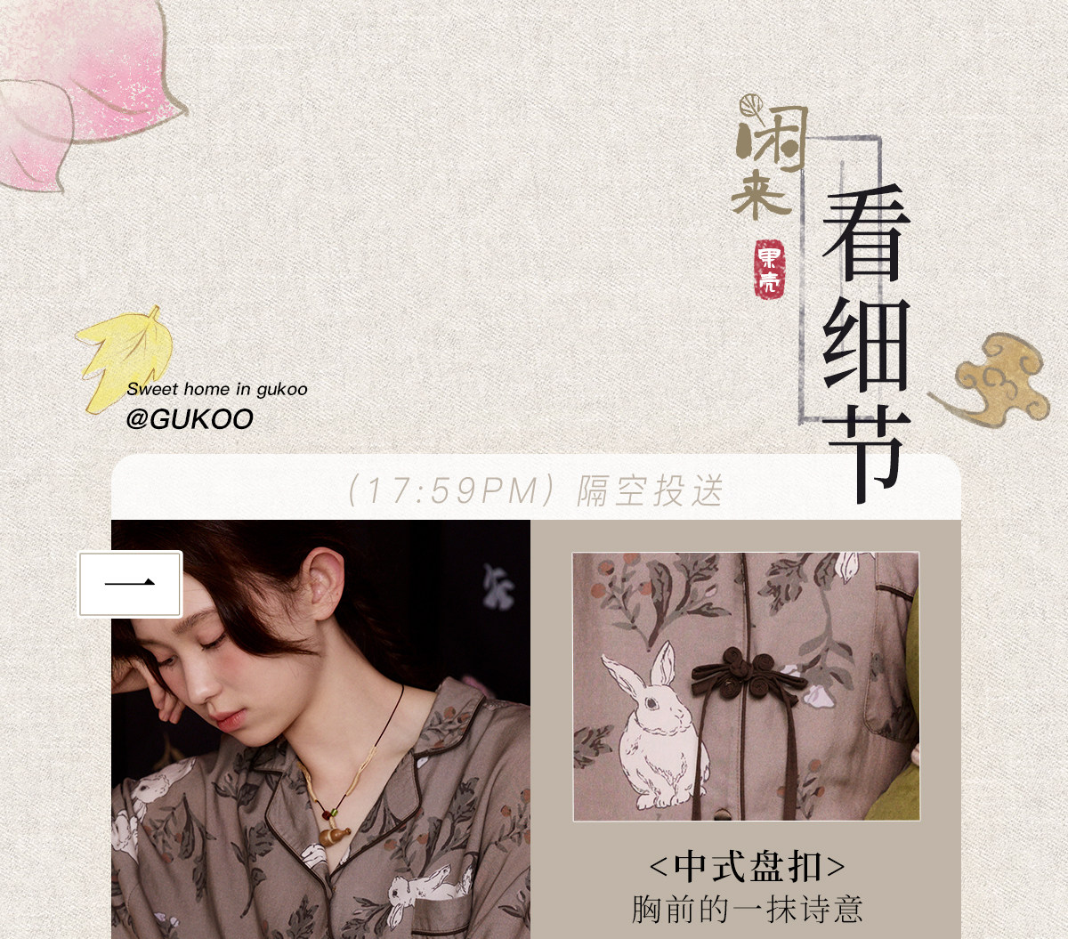Gukoo/果壳睡衣女春秋款兔子满印新款新中式宽松女士家居服套装C