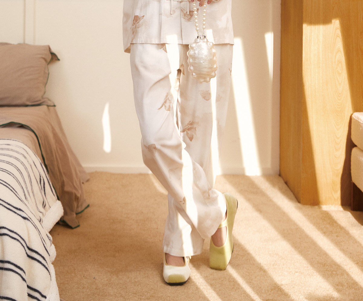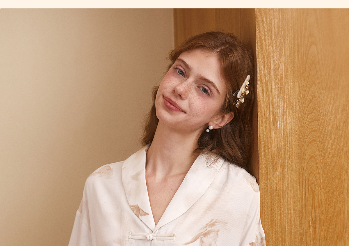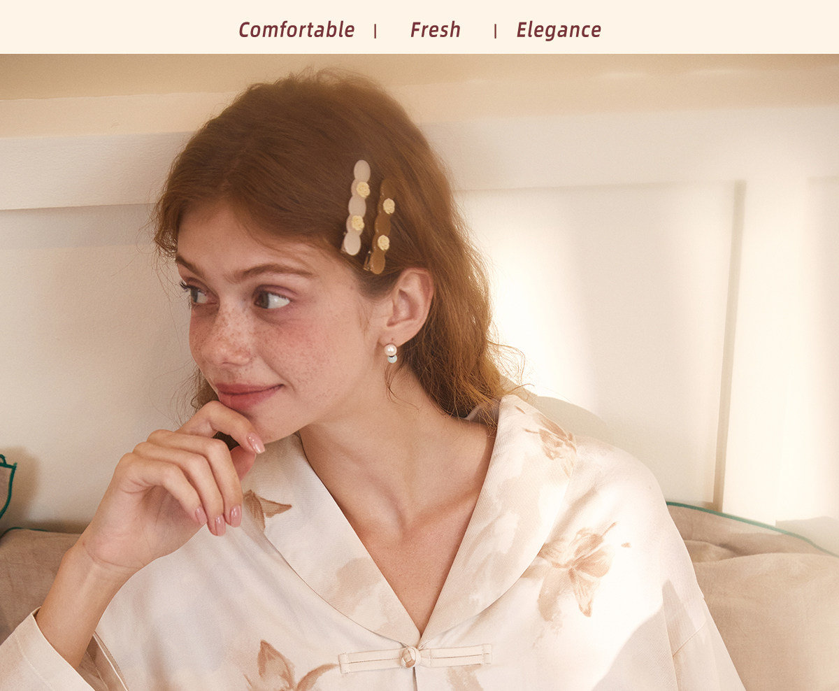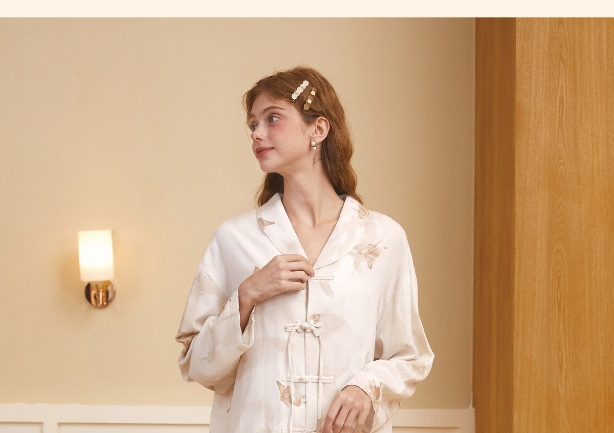 Gukoo/果壳睡衣女春秋款蝴蝶新款简约新中式天丝女士家居服套装C