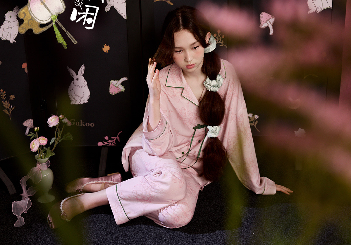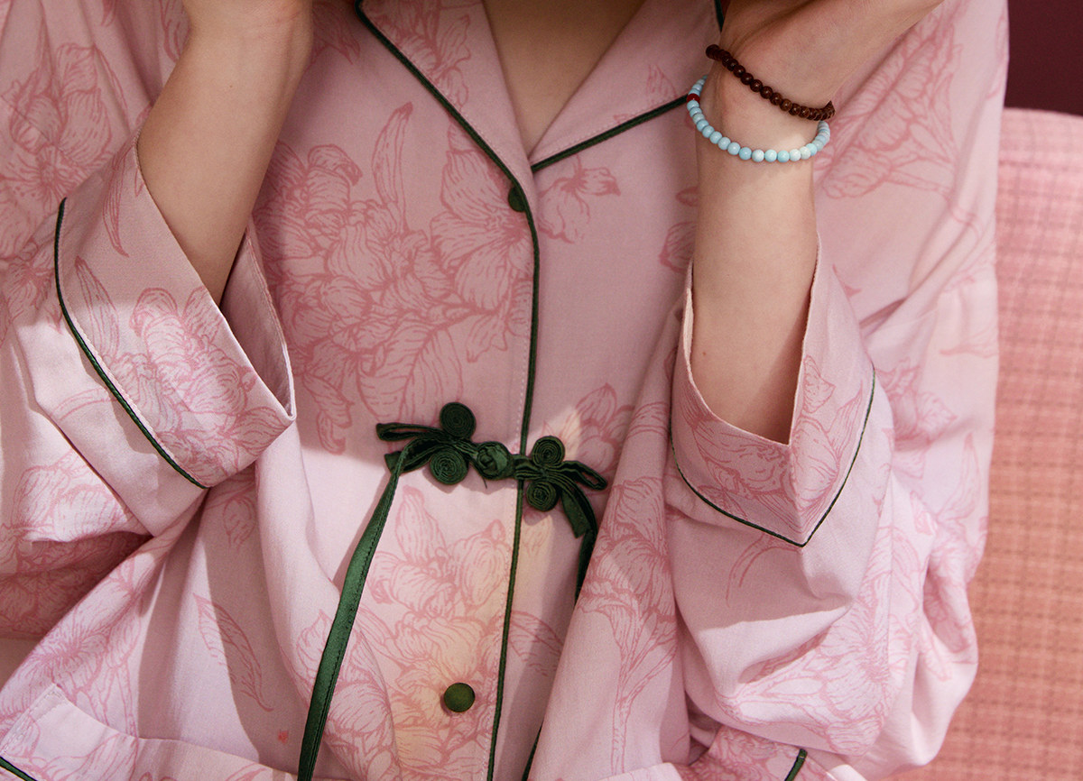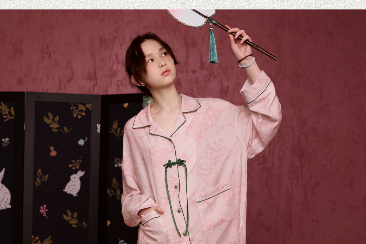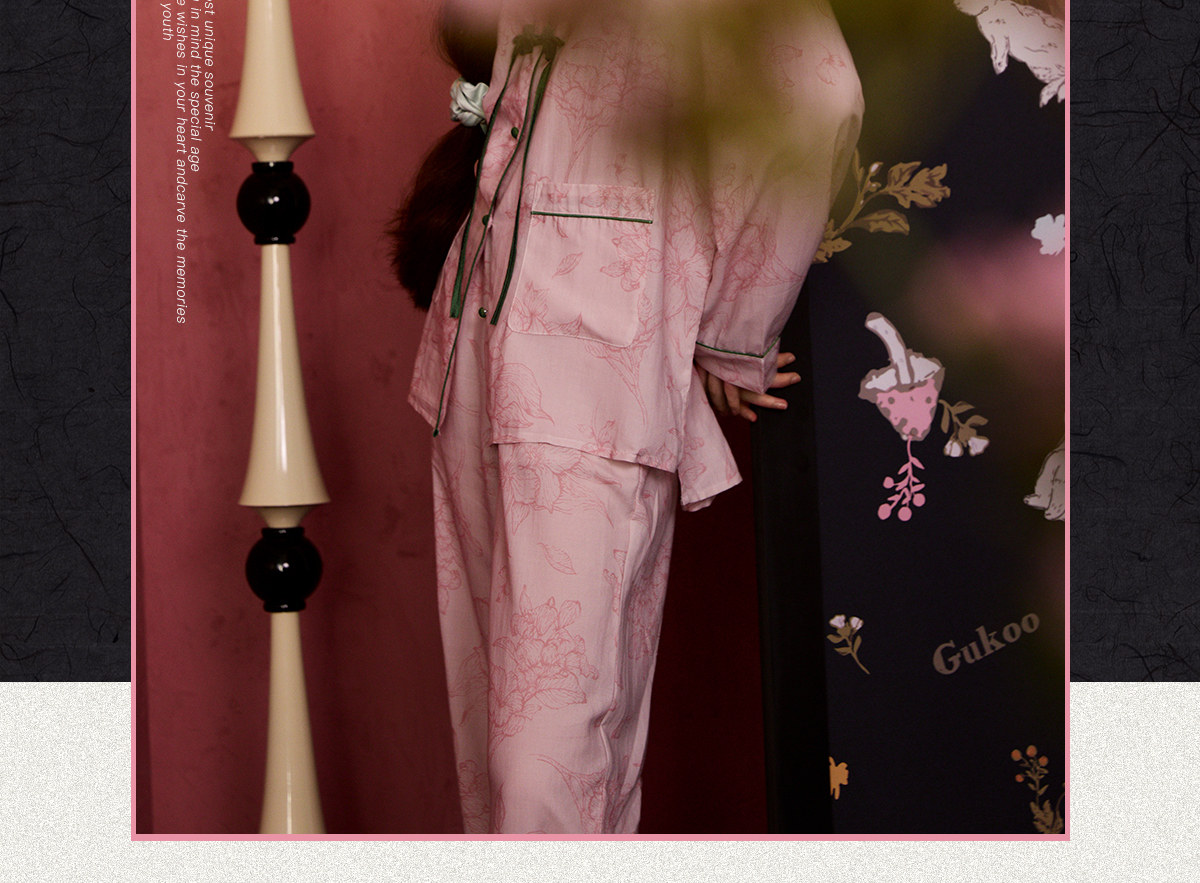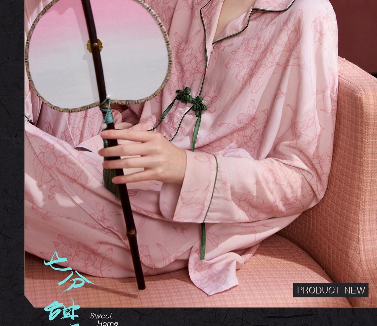 Gukoo/果壳睡衣女春秋款新中式花纹满印新款女士家居服套装C
