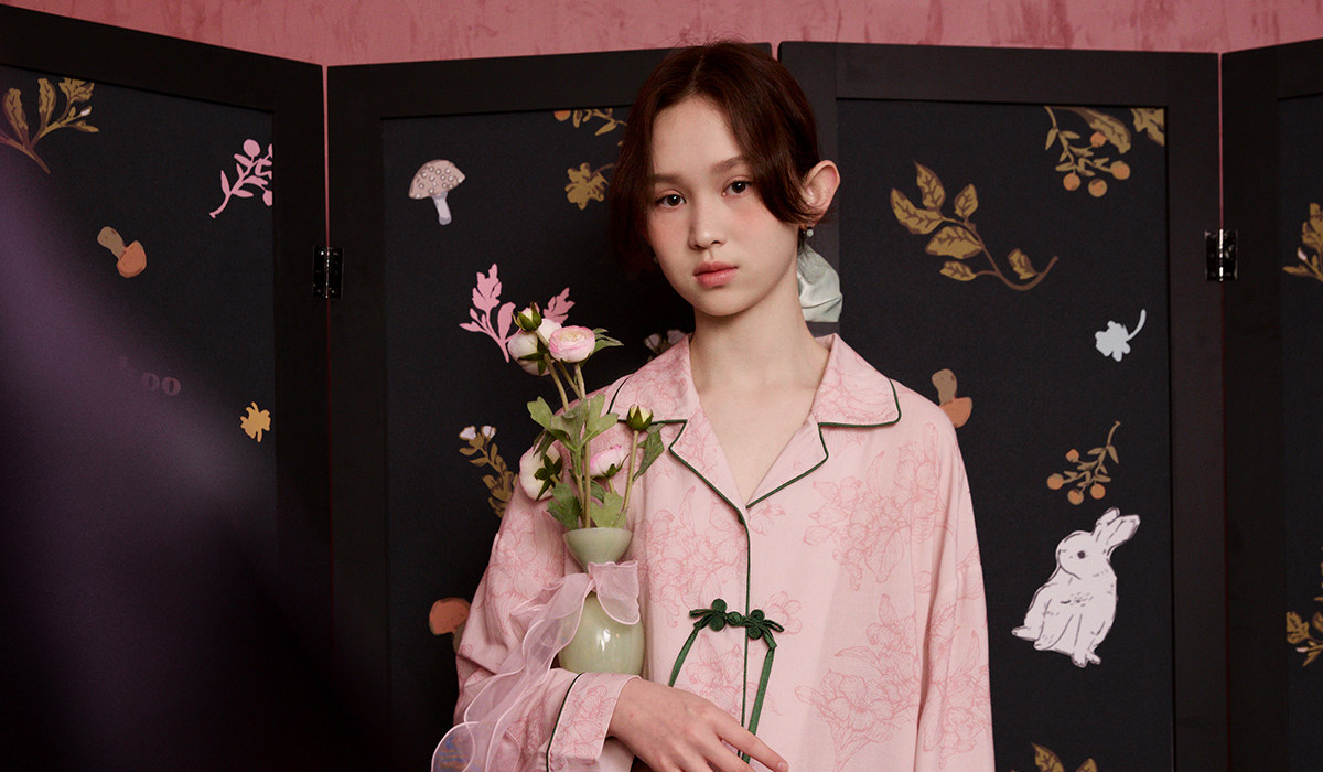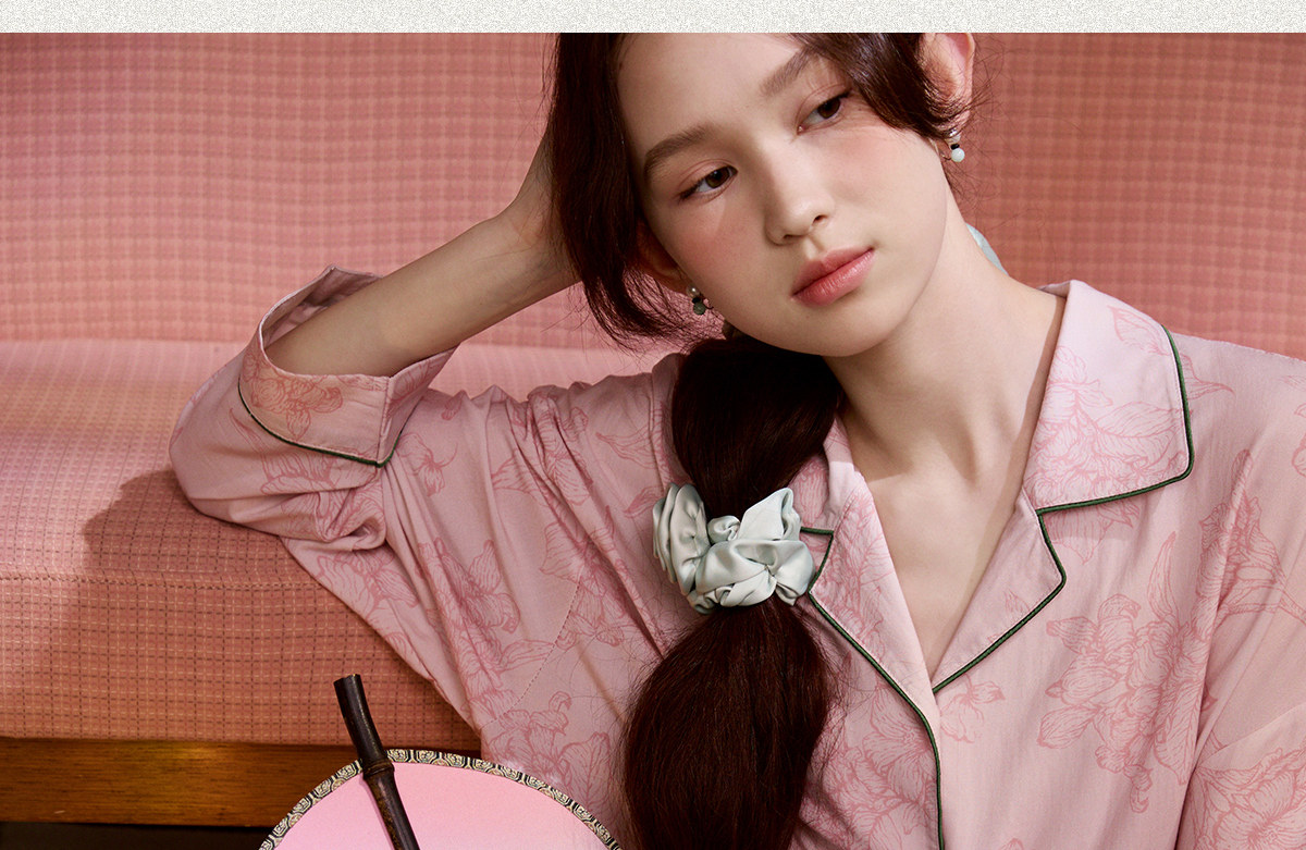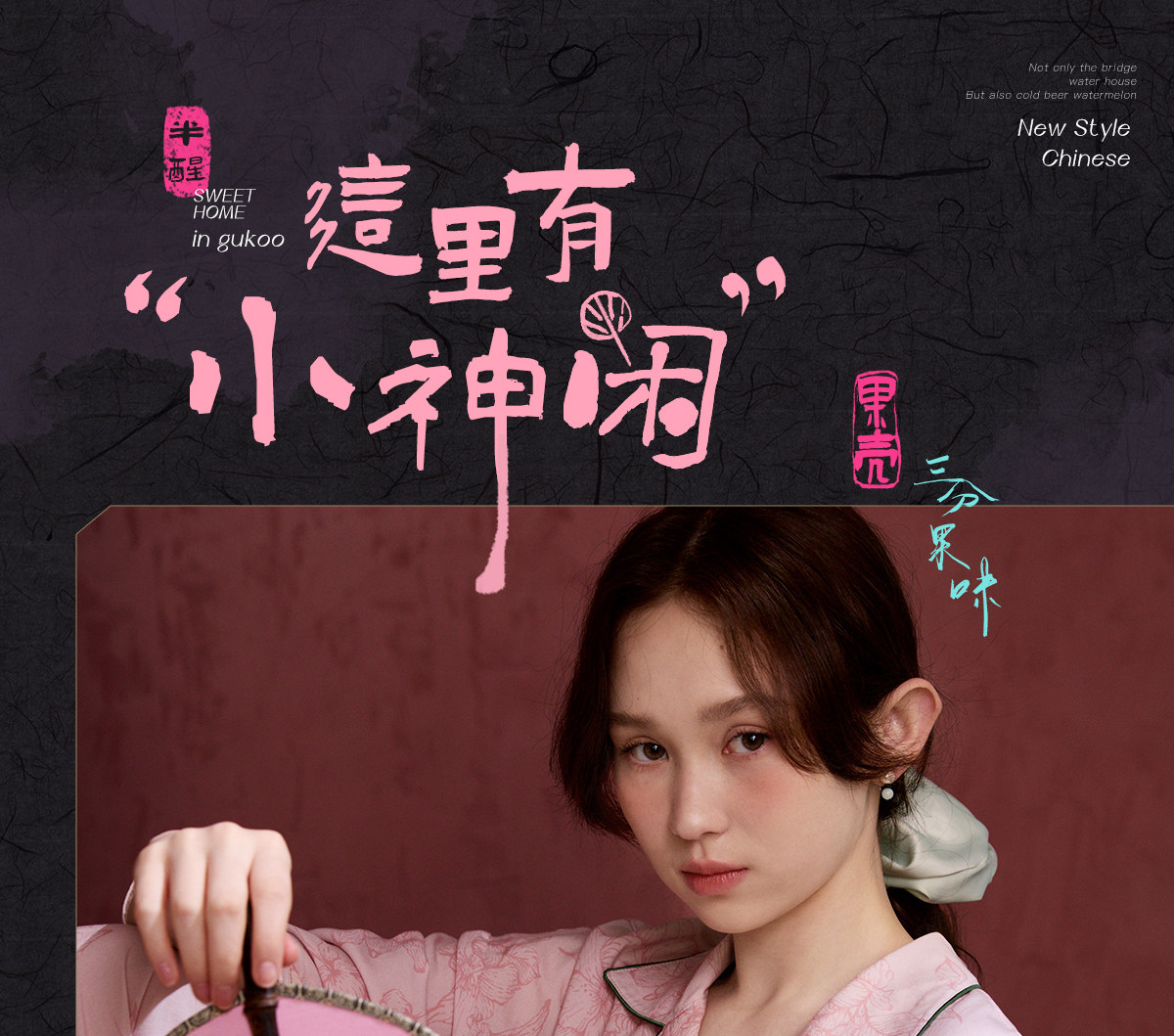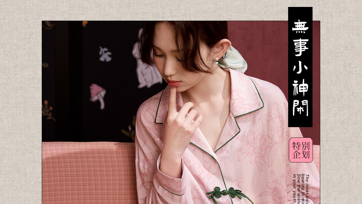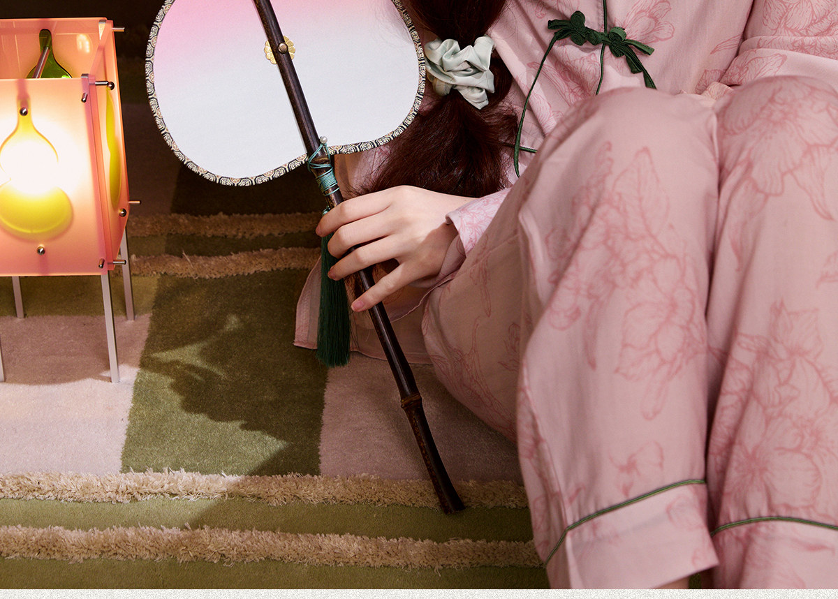 Gukoo/果壳睡衣女春秋款新中式花纹满印新款女士家居服套装C