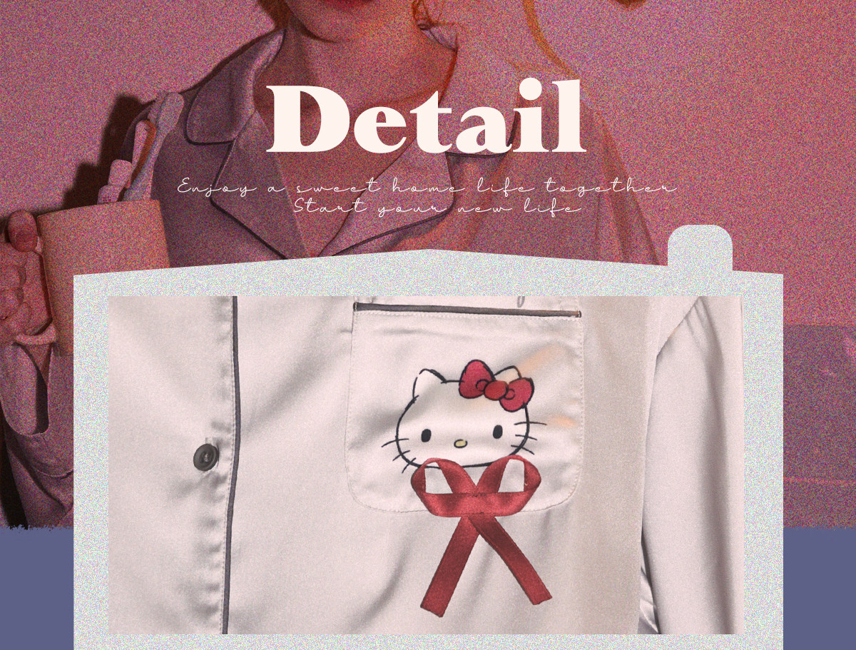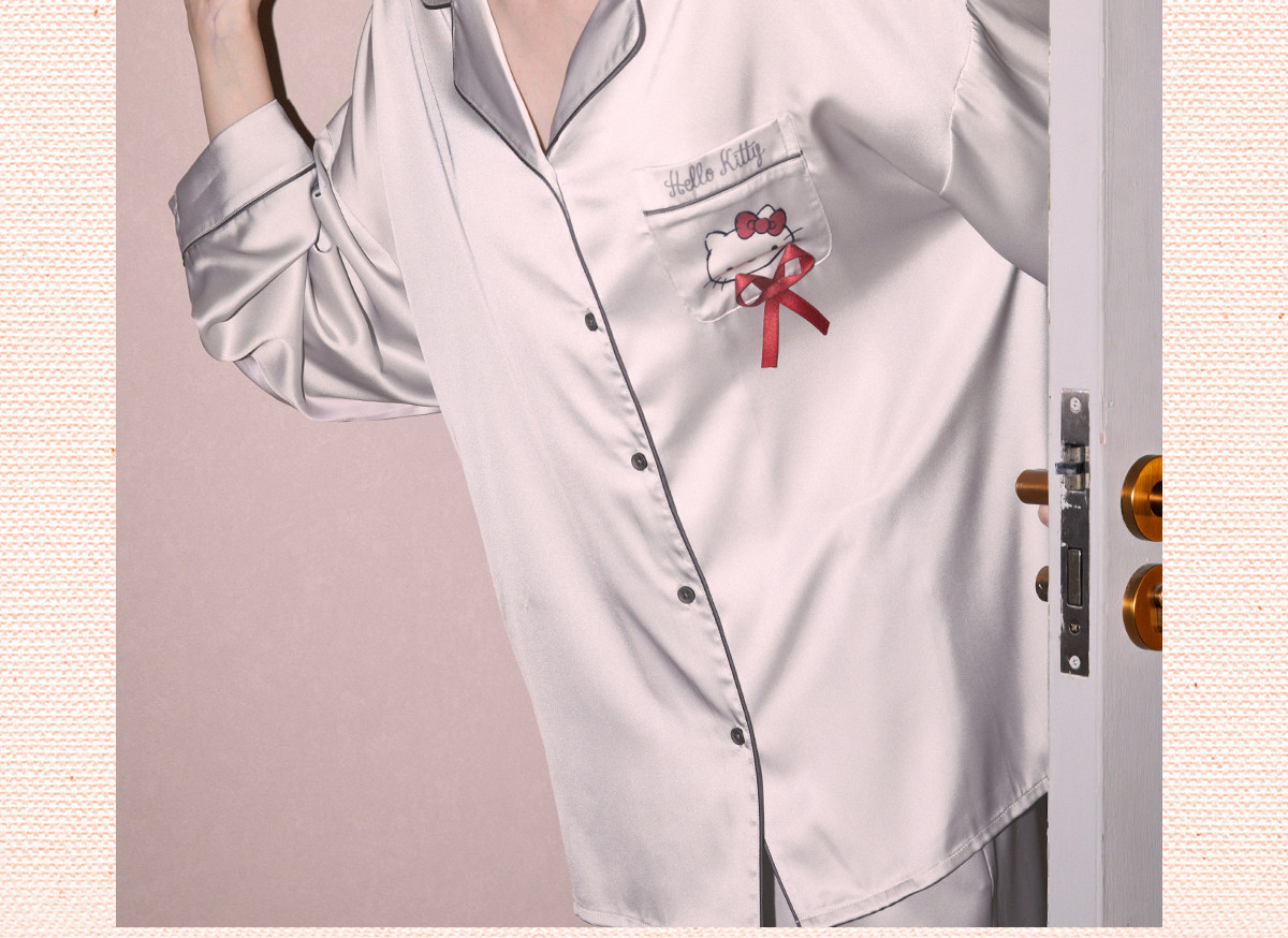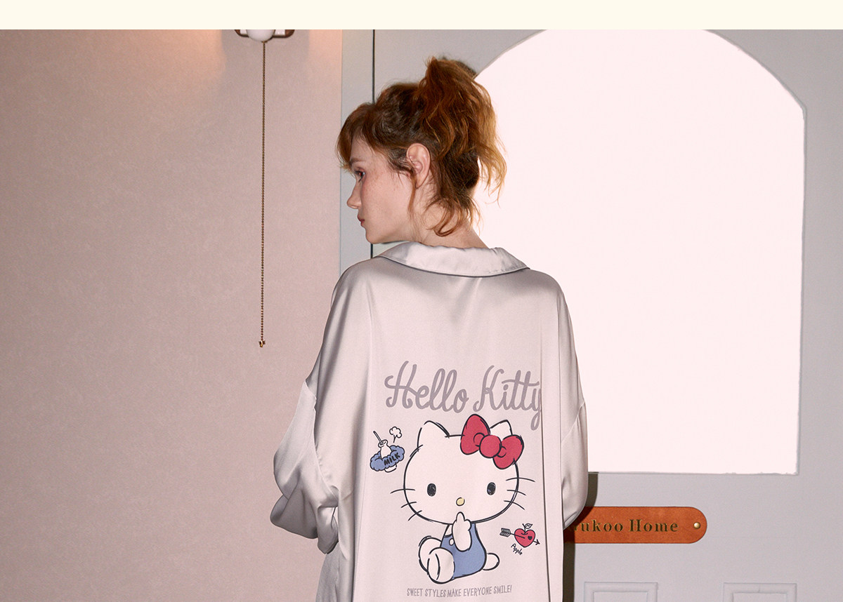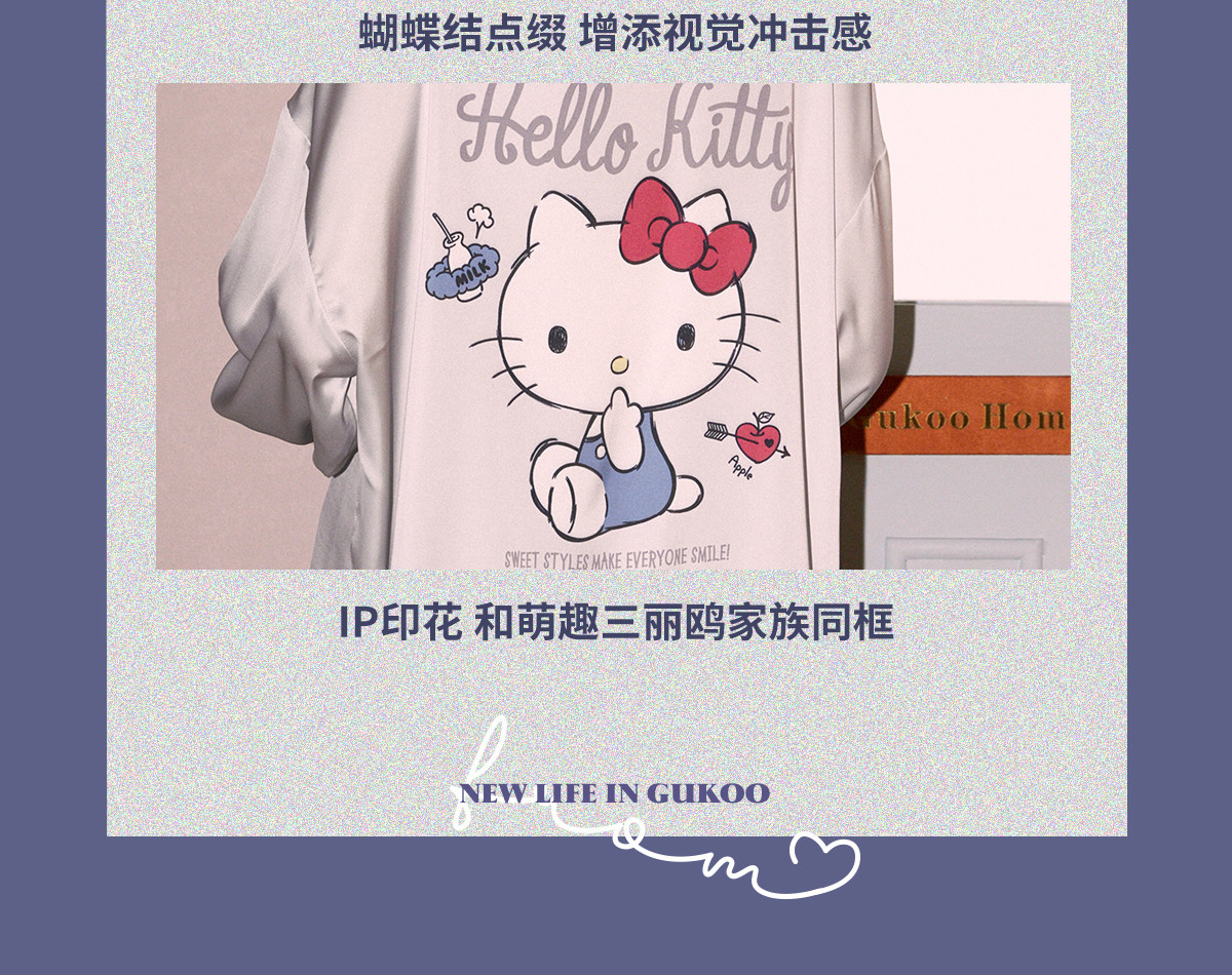 Gukoo/果壳睡衣女春秋款HelloKitty联名新款冰丝女士家居服套装C