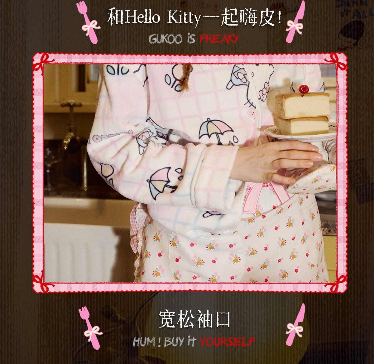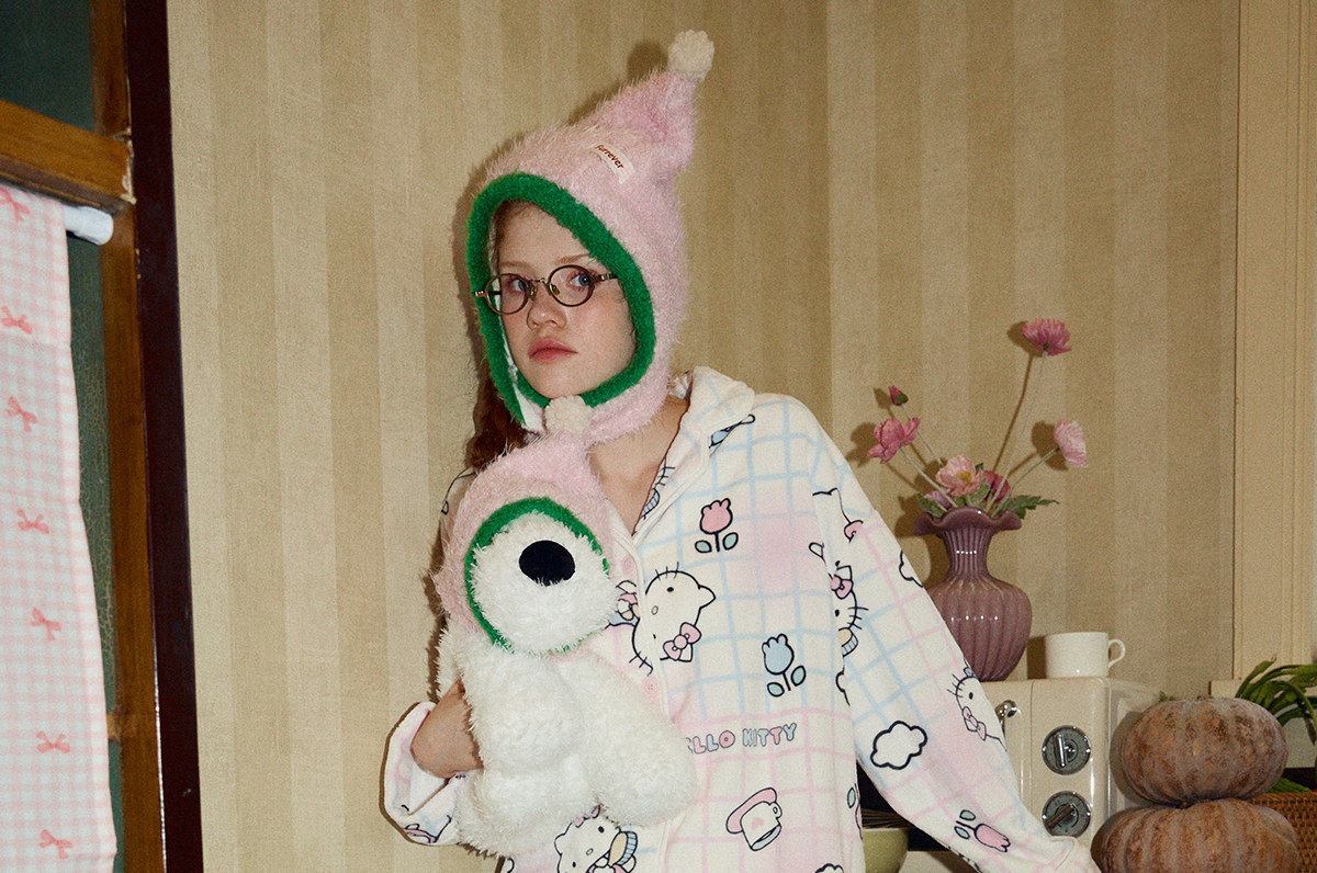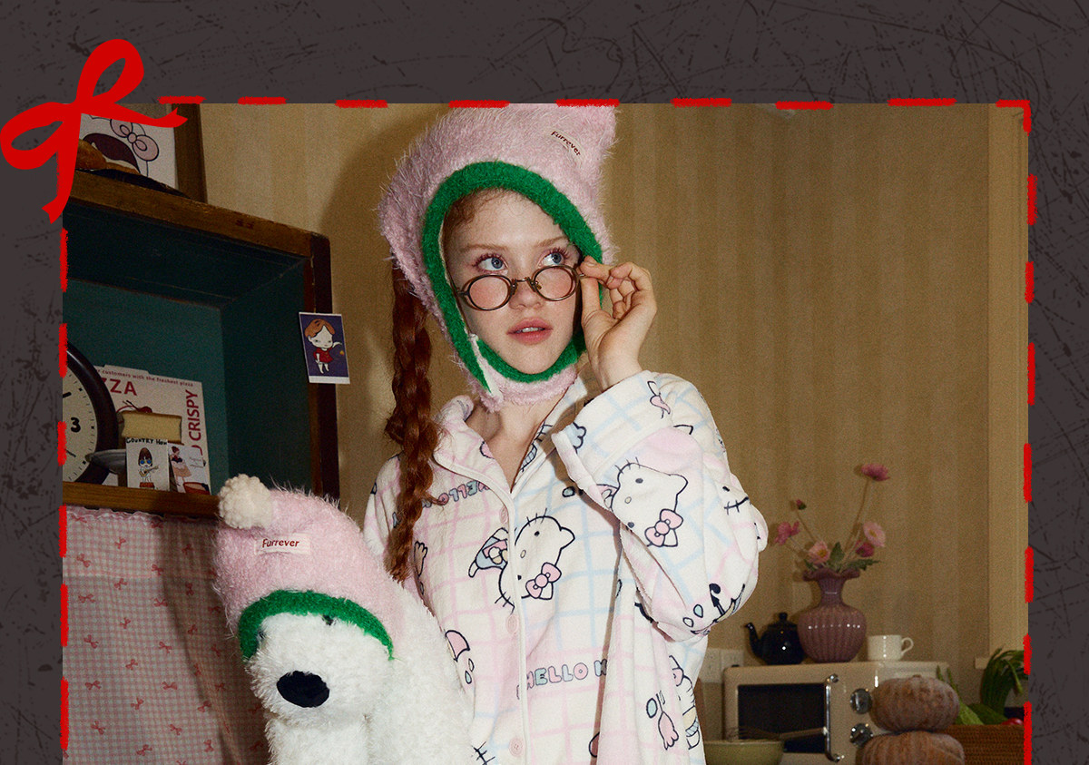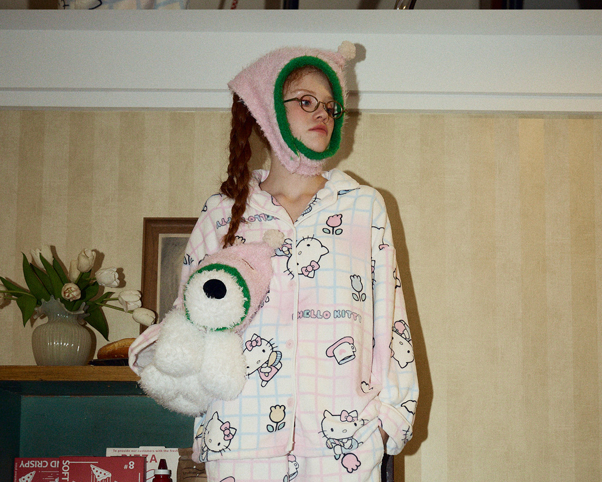 Gukoo/果壳睡衣女冬季HelloKitty联名新款可爱保暖女家居服套装D