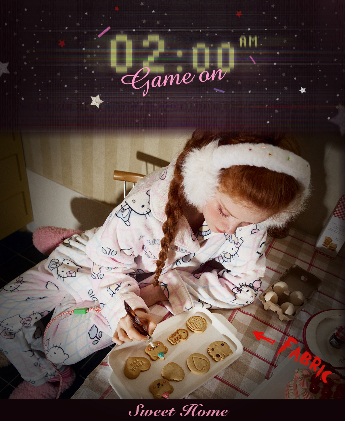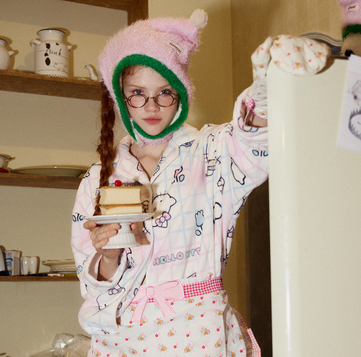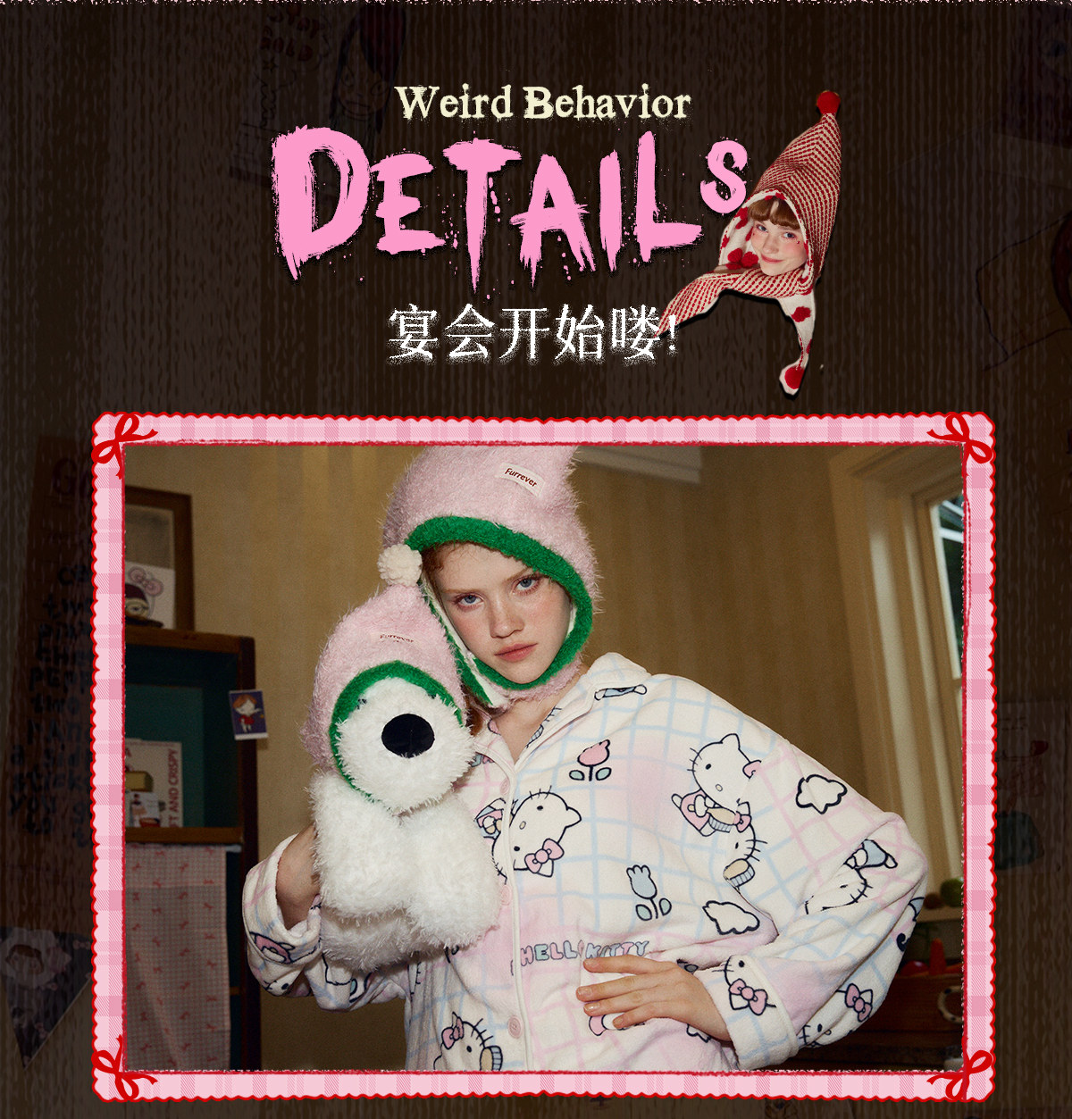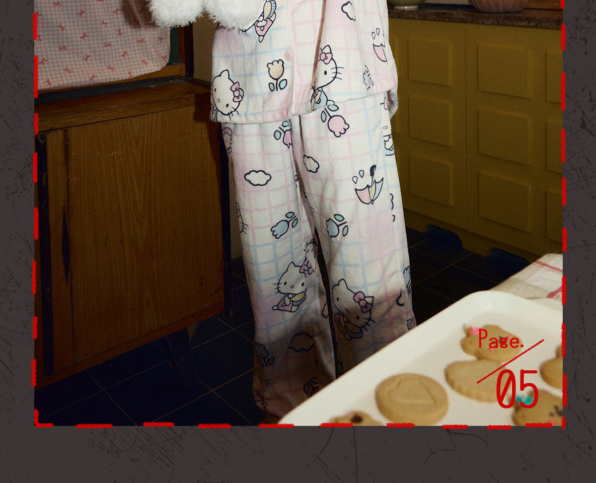 Gukoo/果壳睡衣女冬季HelloKitty联名新款可爱保暖女家居服套装D